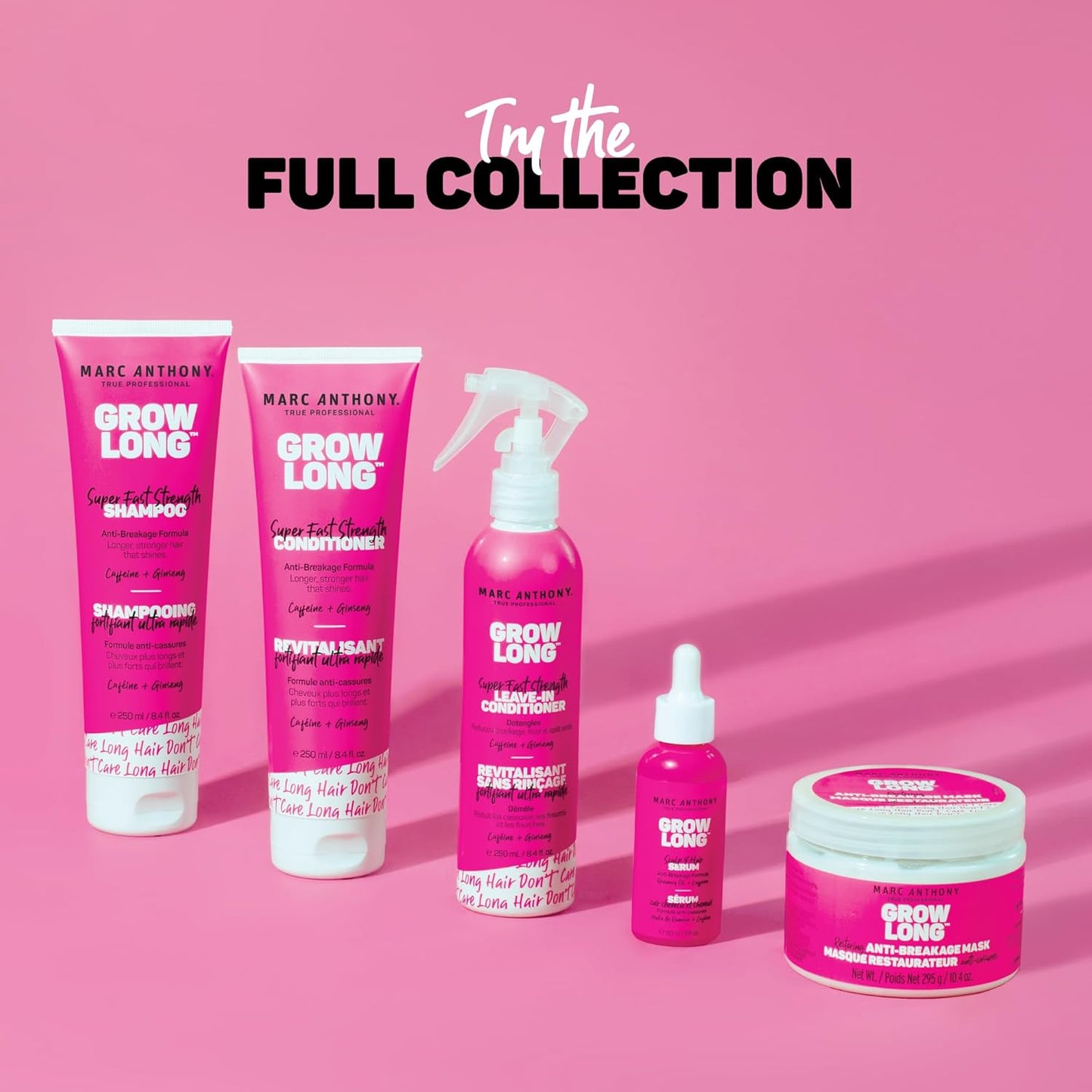 Long Hair, Don’t Care: Formulated to help you achieve those perfect lengths without limits, our Grow Long collection features moisturizing, anti-breakage formulas blended with Caffeine and Ginseng for stronger, longer, healthier looking hair.