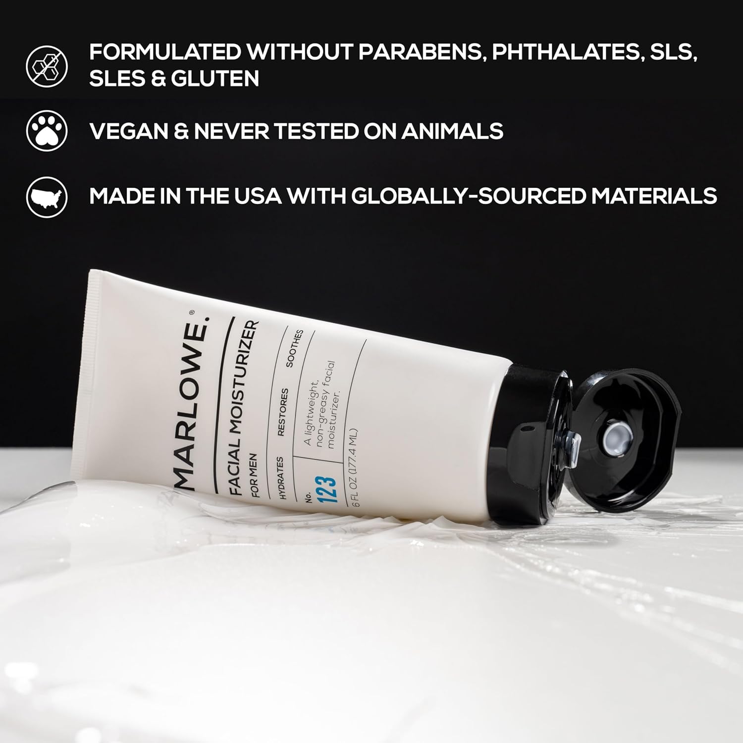 MARLOWE. No. 123 Men's Facial Moisturizer 6 oz, Lightweight Daily Face Lotion for Men, Includes Natural Extracts to Hydrate, Soothe & Restore, Light Aloe Citron Scent