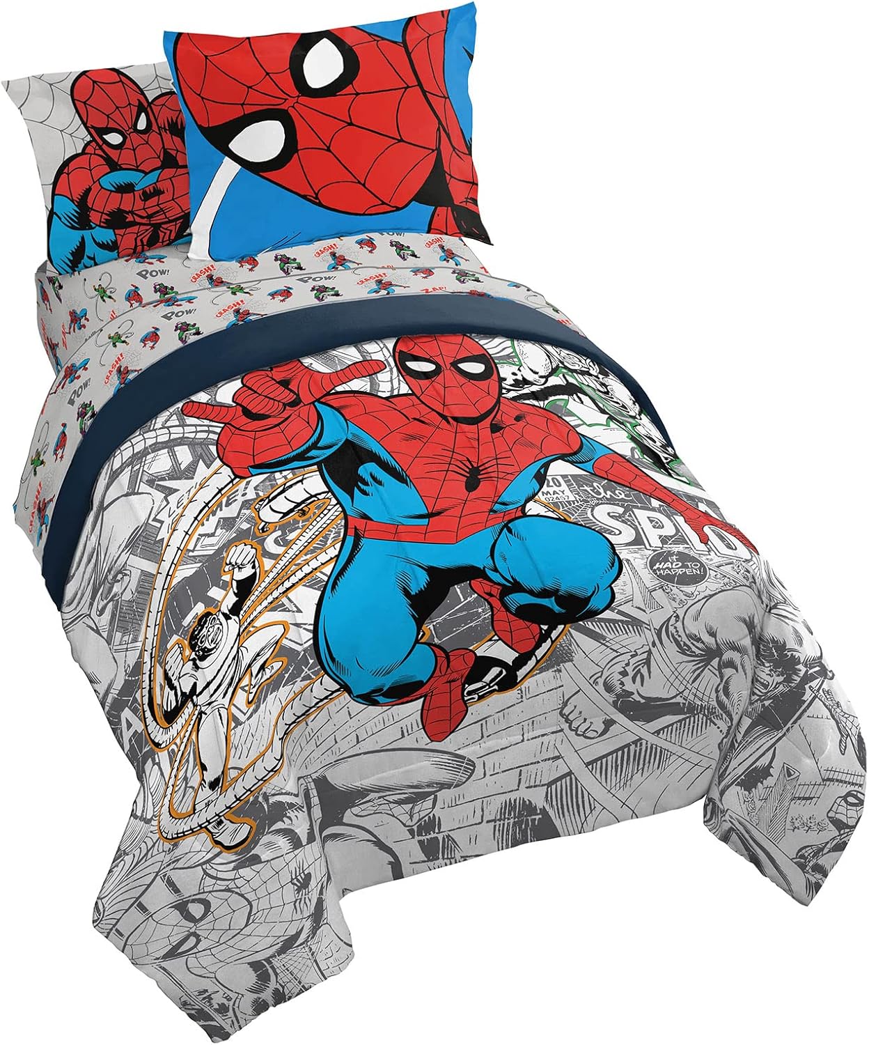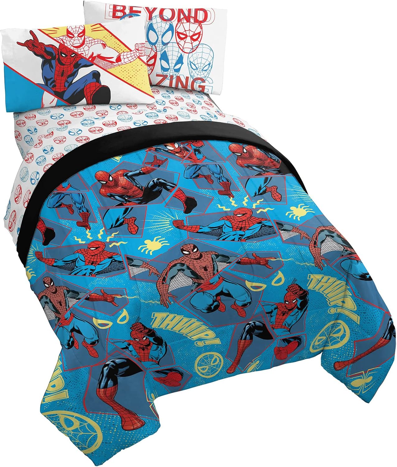 - PERFECT FIT & FUN DESIGN - Twin bed set includes (1) 64 x 86 inch twin comforter, (1) 39 x 75 inch fitted sheet, (1) 66 x 96 inch flat sheet, (1) 20 x 30 inch standard pillowcase, and (1) 20 x 26 inch sham. Add a touch of decorative enchantment to your room with our fashionable and super soft Spidey & His Amazing Friends bed set.