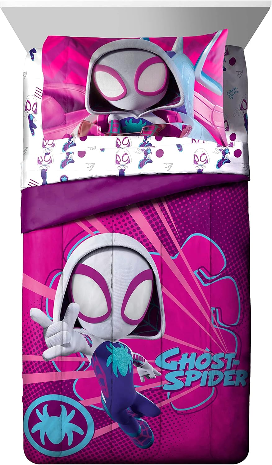 Marvel Spidey & His Amazing Friends Ghost Spider Gwen 5 Piece Twin Bed Set - Bedding Includes Comforter & Sheet Set - Super Soft Fade Resistant Microfiber
