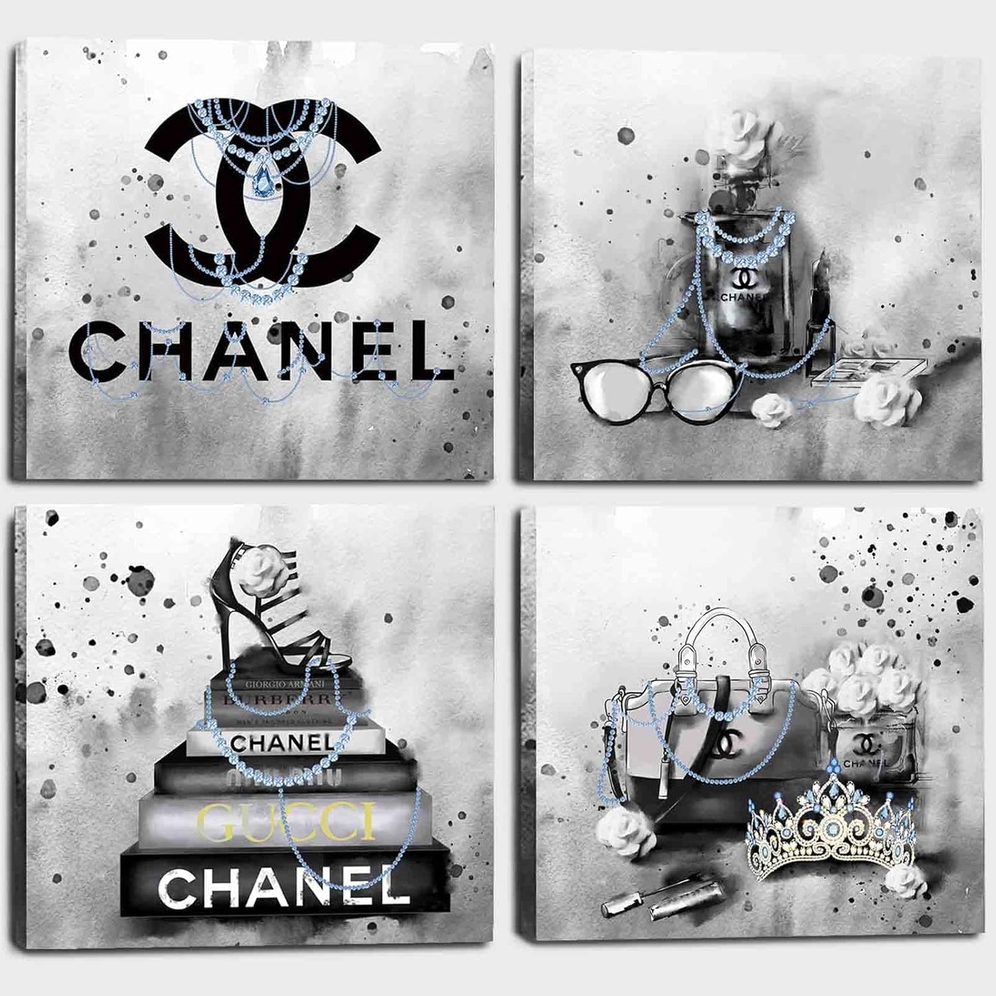 Meetdeceny Fashion Wall-Art For Bedroom Women - Black And White Bathroom Decor Wall Art - Fashion Book Stack Grey Painting Canvas Artwork Size 10"x10" 4 Pieces Ready To Hang
