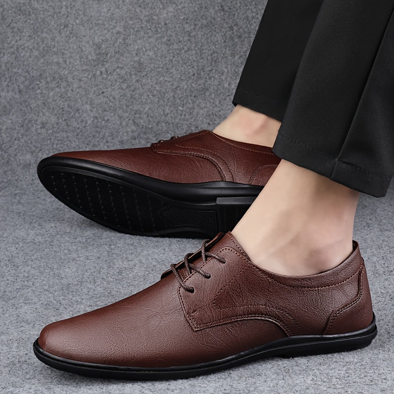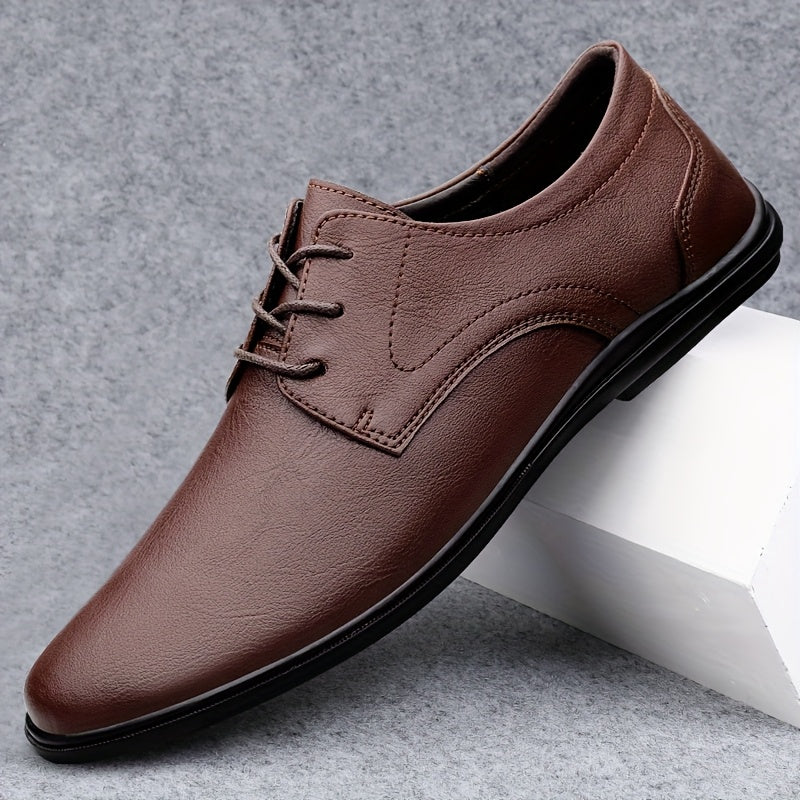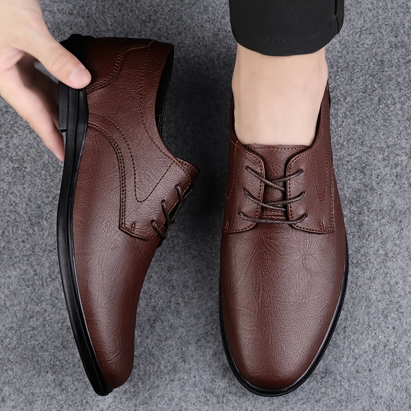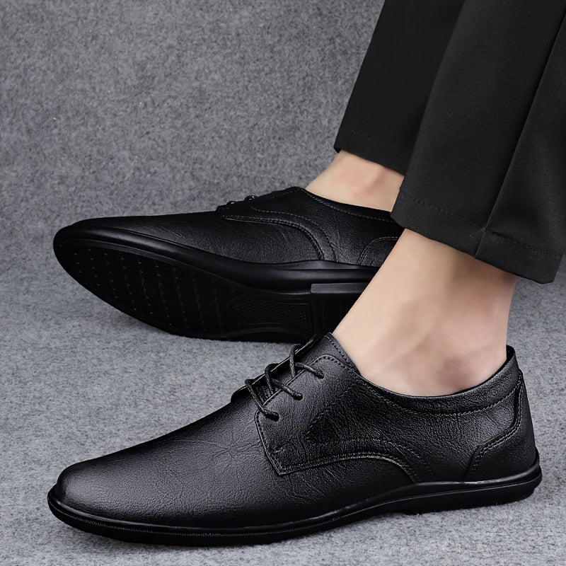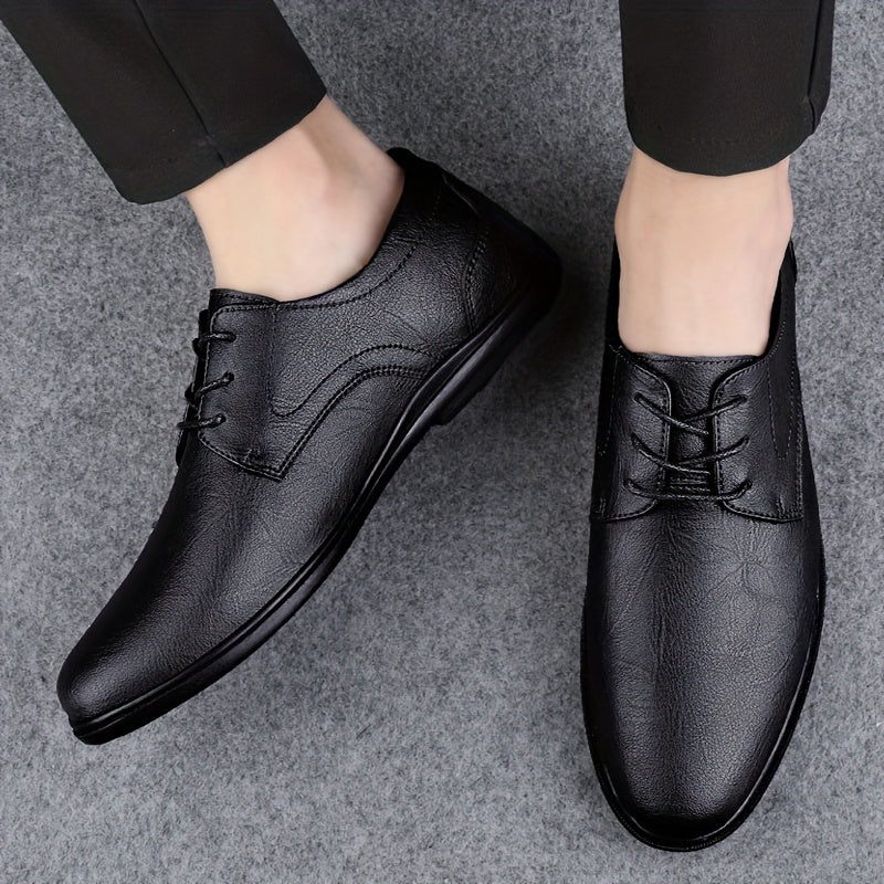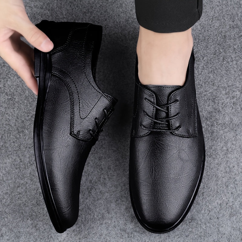 Men's Classic Black Derby Shoes - Lace-Up Business Casual Dress Shoes with Rubber Sole for Office or Formal Occasions