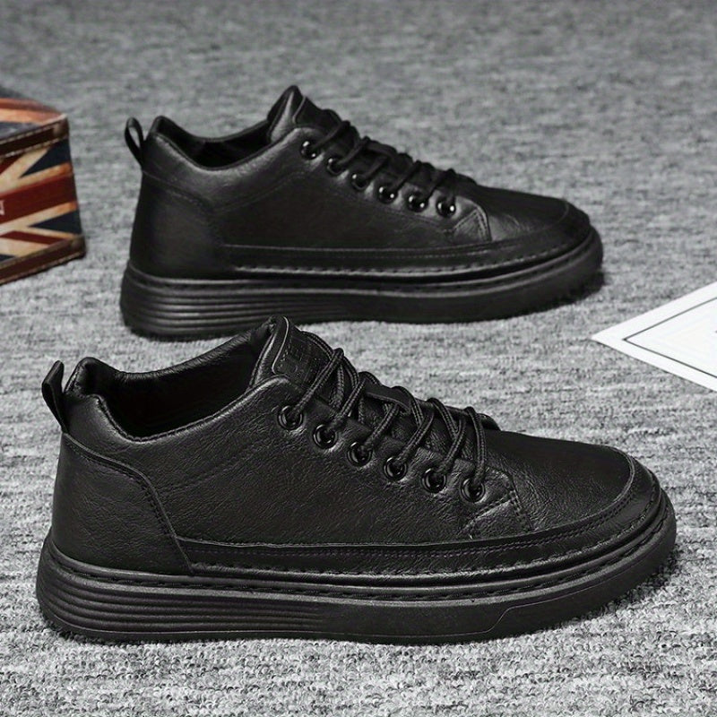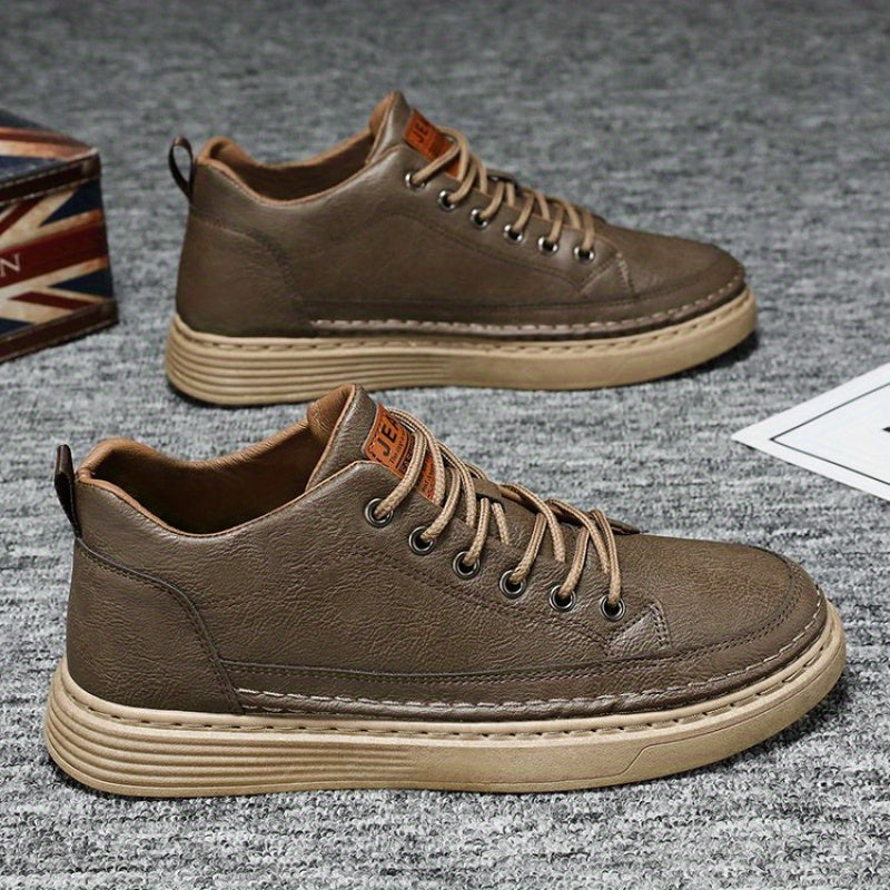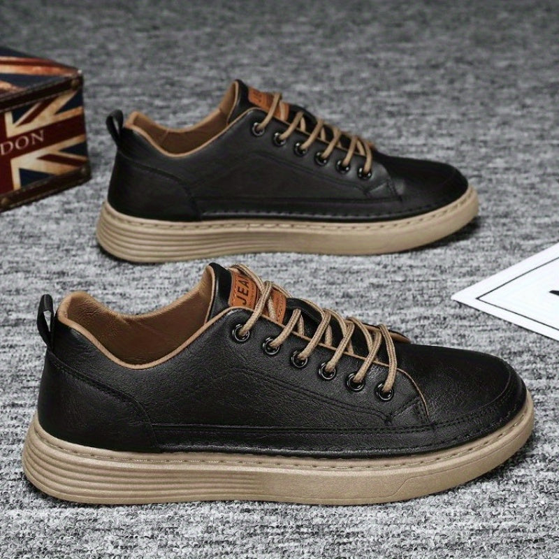 Men's Lace-Up Casual Shoes - Soft Cushioned Sole, Non-Slip Rubber Outsole, Low-Top Sneakers for Everyday & Formal Wear - Black/Brown Accent - Summer Urban & Office Shoes - Durable PU Upper & Cushioned Insole - Breathable Men's Footwear, Sleek Design, Qual