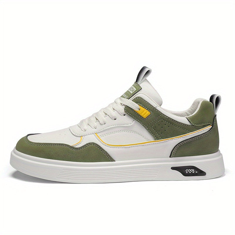 Men'S Non-Slip Casual Sneakers - Low-Top Breathable Mesh & Synthetic Synthetic, Green & Yellow Accents, Cushioned EVA Insole for Everyday Comfort, Skateboarding & Casual Attire, Skateboarding Footwear, Stylish Contrast Stitching, Durable Rubber Sole
