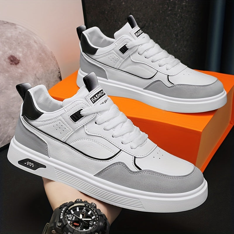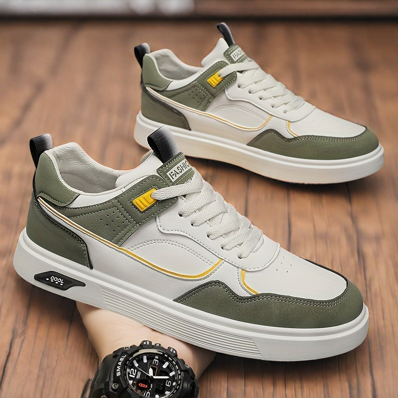 Men'S Skate Sneakers with Good Grip - Breathable Lace-Up Walking Shoes, White & Green Accents, Cushioned PVC Sole for All-Day Comfort, Casual Style, Allseason Shoes | Stylish Laceup Sneakers | Comfortable Walking Shoes