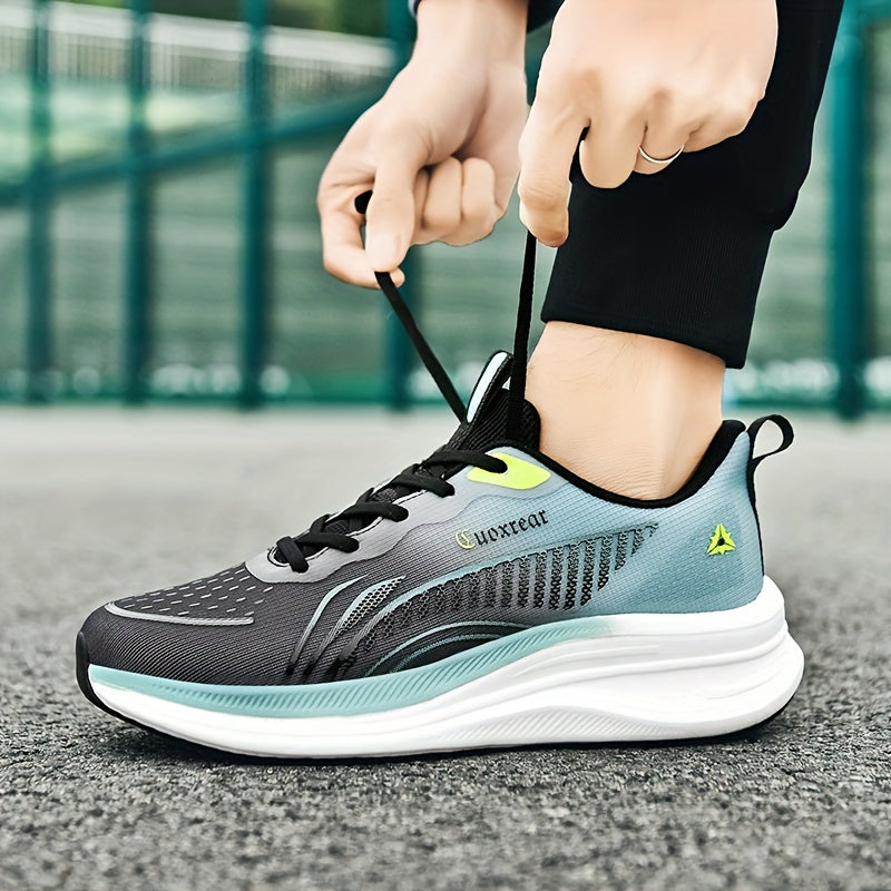Men's Trendy Shock Absorption Lace Up Running Shoes, Non Slip Comfy Sneakers For Outdoor Gym Training Workout, All Seasons