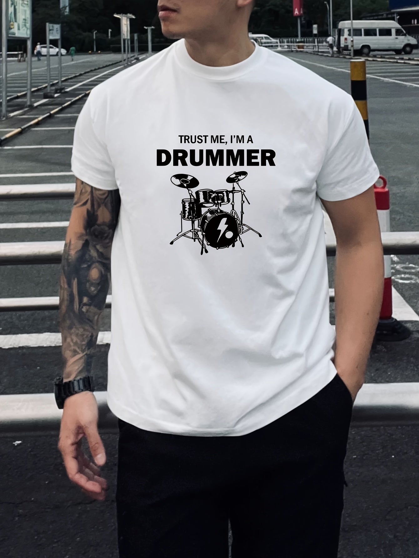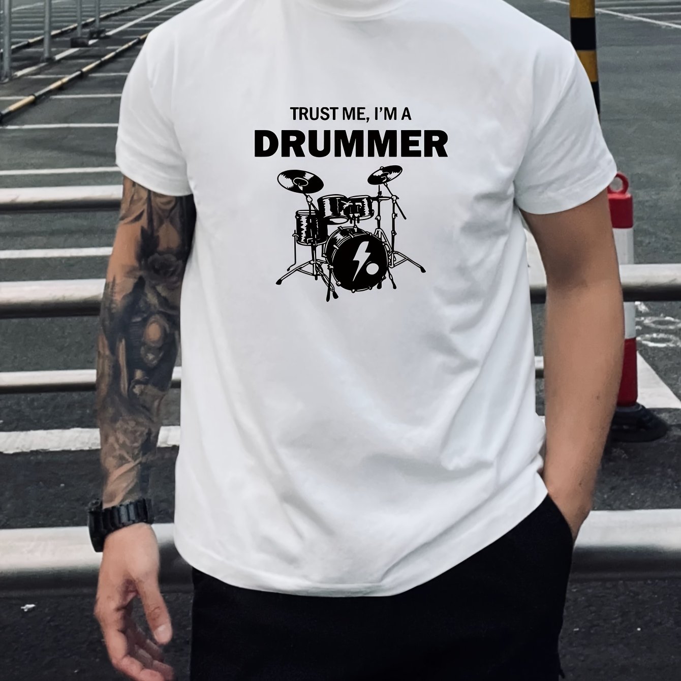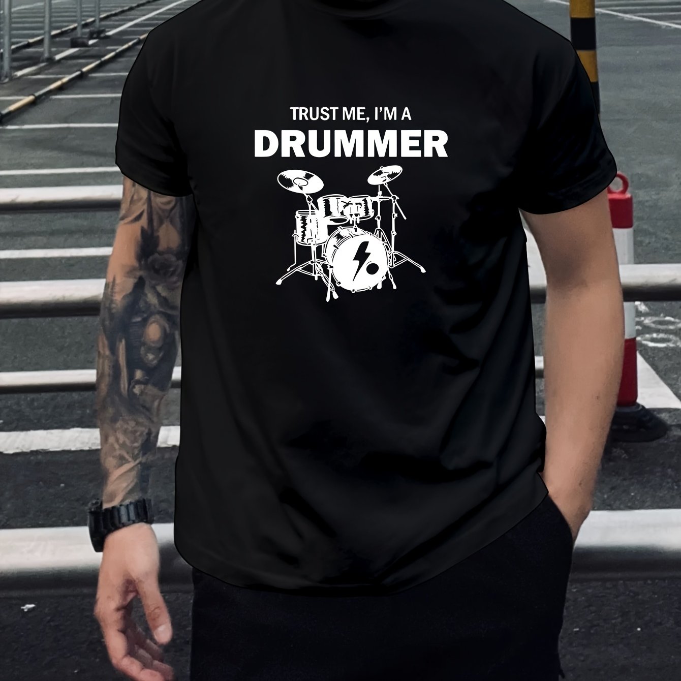 Men's "Trust Me, I'm a Drummer" Graphic T-Shirt - 100% Cotton, Soft & Comfortable Short Sleeve Tee for Casual Outings, Black with White Print, Lightweight & Breathable Design, Casual Wear | Drummer Themed Shirt | 100% Cotton Tee, Drummer Gifts