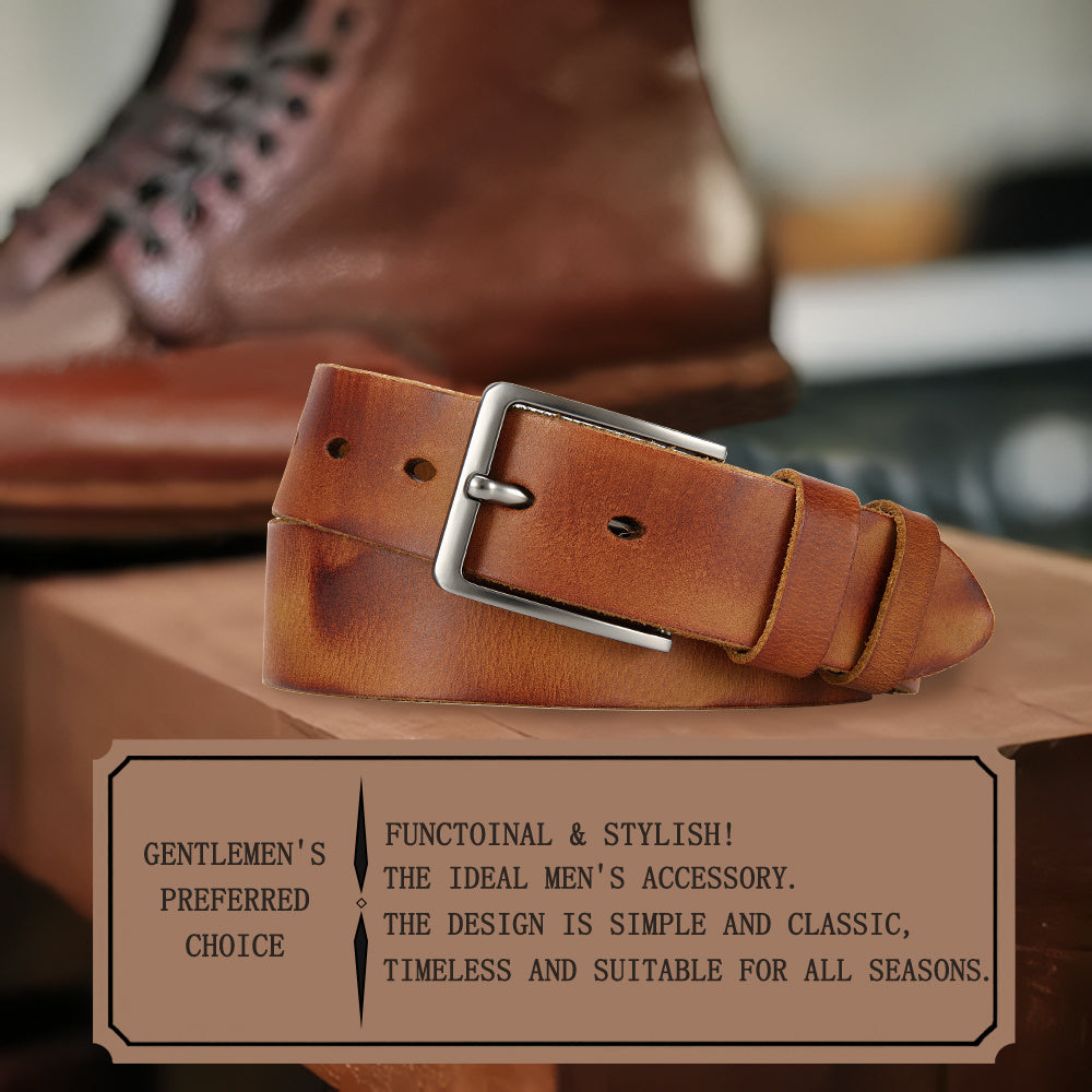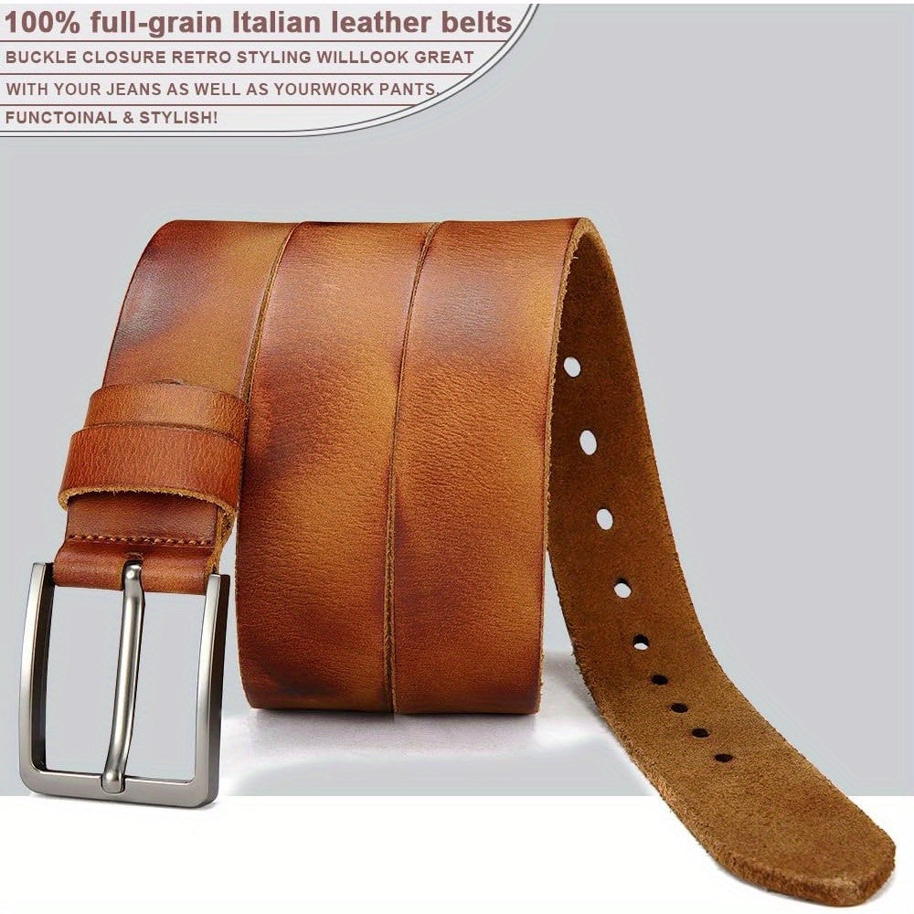 Men's Vintage Dress Belt - Father's Day Gift, Full Grain Leather, Antique Buckle (Gift Box, Tan)