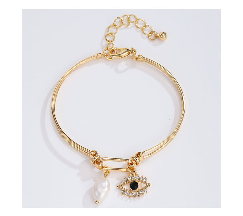 Metal Gold Plated Movable Adjustable Bracelet Pearl Diamond Embedded Devil Eye Embellished