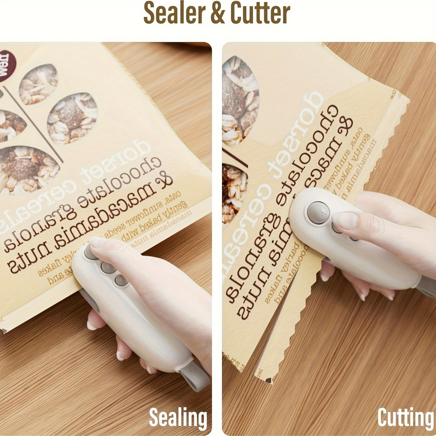 [Mini Bag Sealer] Rechargeable Mini Bag Sealer With Cutter And Magnetic Adsorption - 1pc Handheld Heat Sealer Machine For Keeping Food Fresh And Snacks Crispy