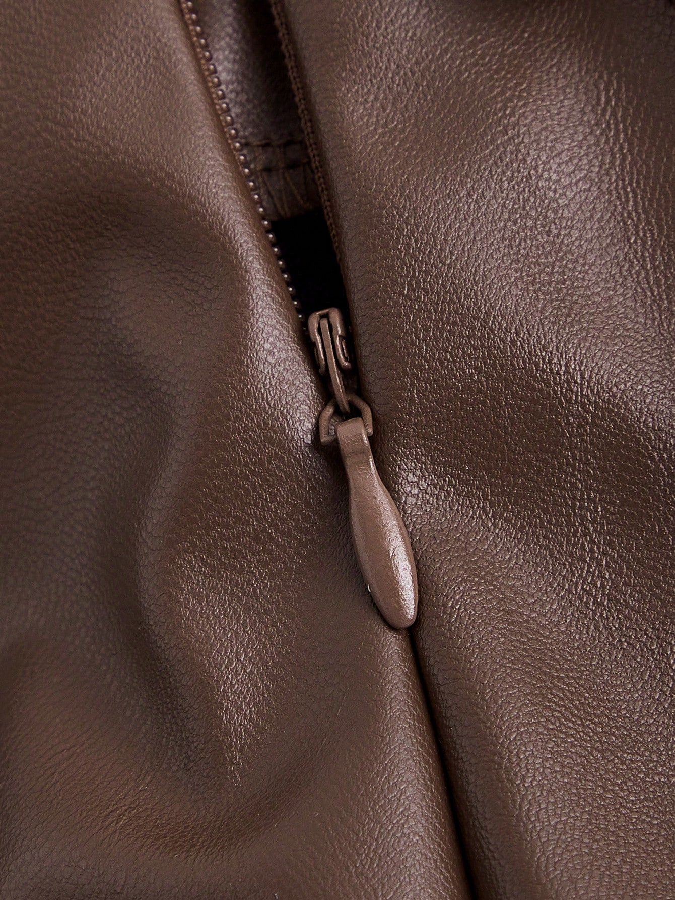 MOD Brown Side Slit Metallic Trim Faux Leather A-Line Skirt, Going Out Skirt, Vintage Skirt, Fall Outfits, Sexy Skirt, Leather Skirt
