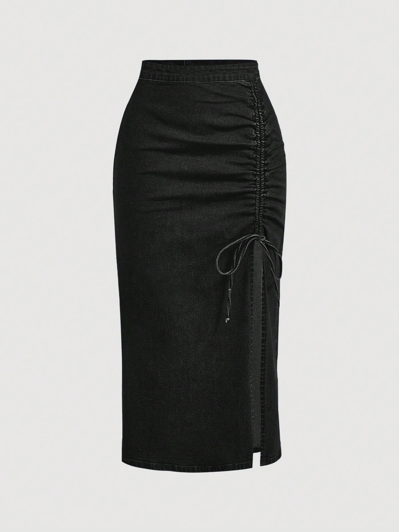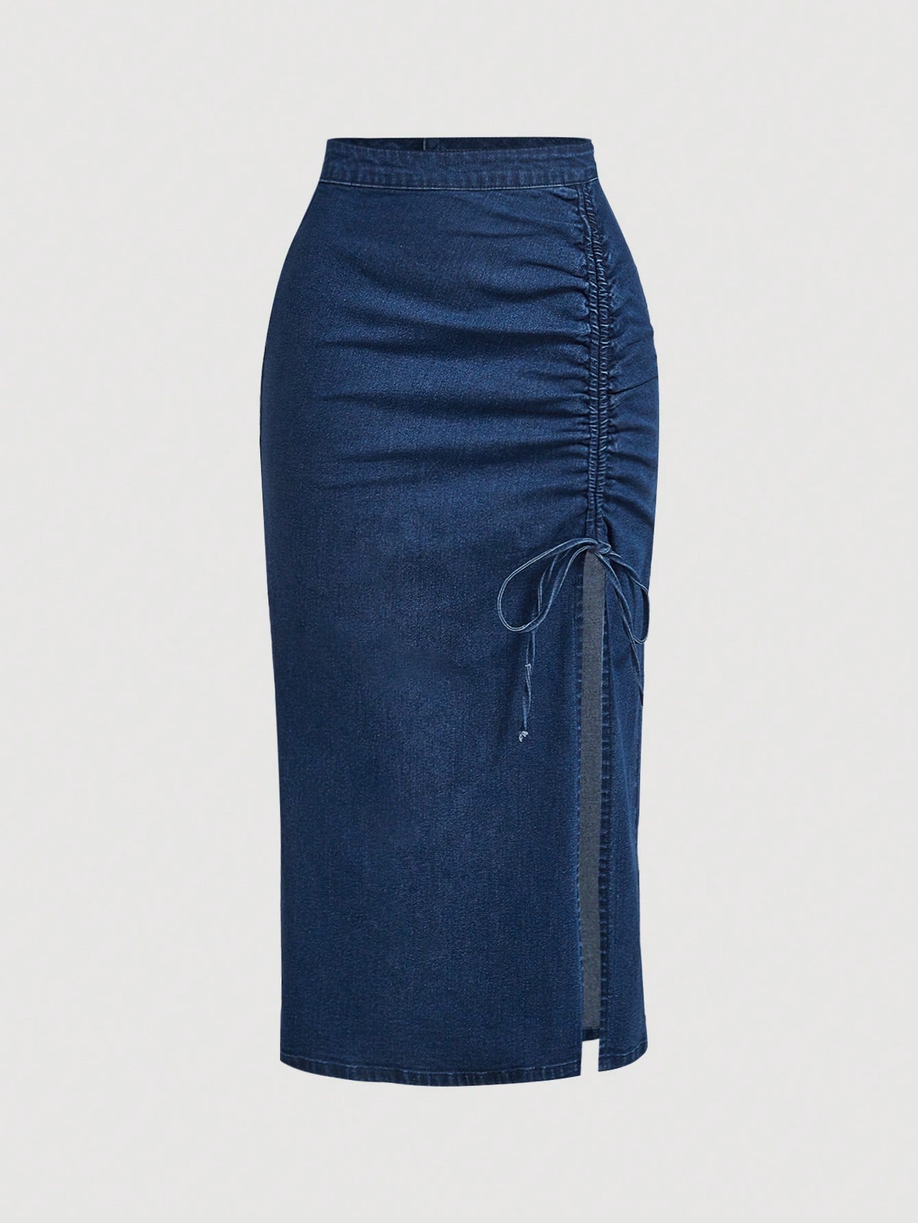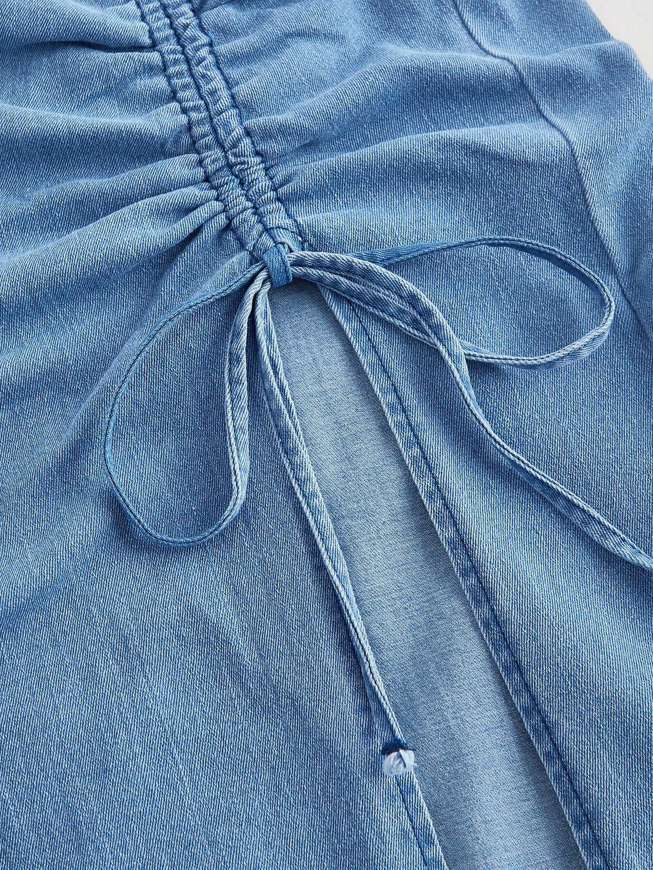MOD Women's Plain Simple Daily Tie-Up Denim Skirt