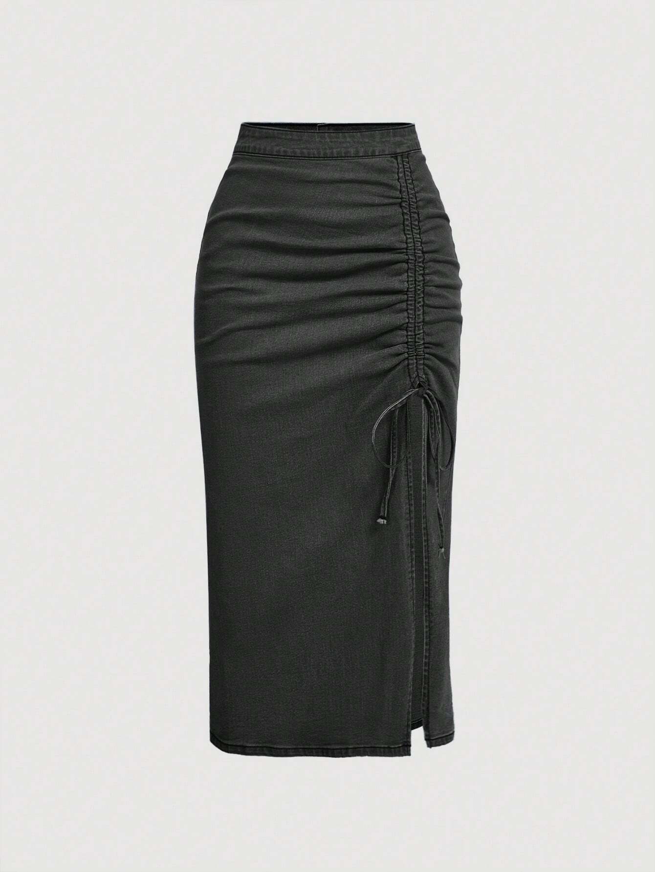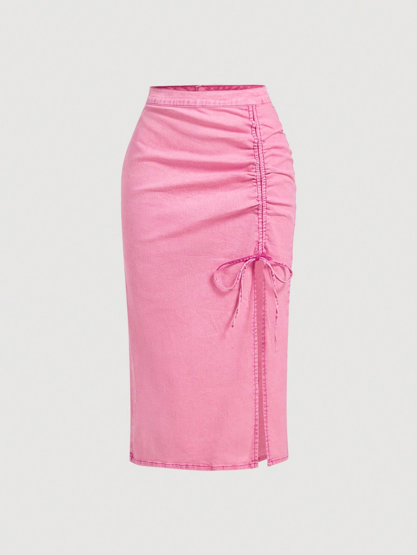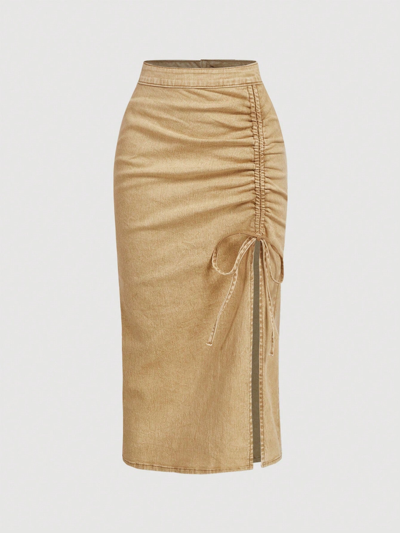 MOD Women's Plain Simple Daily Tie-Up Denim Skirt