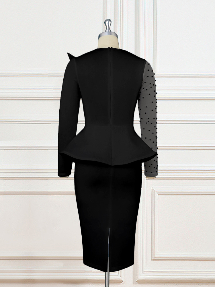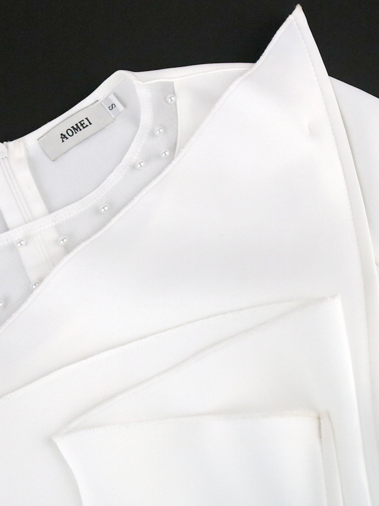 Model Cutting Piece Stitching Faux Two Piece Dress Beaded High Waist Slimming Dress