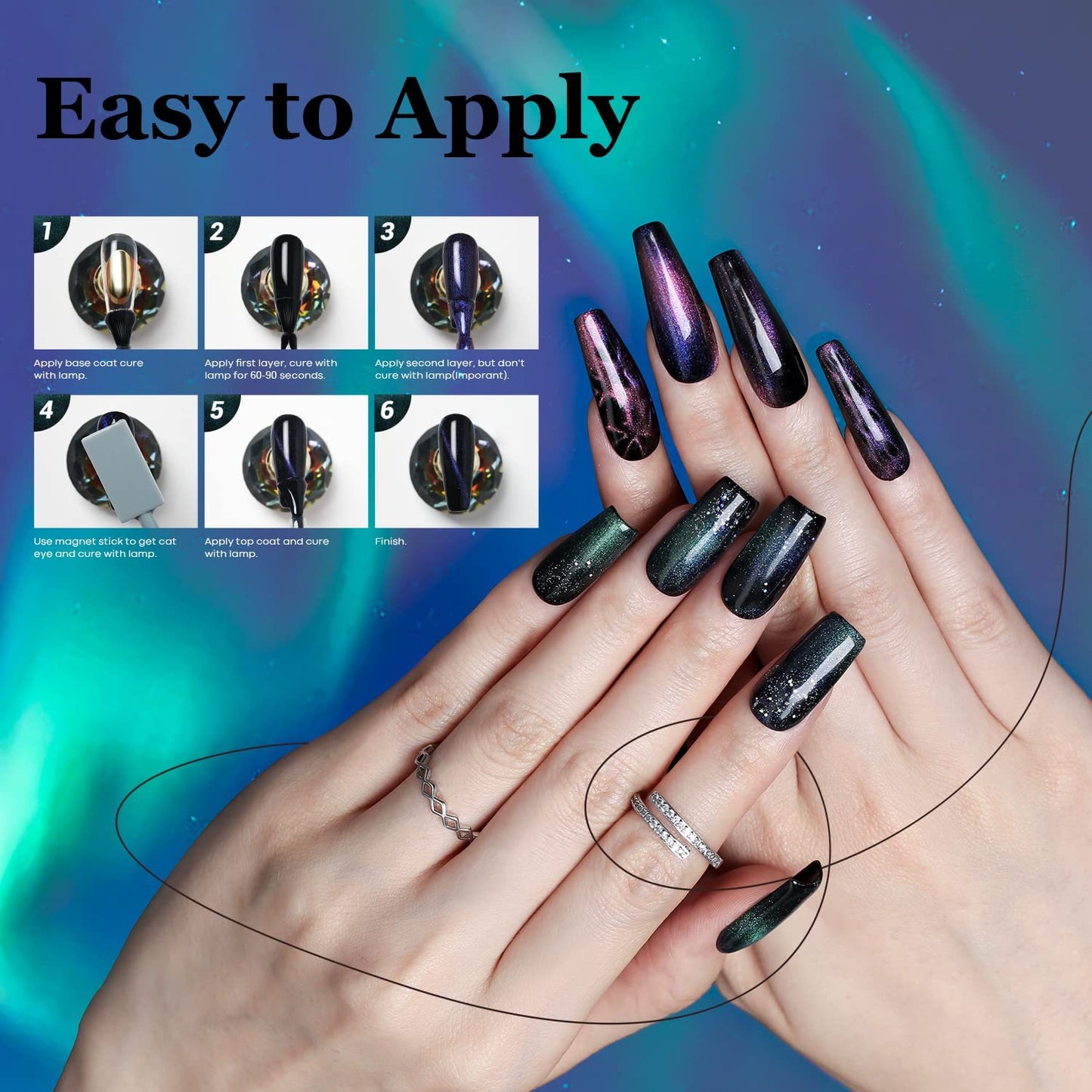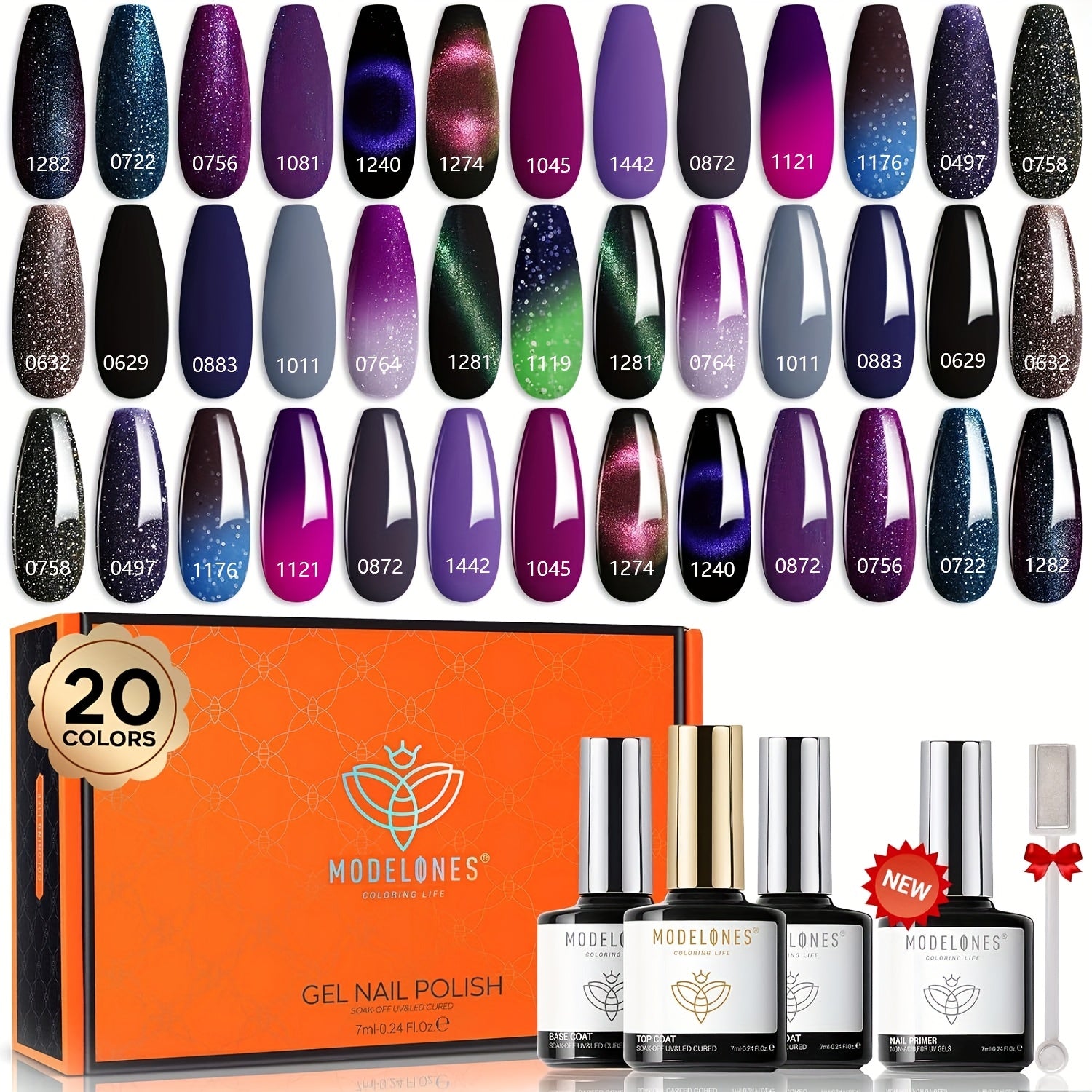 Modelones 25pcs Gel Nail Polish Kit, Cat Eye Set Glitter Color Changing with Bond Primer Glossy & Matte Top Coat Base Magnet Stick Manicure DIY Salon Art Gift