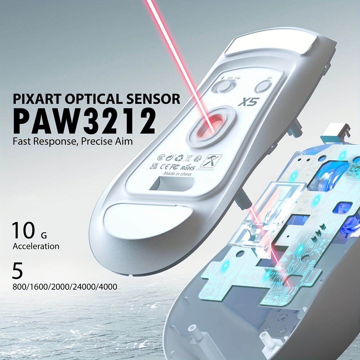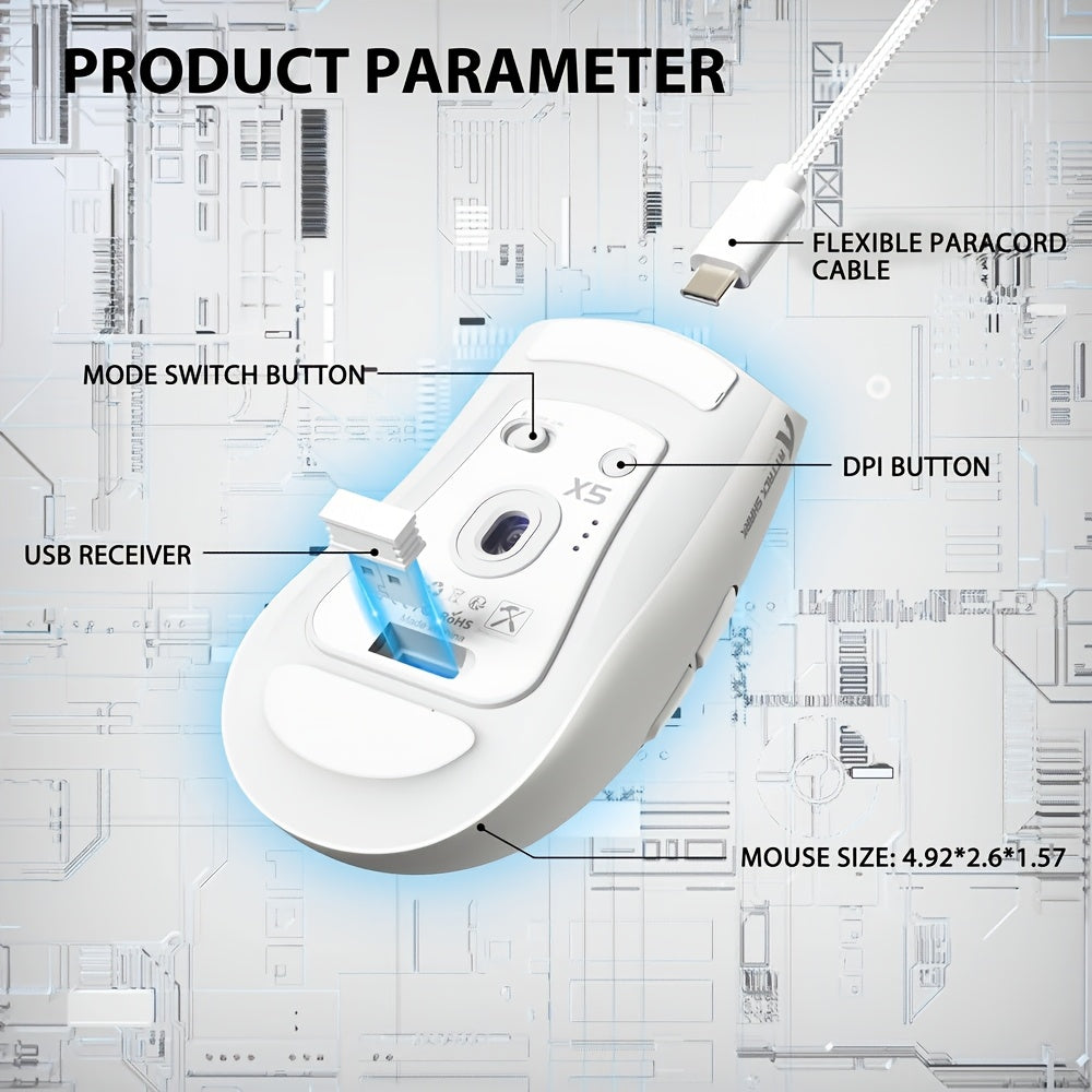 Mouse de Jeu Sans Fil Ultra-Légère X5, 49g - Blanche Élégante avec Rétroéclairage Chroma Tri-Mode, Design Ergonomique, Rechargeable via Type-C, Capteur Optique PixArt, Compatible Windows 8 pour les Joueurs PC