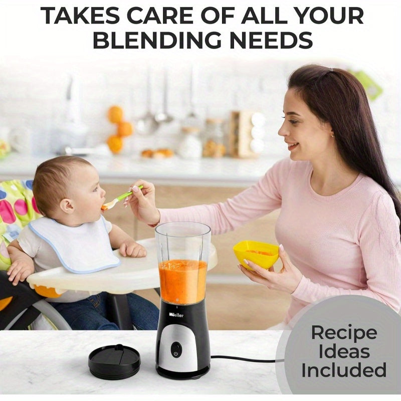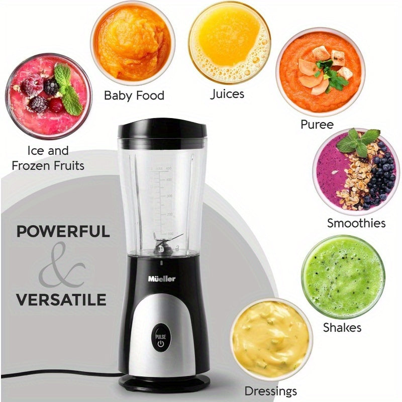 Mueller Heavy-Duty Personal Blender with 15oz Travel Cup & Lid - Powerful Portable Cordless-like Operation, Digital Display, Ergonomic Handle, Durable Metal Construction for Shakes, Smoothies, Juices, Food Processing - Ideal for Home, Travel, Gym, Office