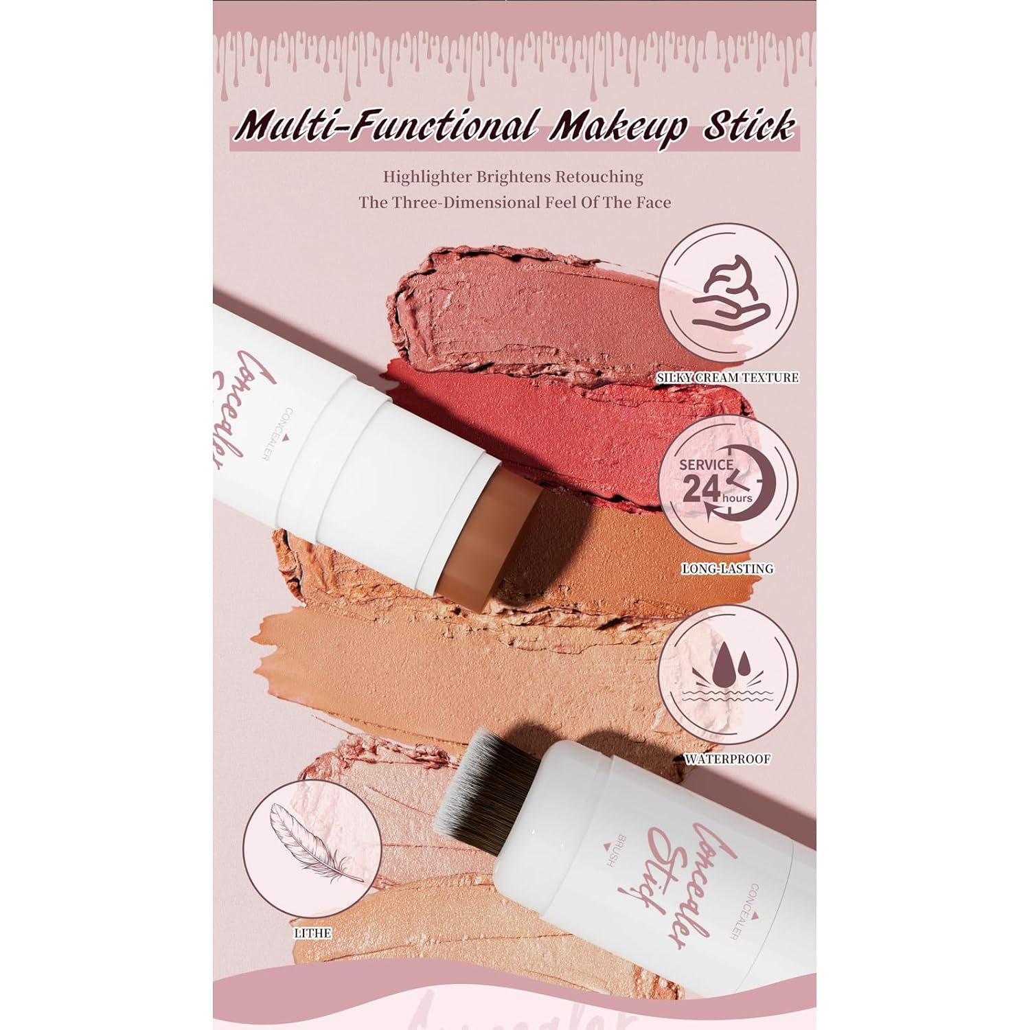 Multi-Use Makeup Blush Stick For All Skin Blush Makeup For Cheeks,Velvet Texture Long Lasting,With Brush Head (M08#)