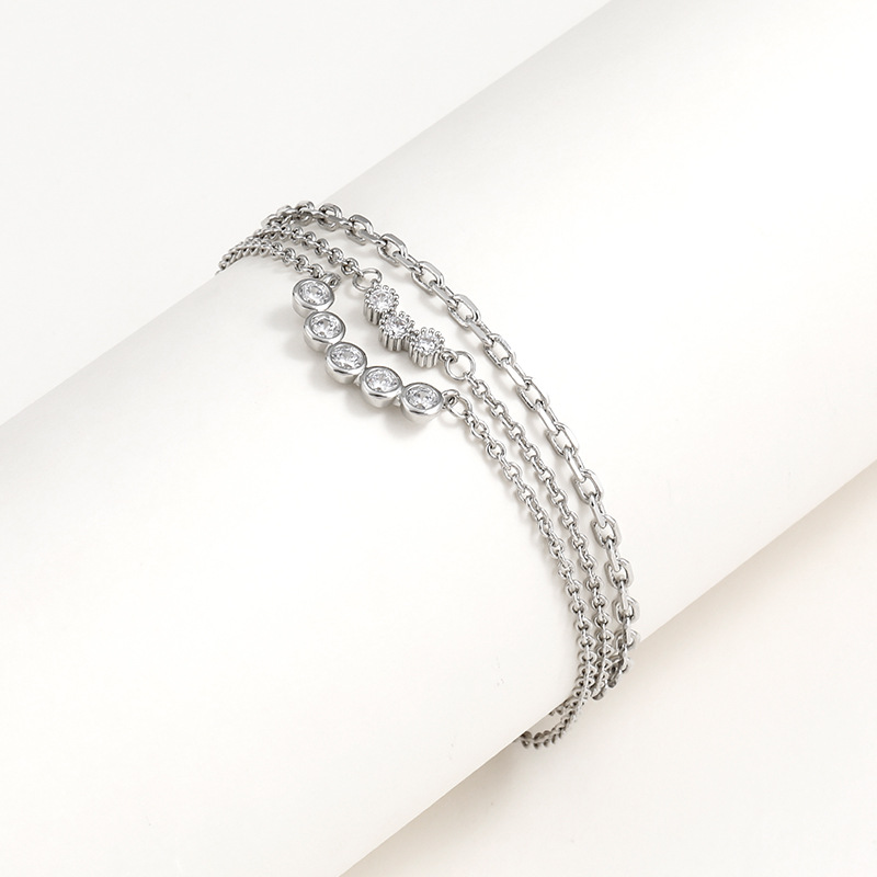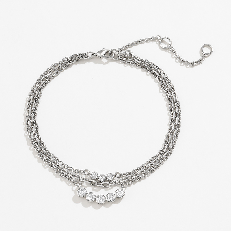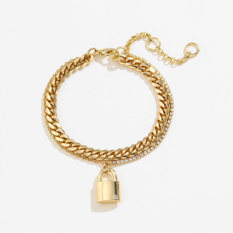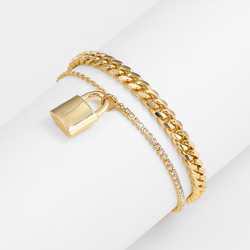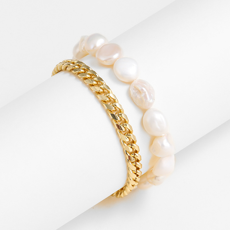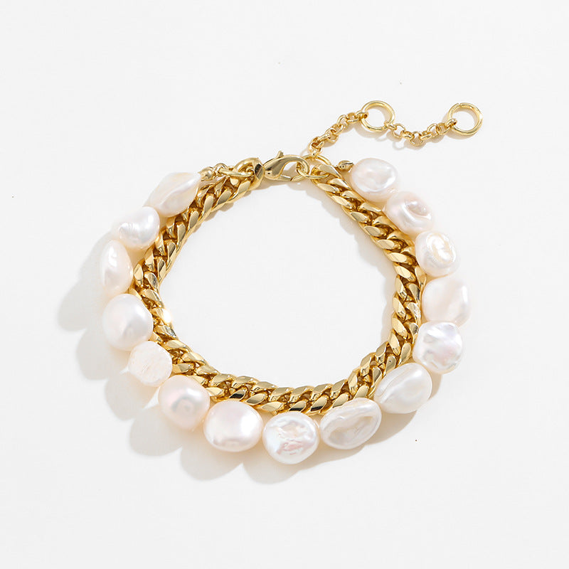 Natural Pearl Double Row Stacked Bracelet Simple Diamond Lock Set Bracelet