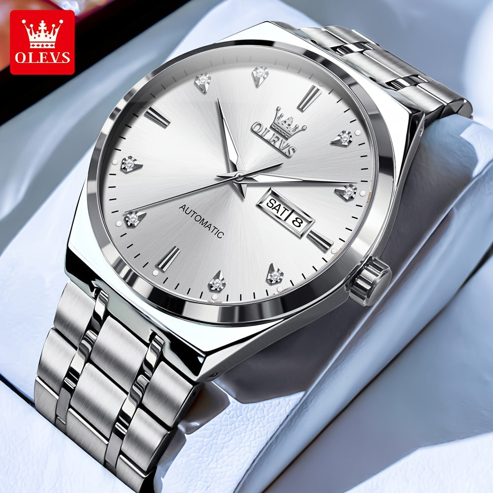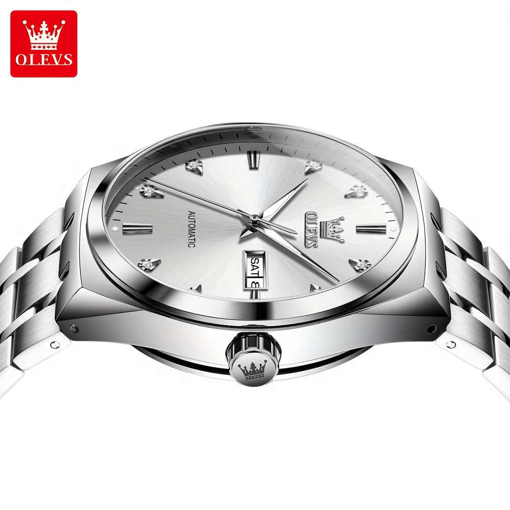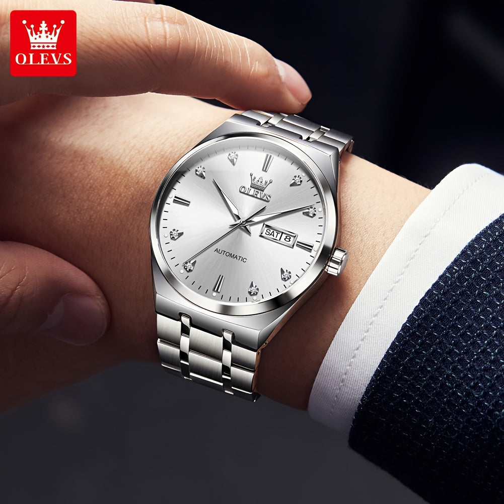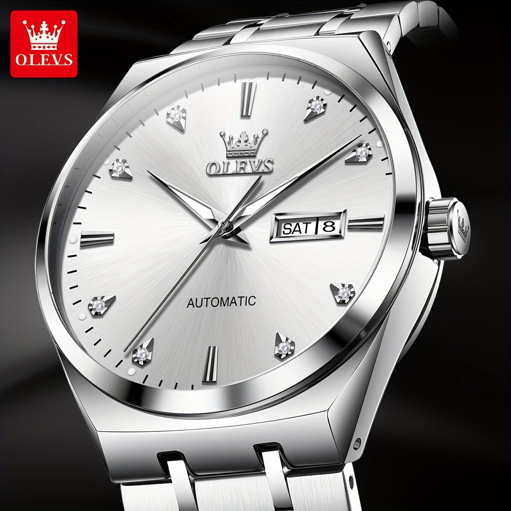 OLEVS Automatic Mechanical Men'S Wrist Watches Stainless Steel Luminous Casual New Trend Watches For Men Luxury Classic Original Business High Quality Top Brand Men'S Watches, Without Battery