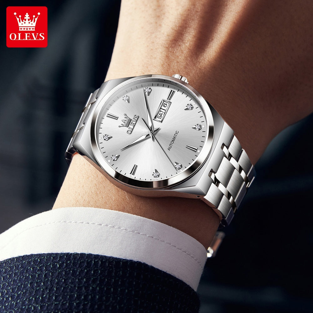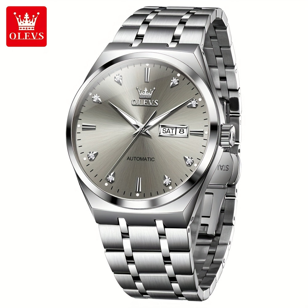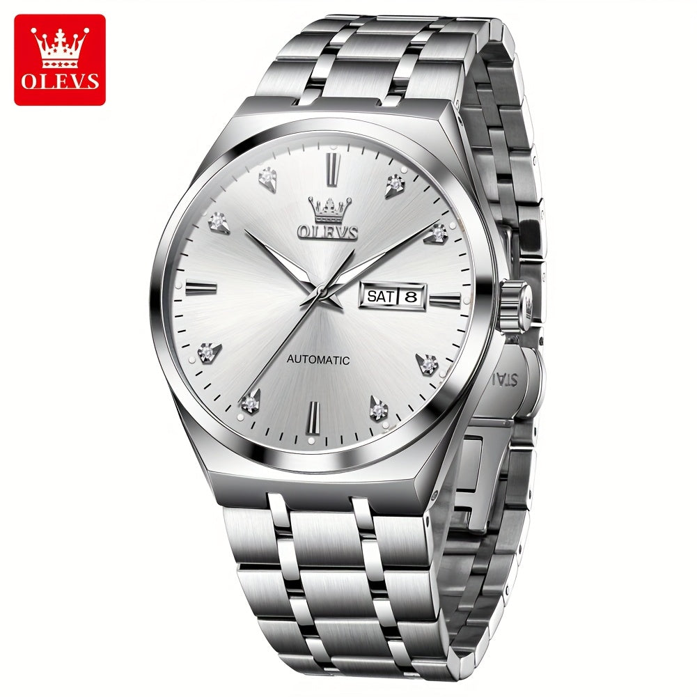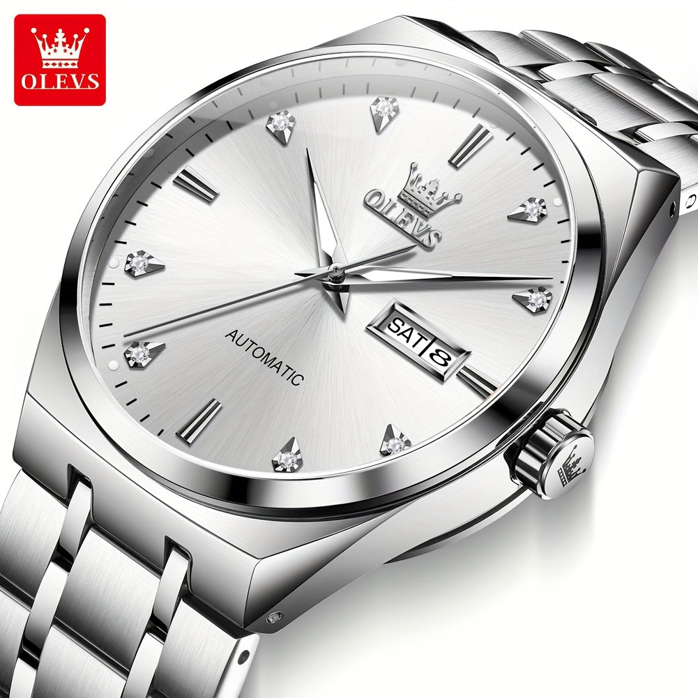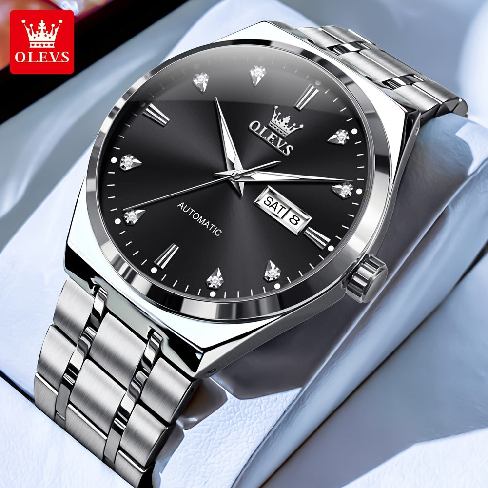 OLEVS Automatic Mechanical Men'S Wrist Watches Stainless Steel Luminous Casual New Trend Watches For Men Luxury Classic Original Business High Quality Top Brand Men'S Watches, Without Battery