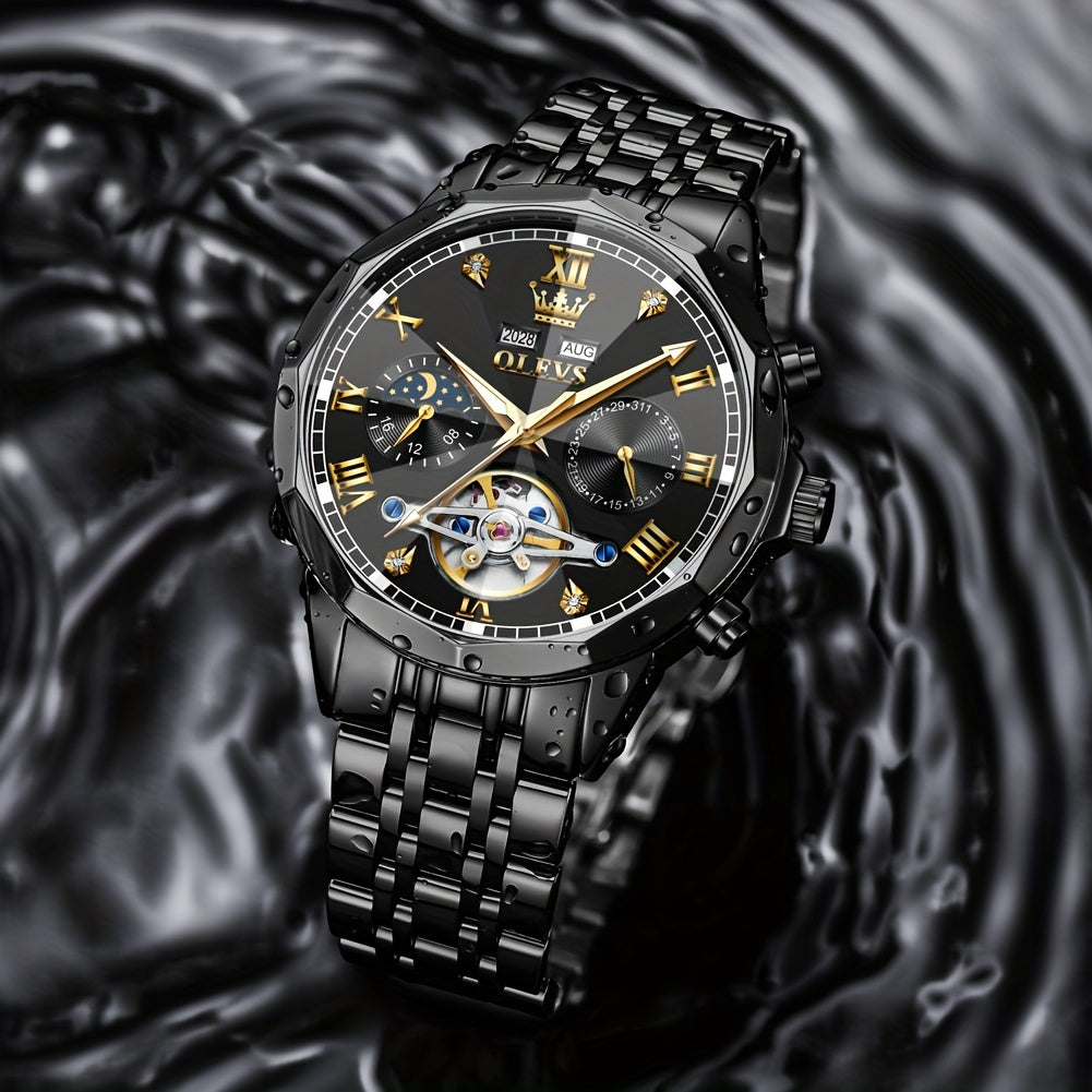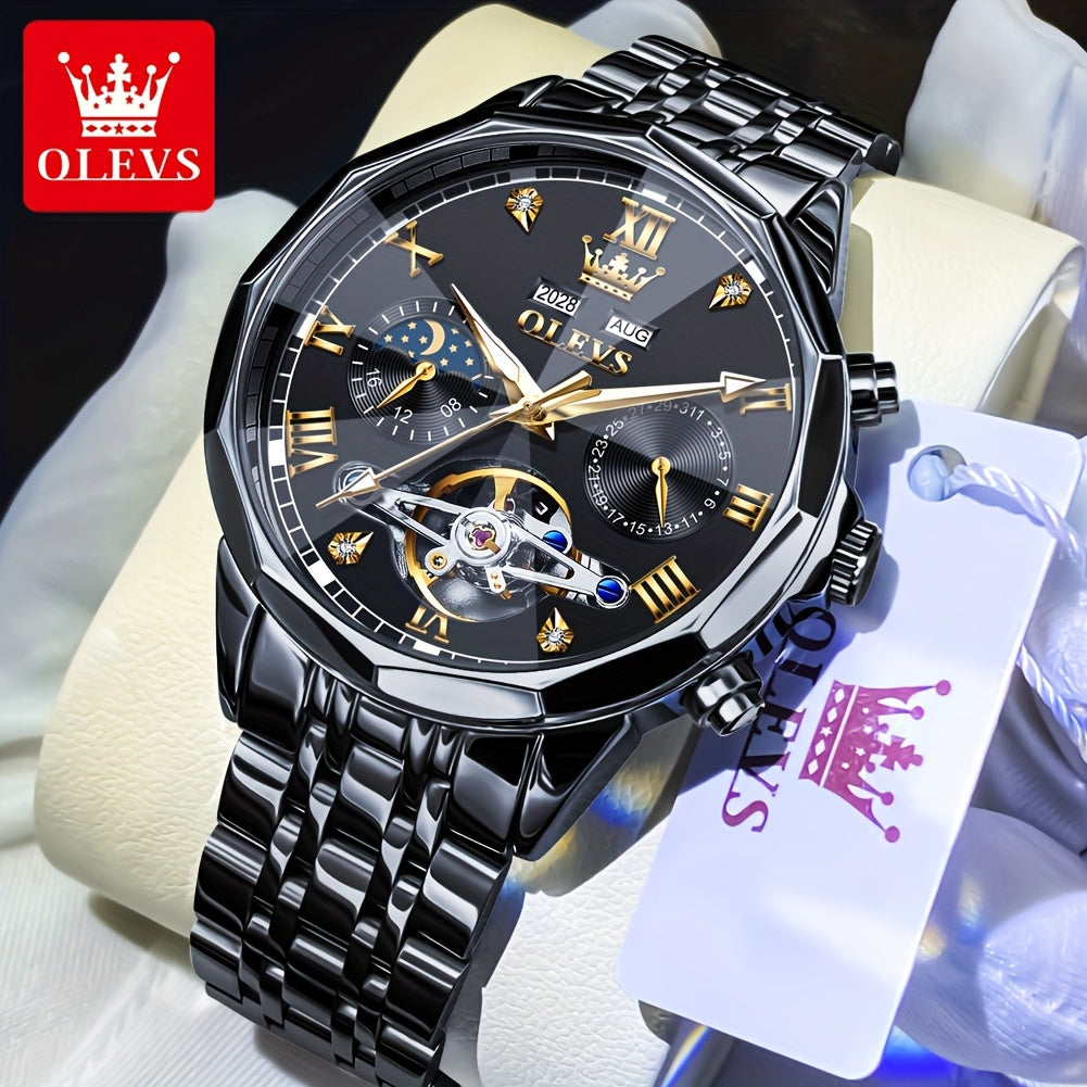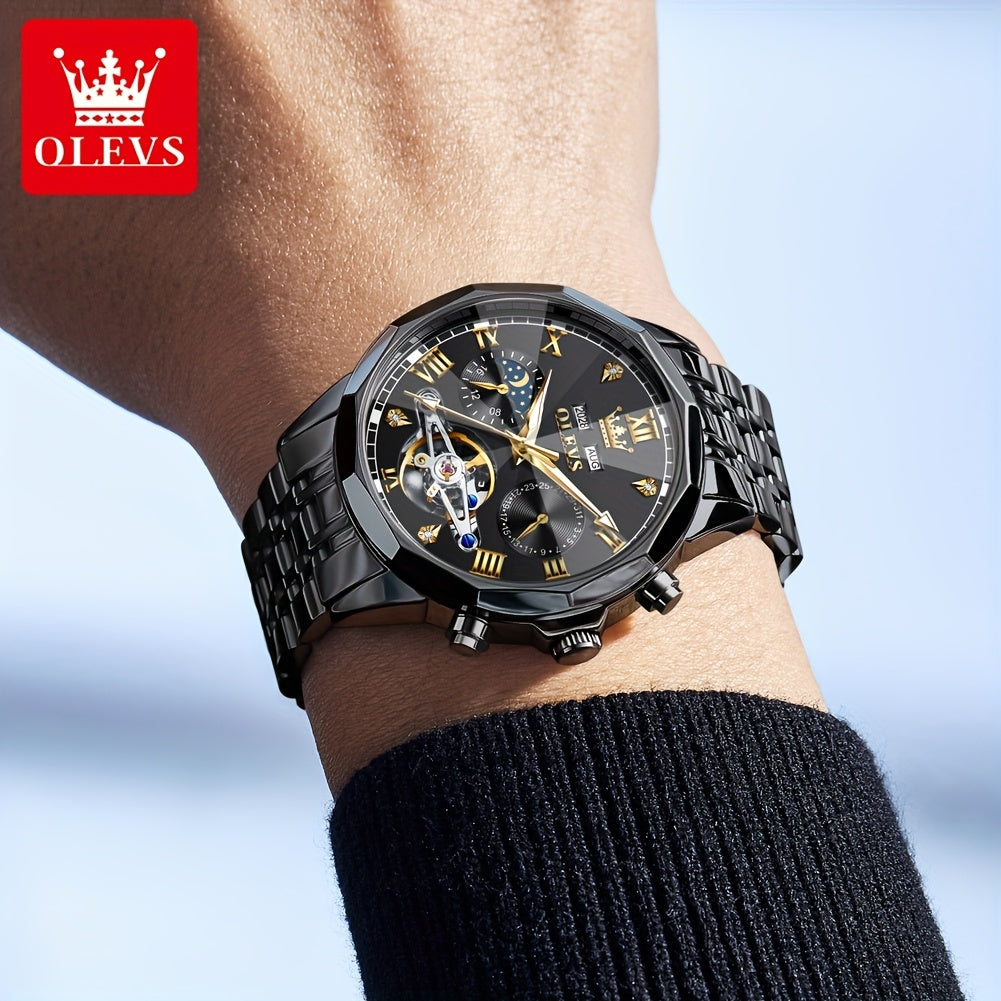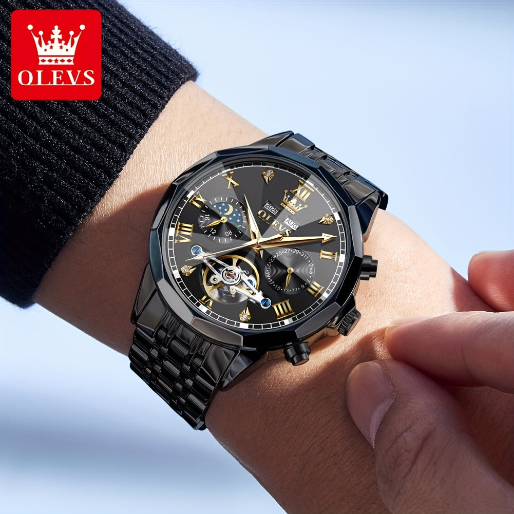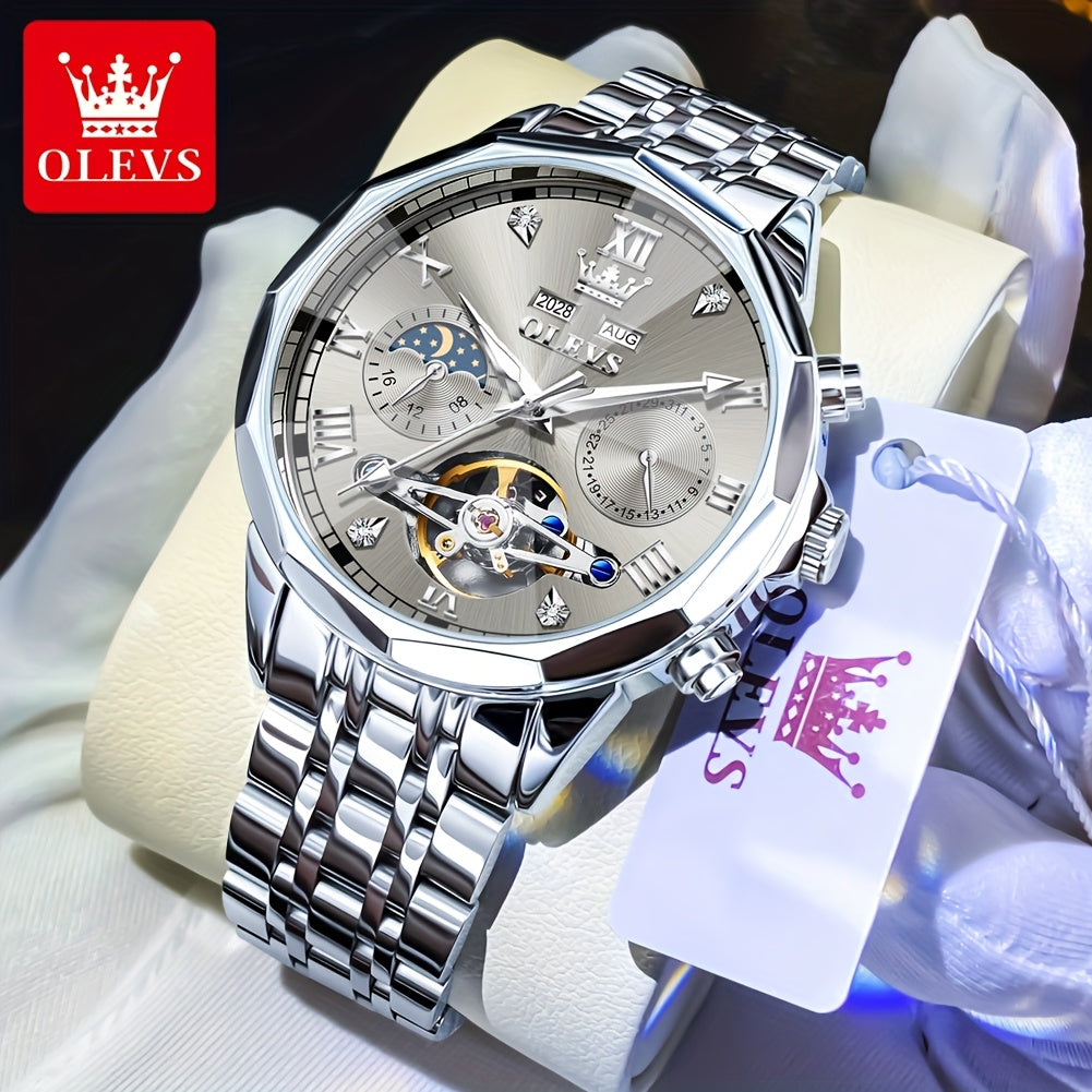 OLEVS Automatic Mechanical Watch for Men - Luxury Business & Formal wristwatch with Stainless Steel case & band, Transparent exhibition back, Day/Date Display, Mechanical Movement - Elegant Dial for Office, Formal Events, Casual Attire - No Battery Needed