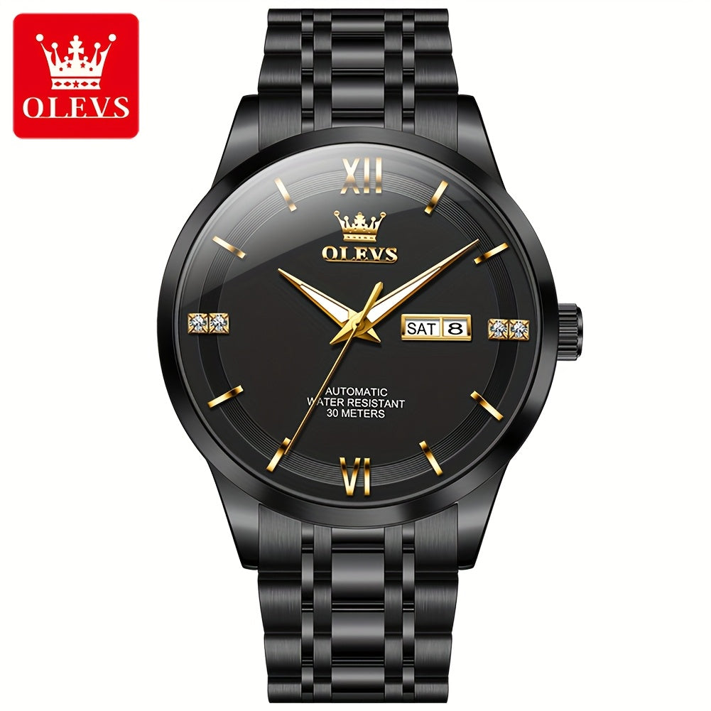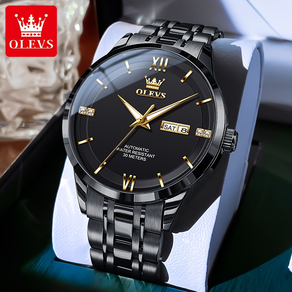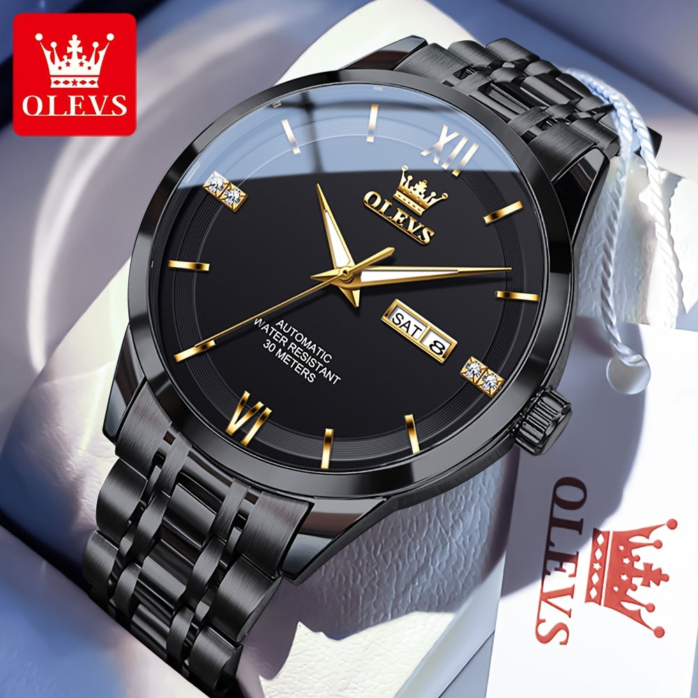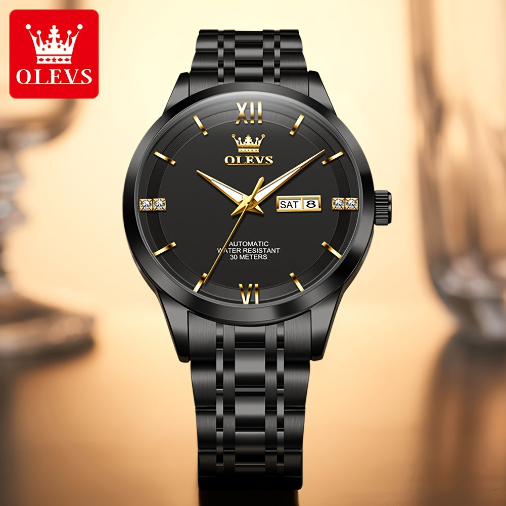 OLEVS Men's Automatic Mechanical Watch with Luminous Black Dial, Golden Accents, Date & Day Display, Stainless Steel Business Casual Dress Watch for Formal & Casual Attire, Professional Wristwatch, Stylish Wristwatch, Highquality Watch, Luxury Wristwatch,