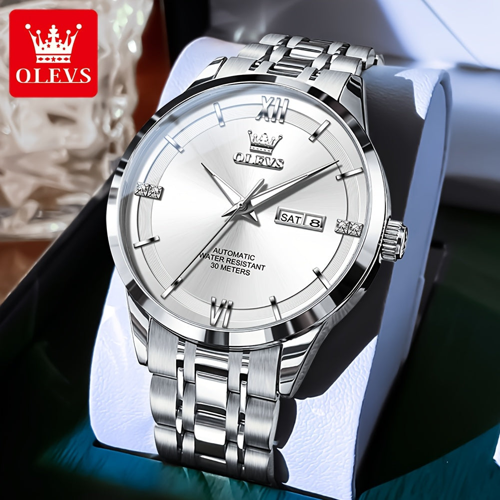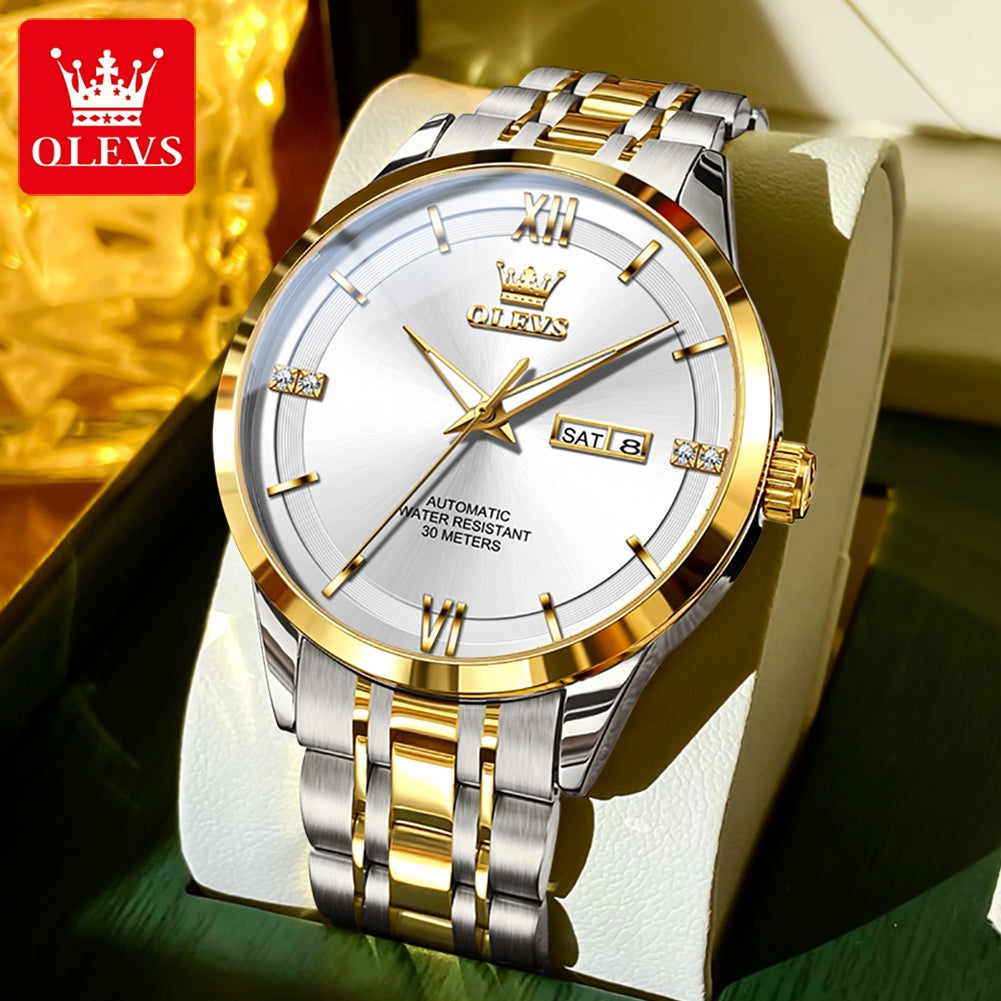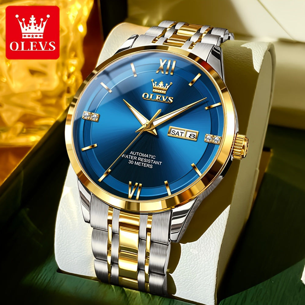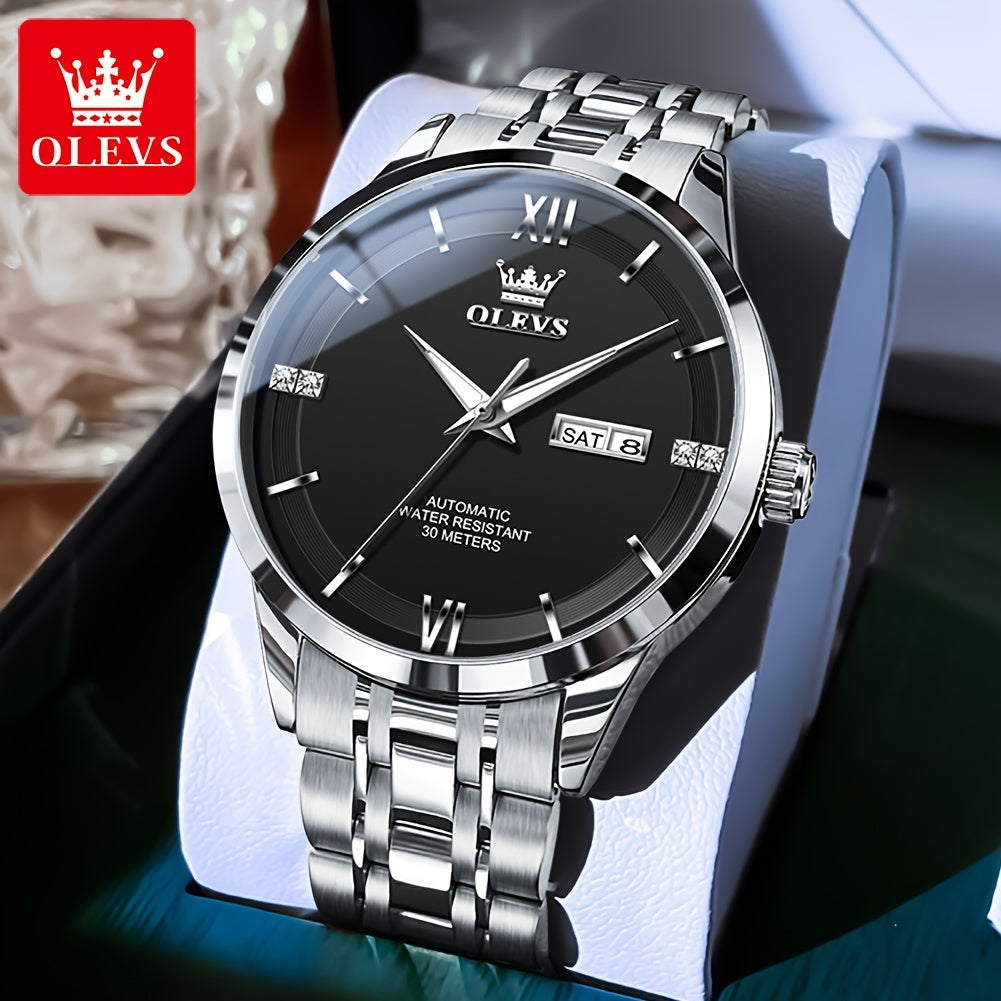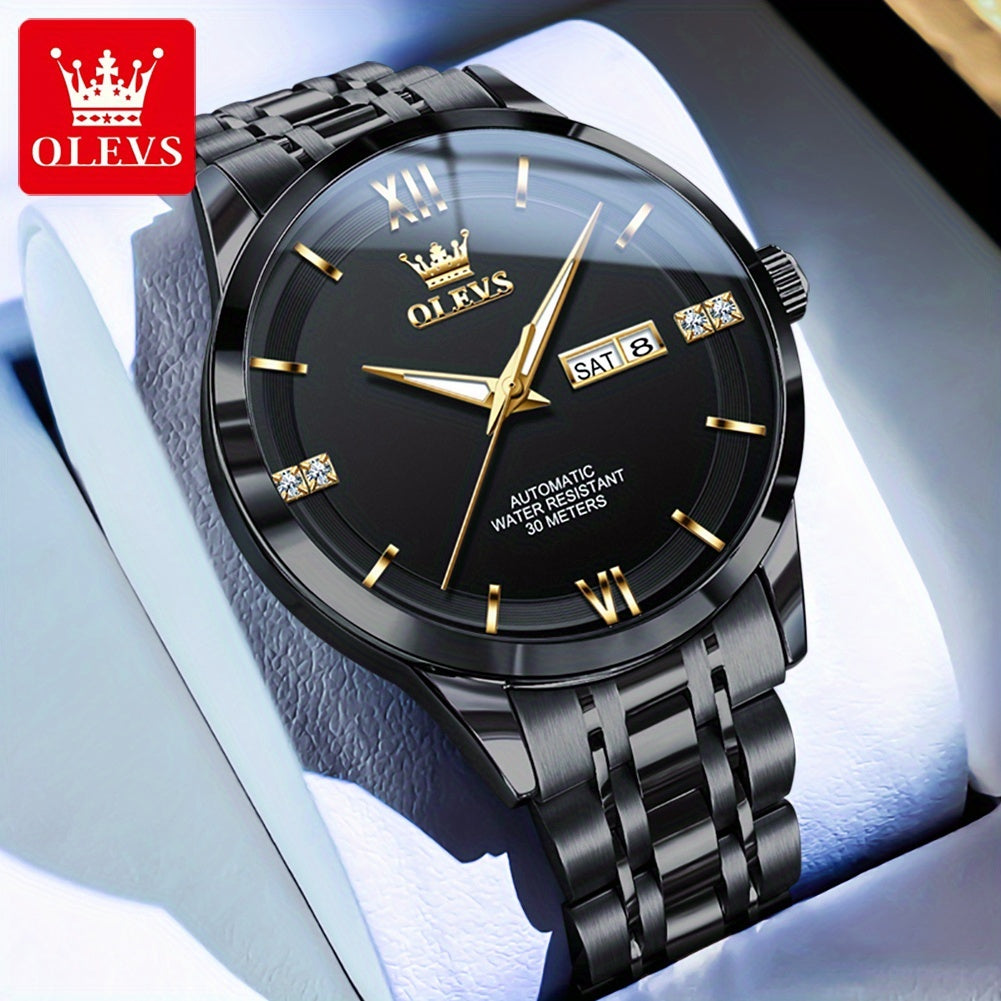OLEVS Men's Automatic Mechanical Watch with Luminous Black Dial, Golden Accents, Date & Day Display, Stainless Steel Business Casual Dress Watch for Formal & Casual Attire, Professional Wristwatch, Stylish Wristwatch, Highquality Watch, Luxury Wristwatch,