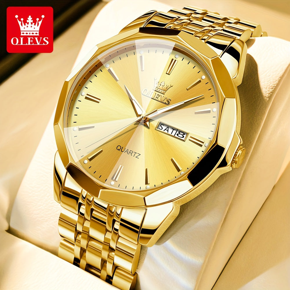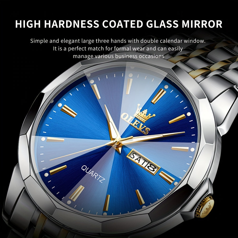 OLEVS Watches for Men Luxury Business Dress Analog Quartz Stainless Steel Luminous Male Big Dial Casual Two Tone Wrist Watch with Day Date Calendar Relojes De Hombre Blue Dial