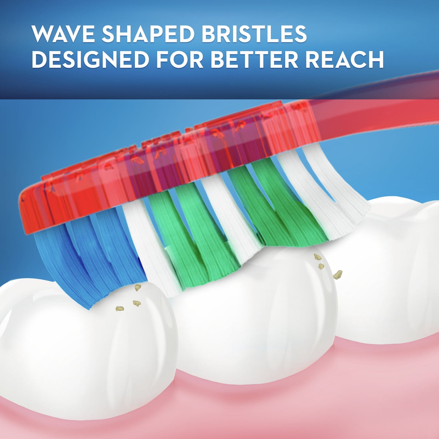 - End-rounded bristles are gentle on teeth and gums