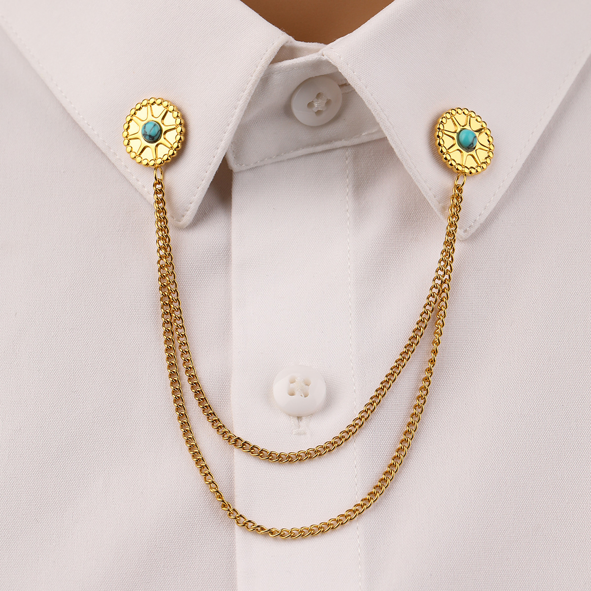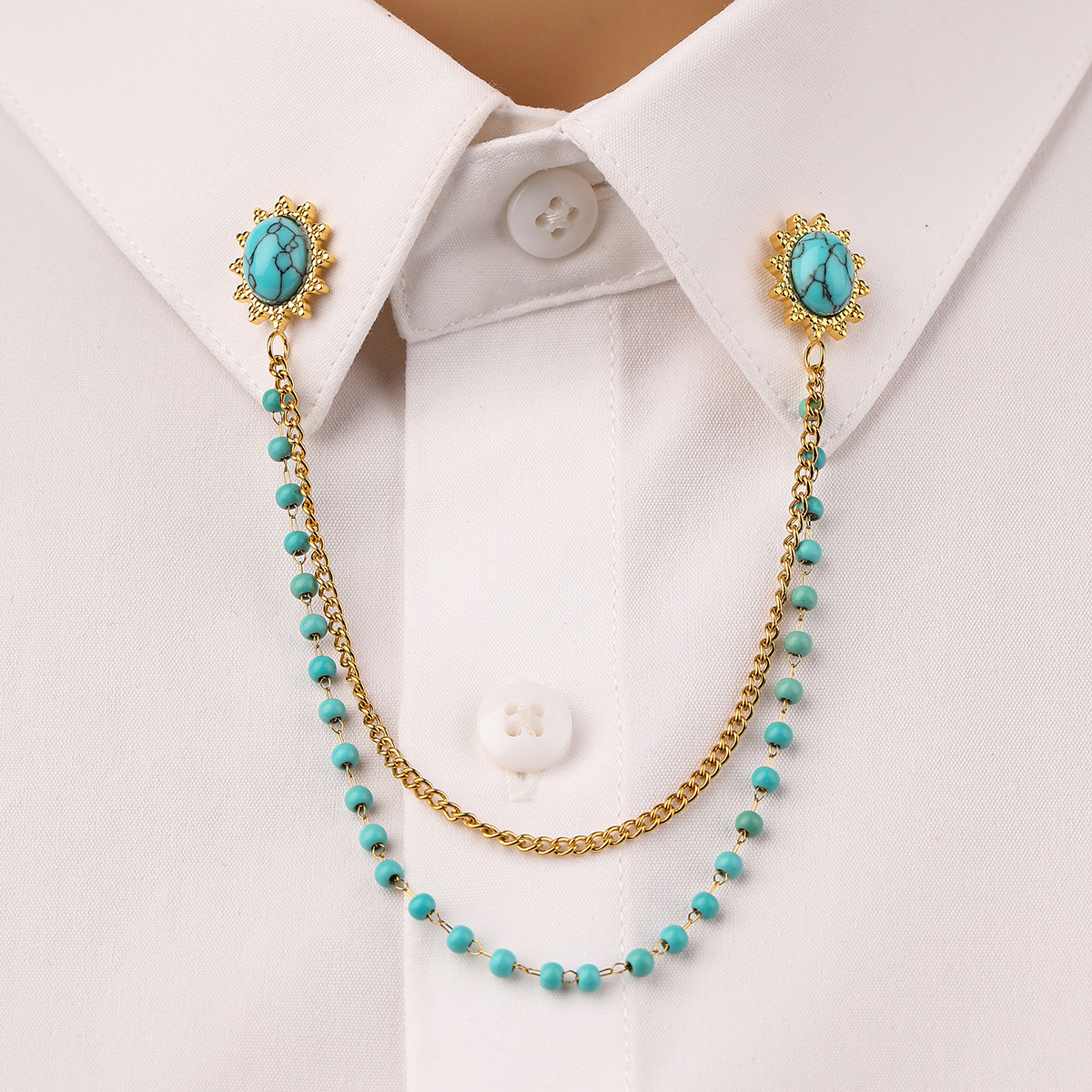 Oval Turquoise Stainless Steel Collar Pin All Match Shirt Neckline Ornament Women
