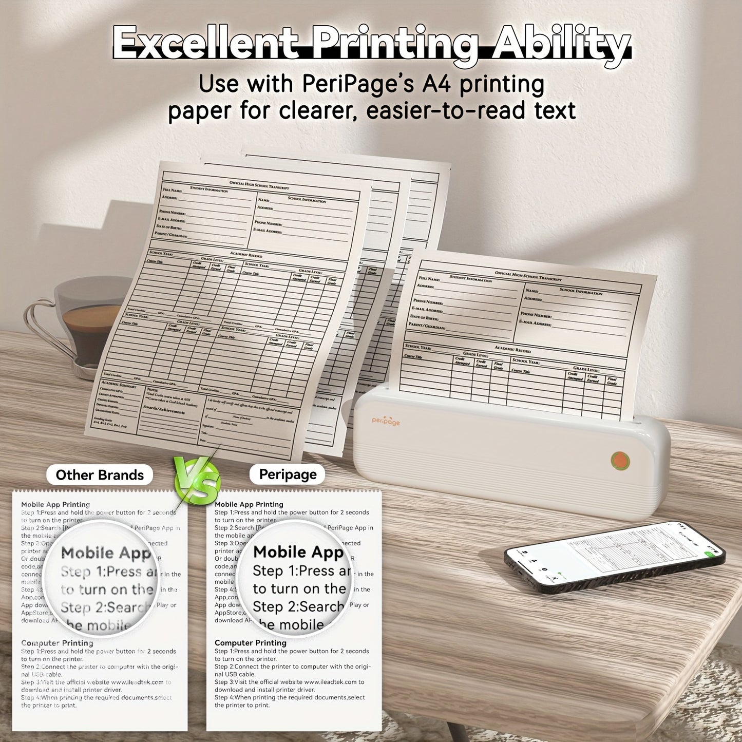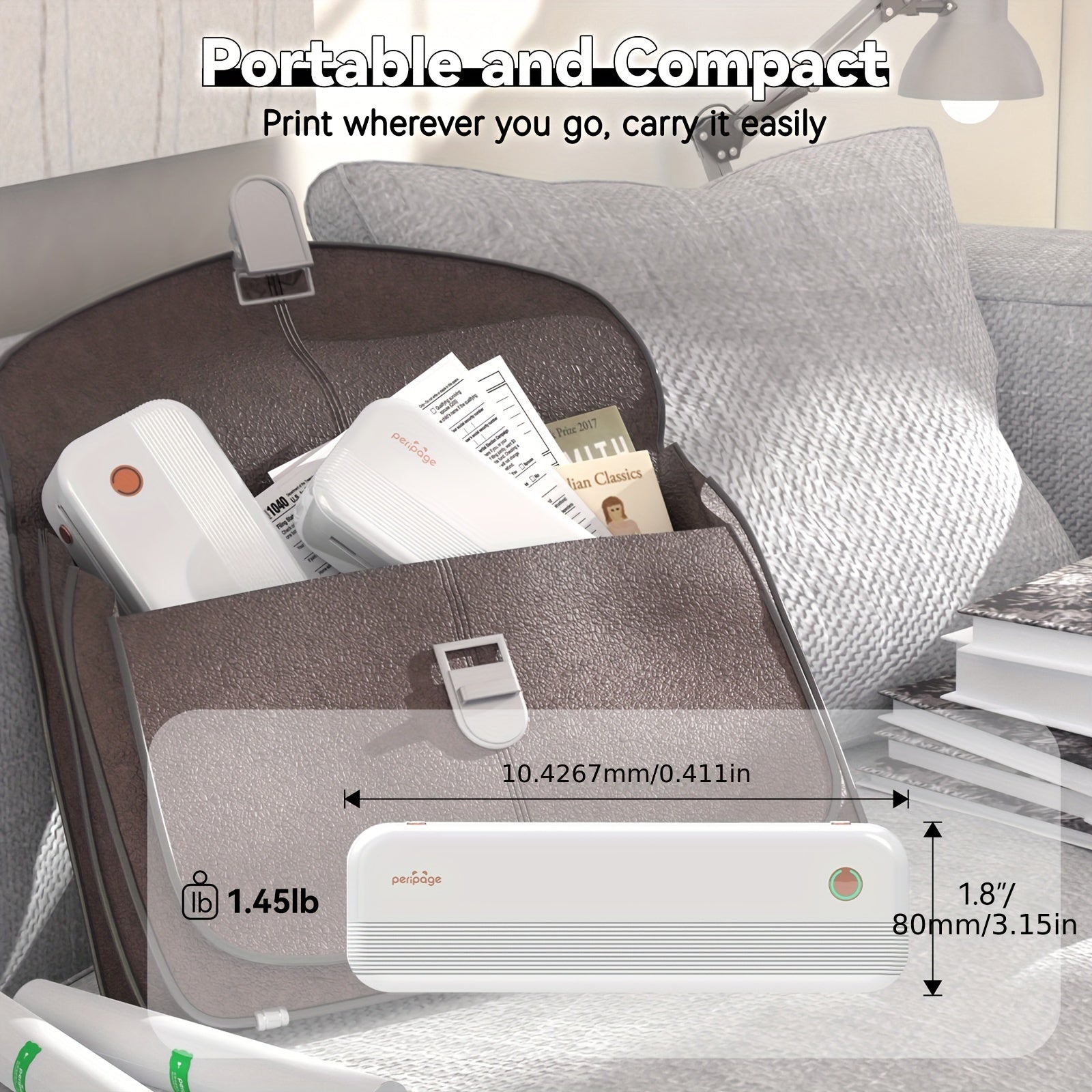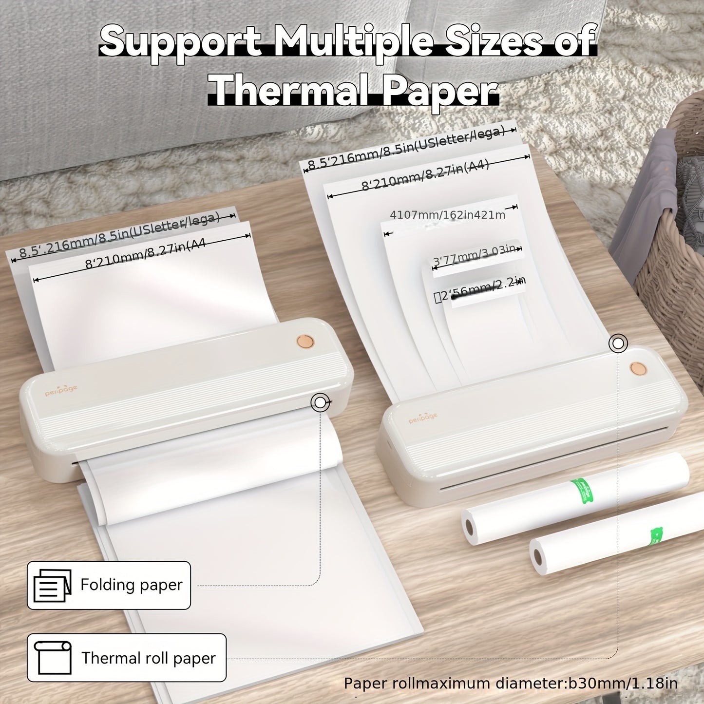 PeriPage P40 Mini Imprimante Thermique Portable Imprimante Supporte 8.26"x11.69" US Letter, Imprimante Mobile Sans Encre Sans Fil Compatible avec Android&iOS Imprime Docs Papier de Tatouage
