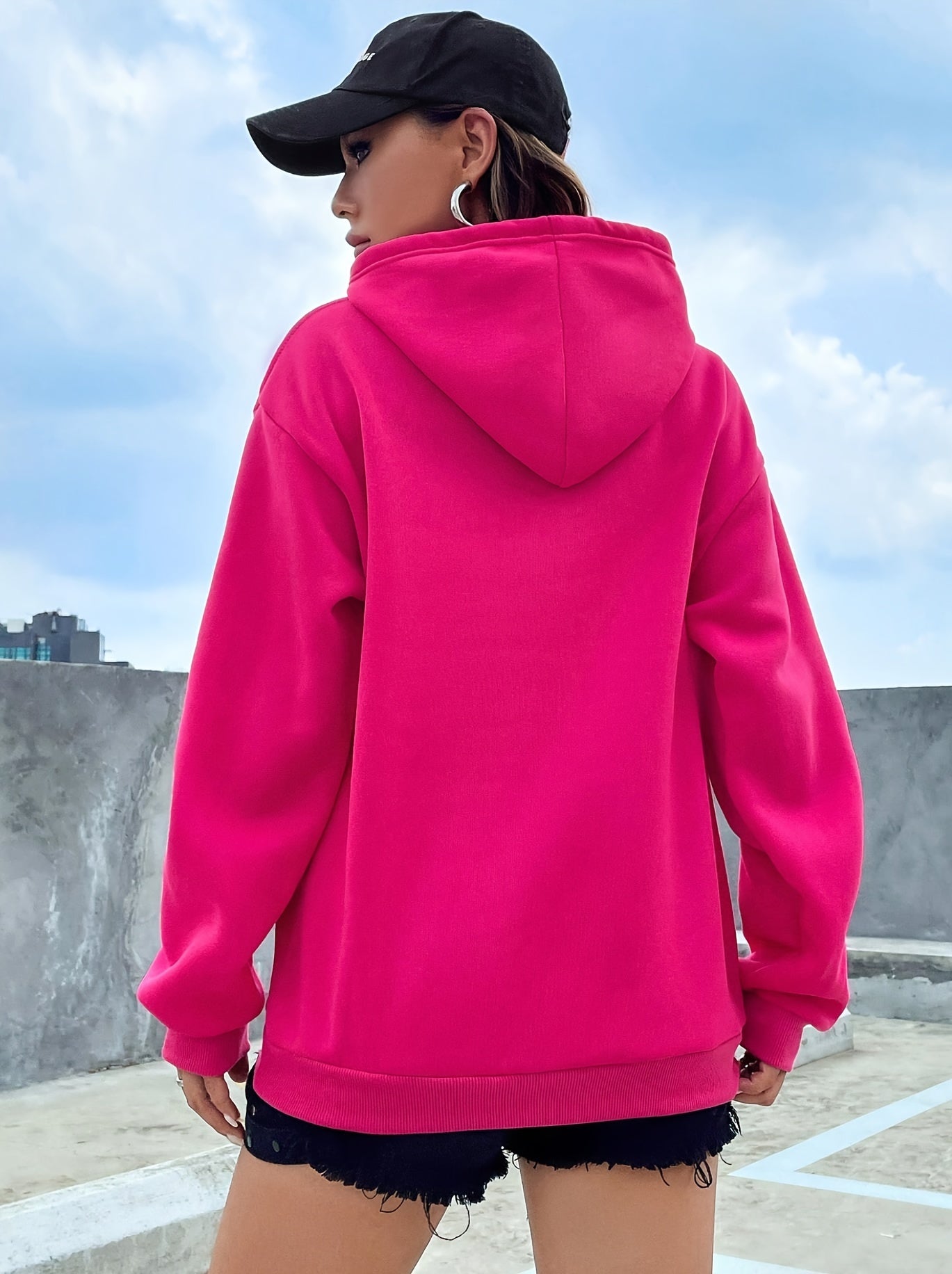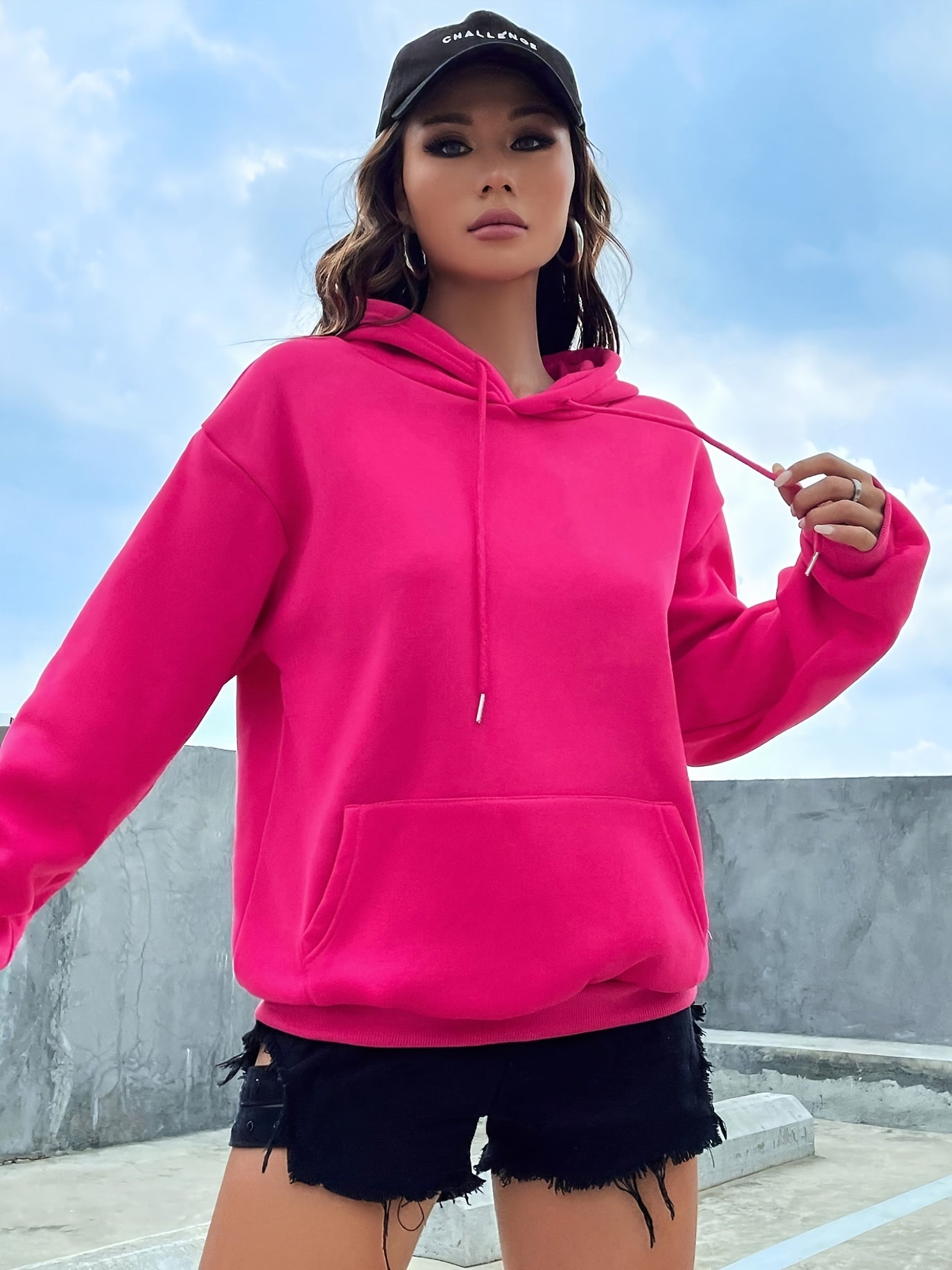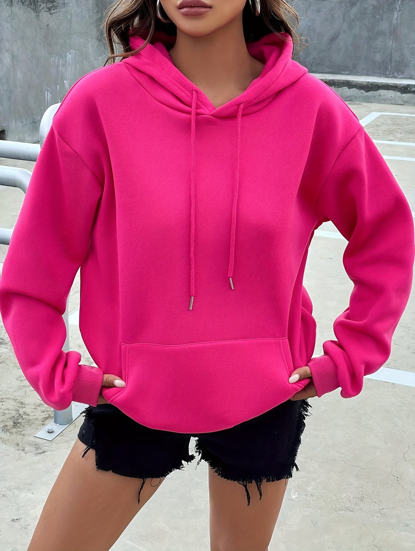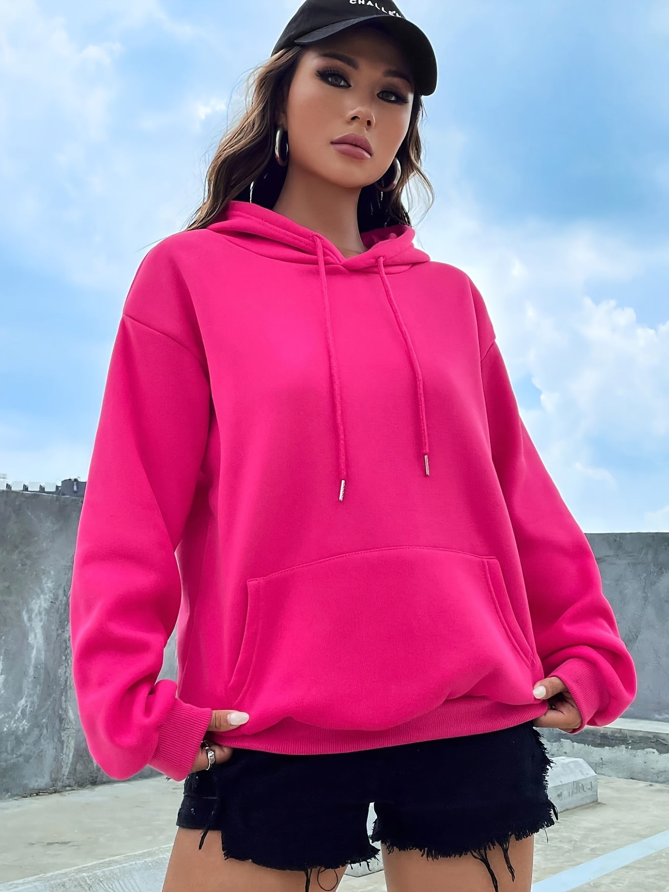 Pink Long Sleeve Fleece Hoodie - Women's Elegant Polyester & Elastane Blend Oversized Hoodie with Drawstring - Machine Washable, Stylish Casual Streetwear for Fall/Winter