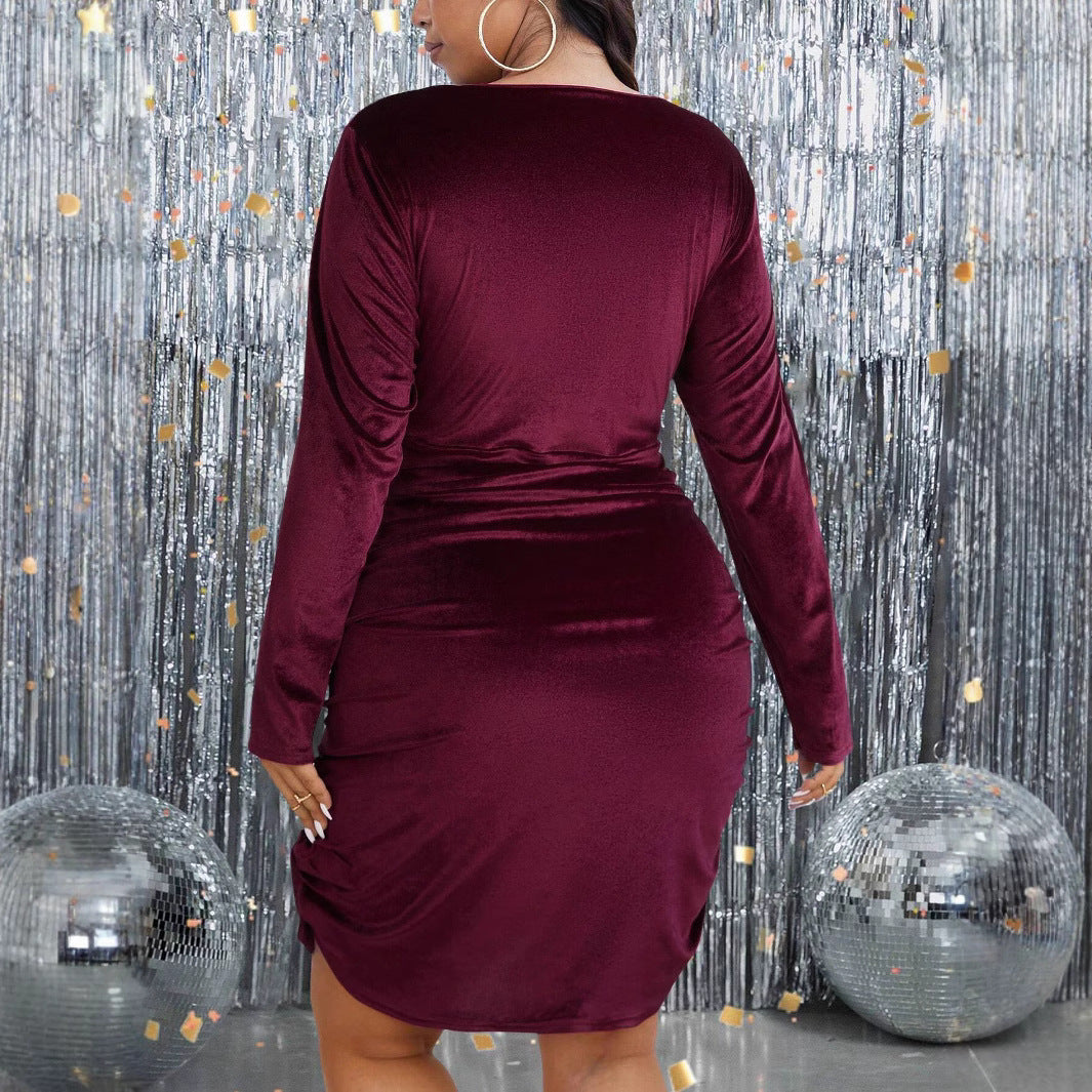Plus Size Autumn Winter Women Clothing High Sense Socialite Wine Red Dress Cocktail