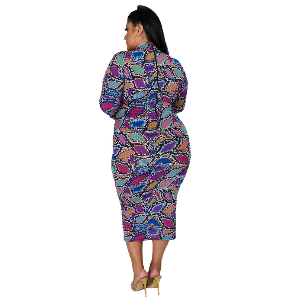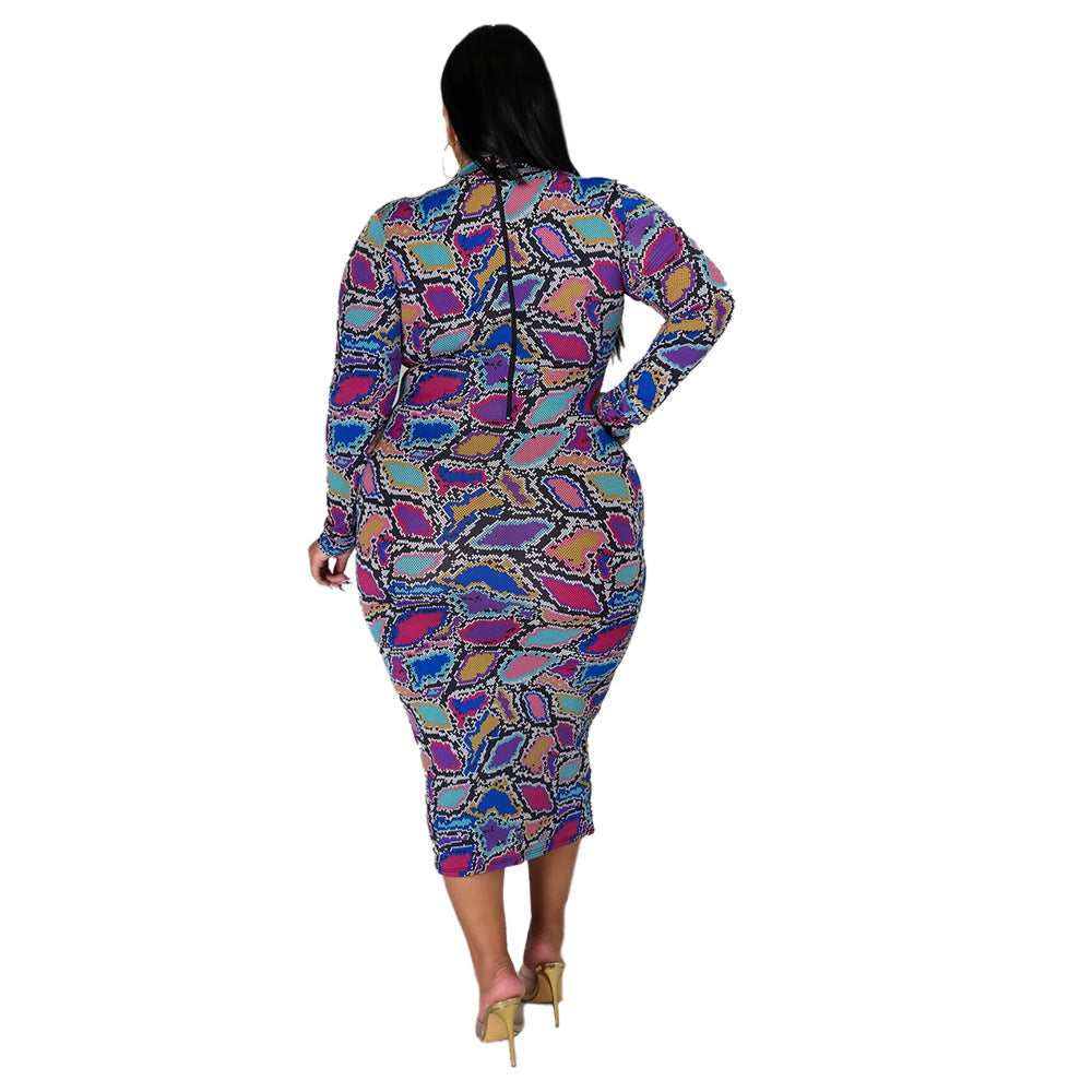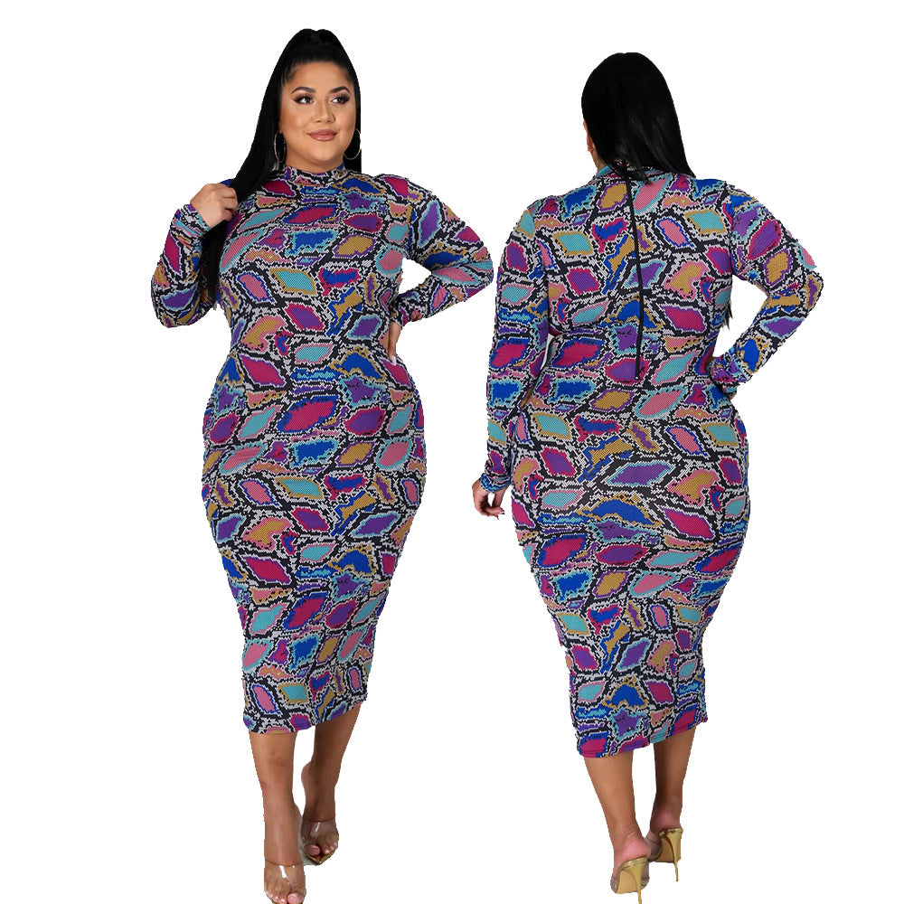 Plus Size Fall Winter Long Sleeve Turtleneck Irregular Asymmetric Plaid Printed Slim-Fit Sexy Women Dress