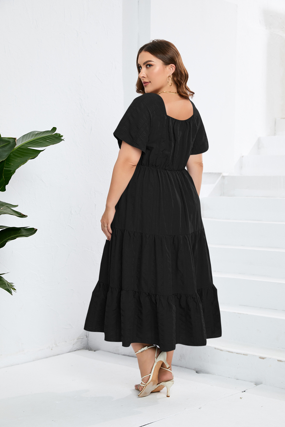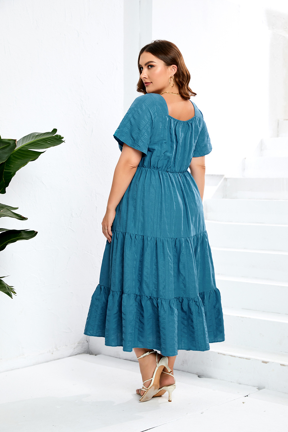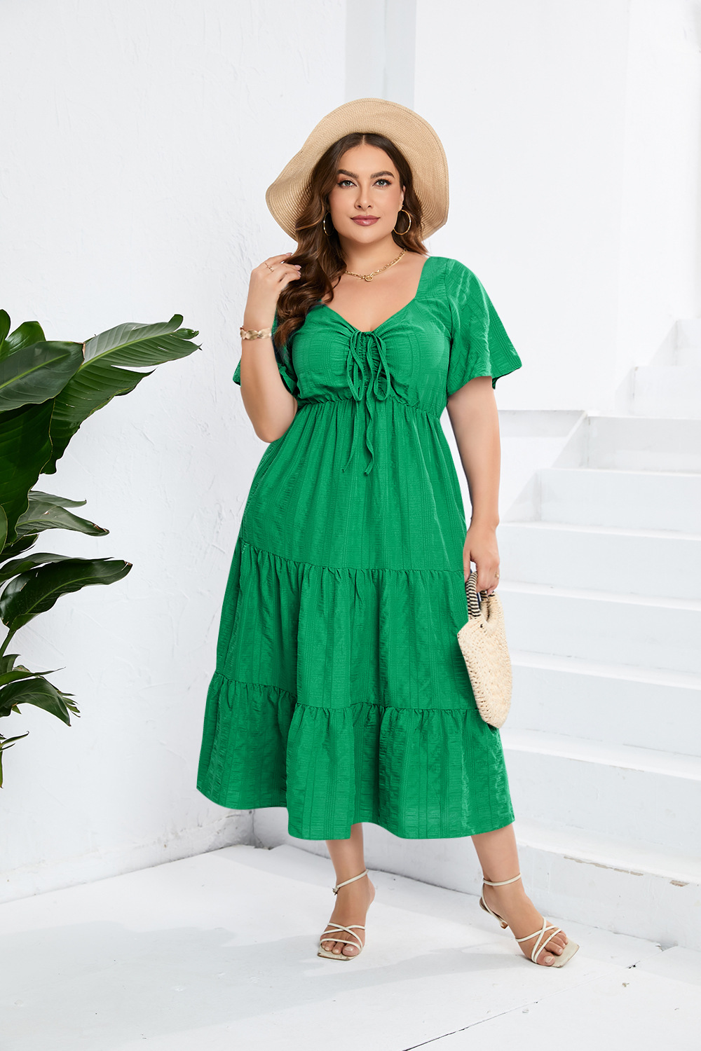 Plus Size V Neck High Waist Dress Long Short Sleeve Dress
