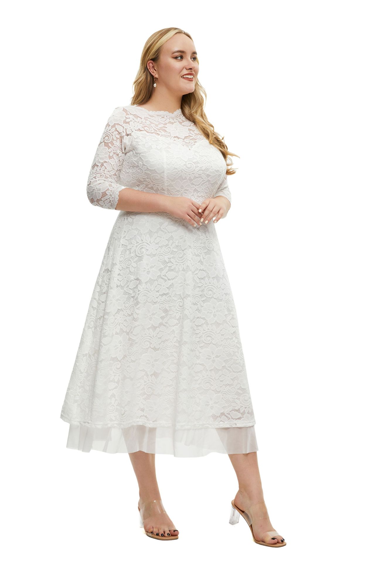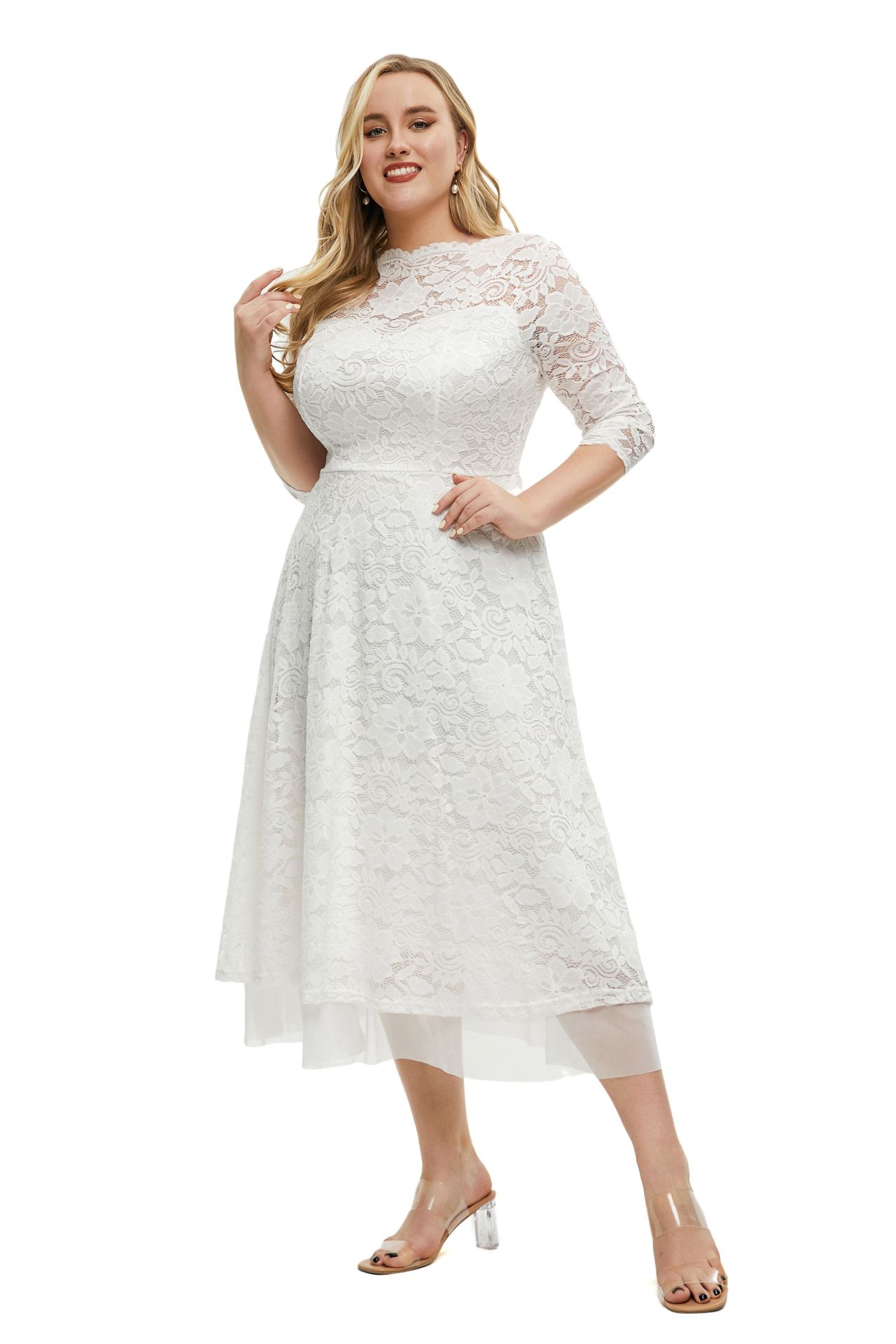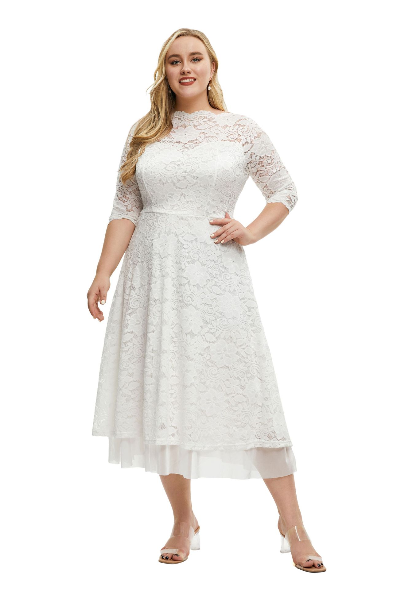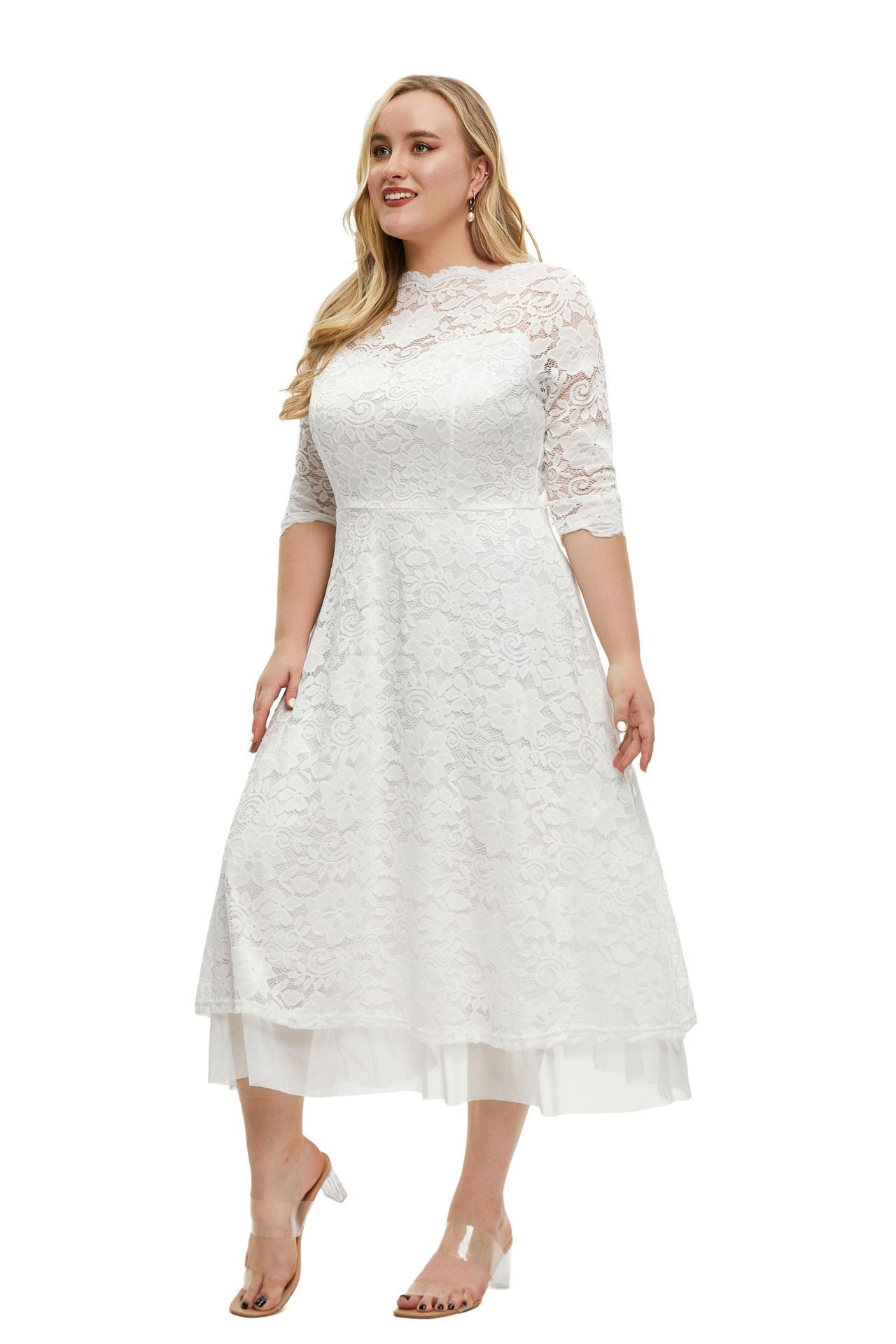 Plus Size Women Clothes Lace Evening Dress High Quality Solid Color Dress