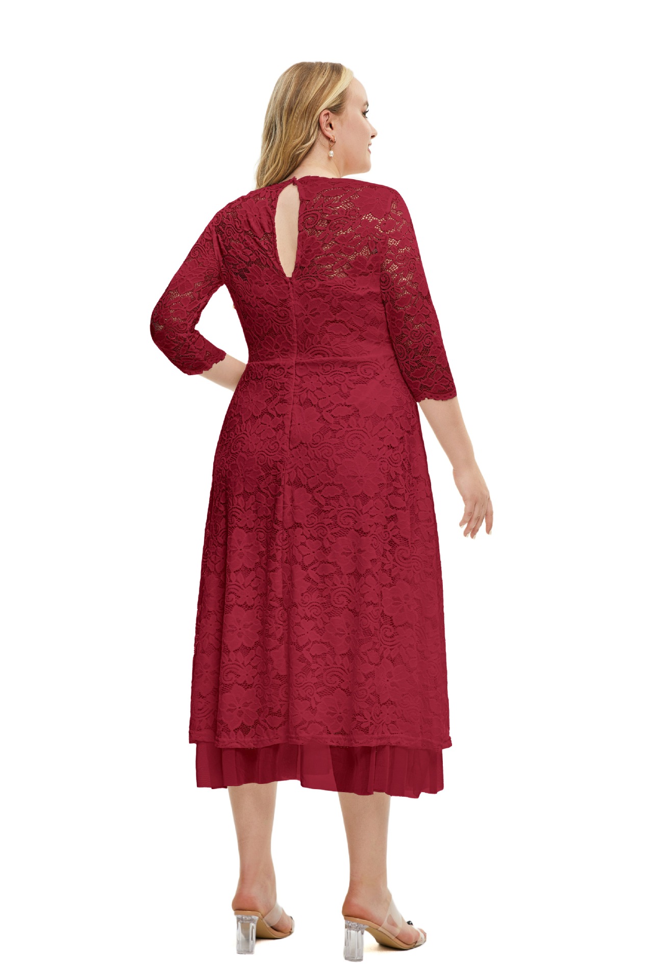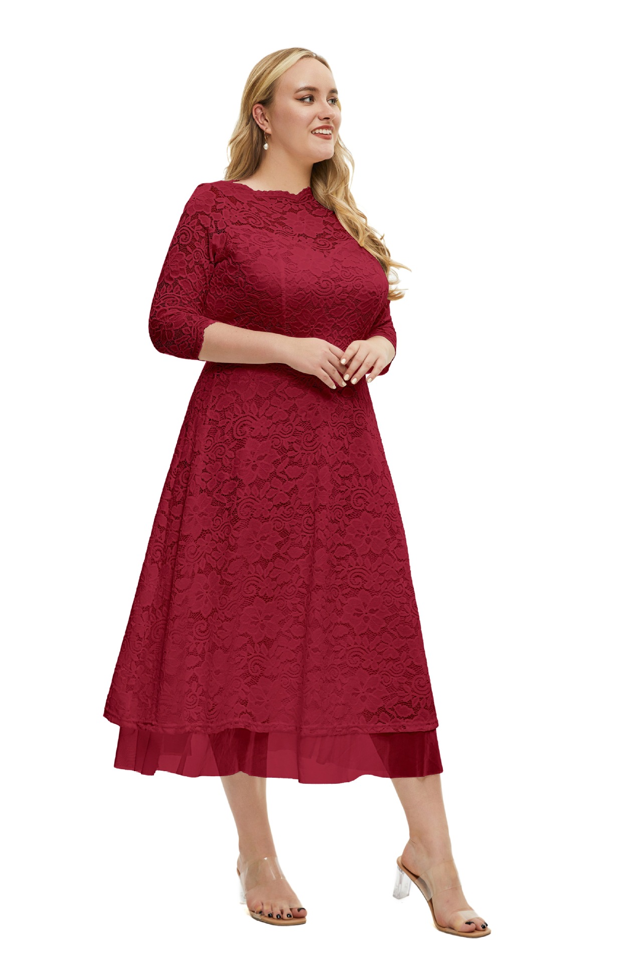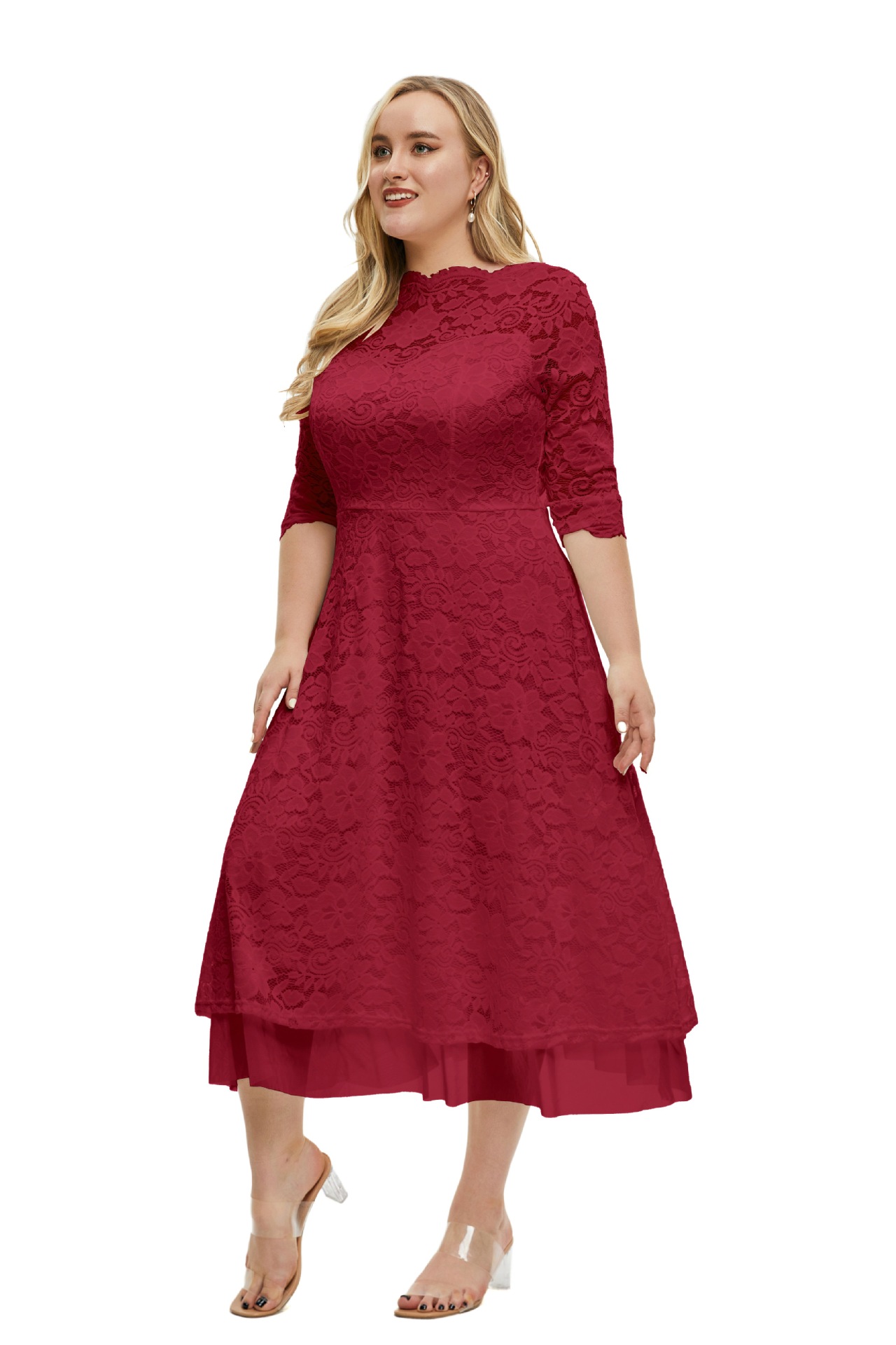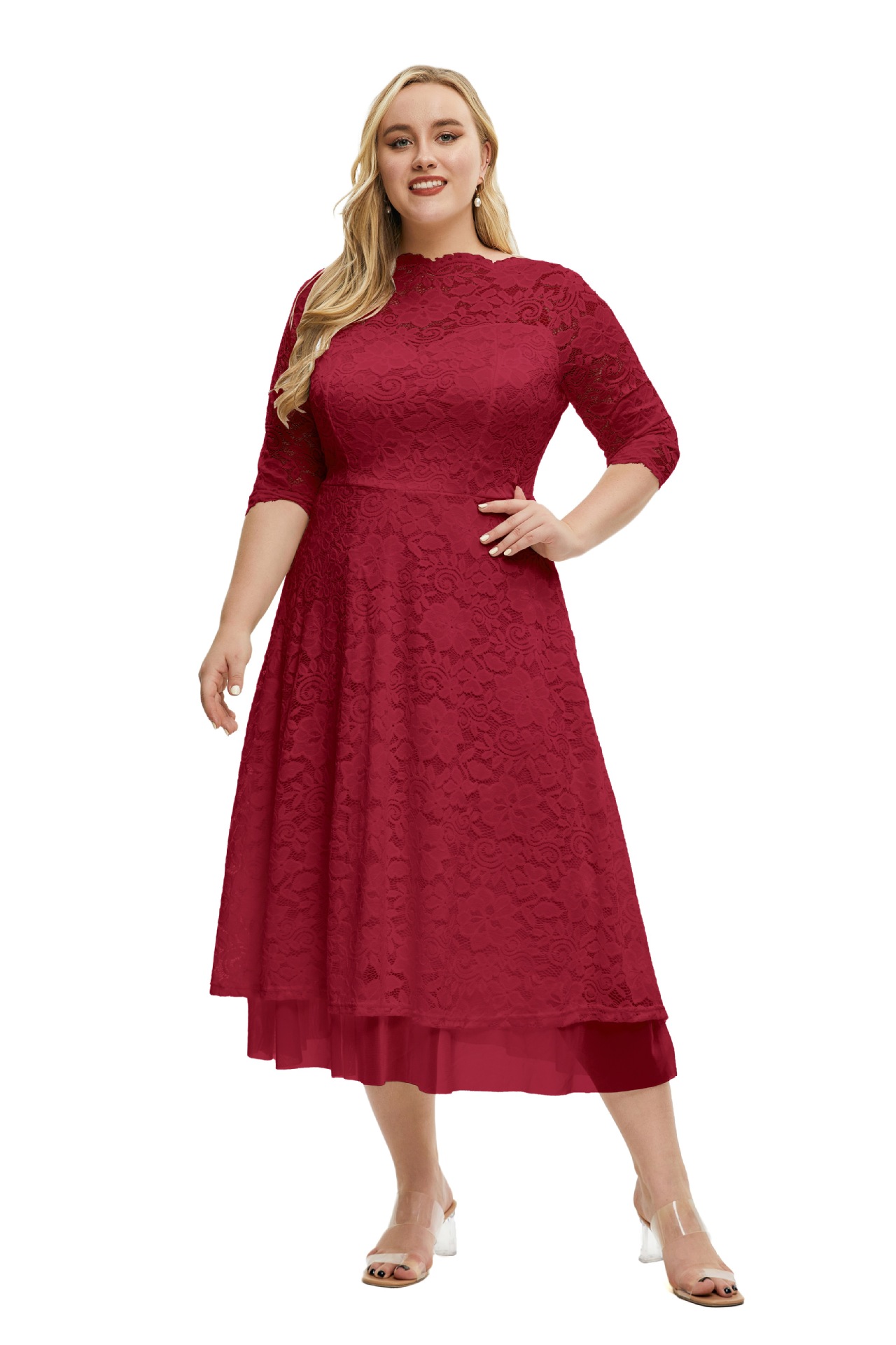 Plus Size Women Clothes Lace Evening Dress High Quality Solid Color Dress