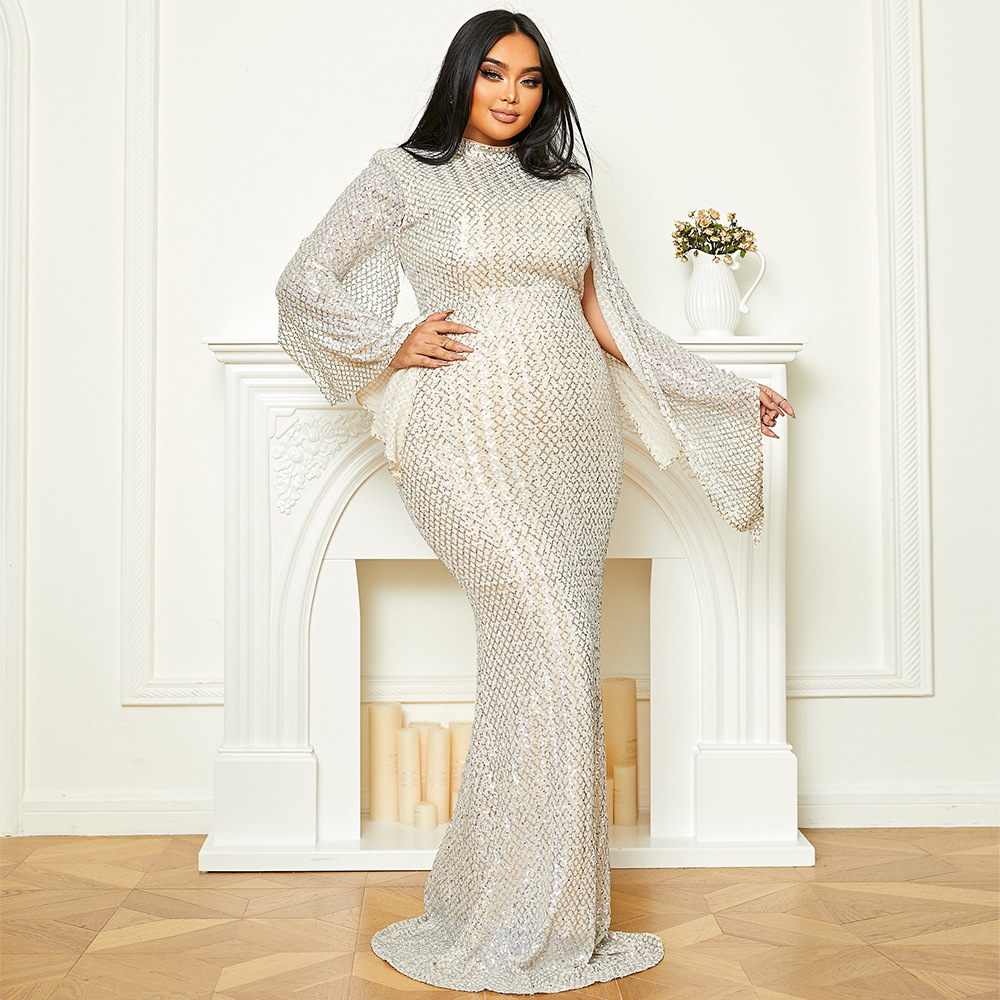 Plus Size Women Long Wedding Party Cocktail Light Luxury Sequined Evening Dress