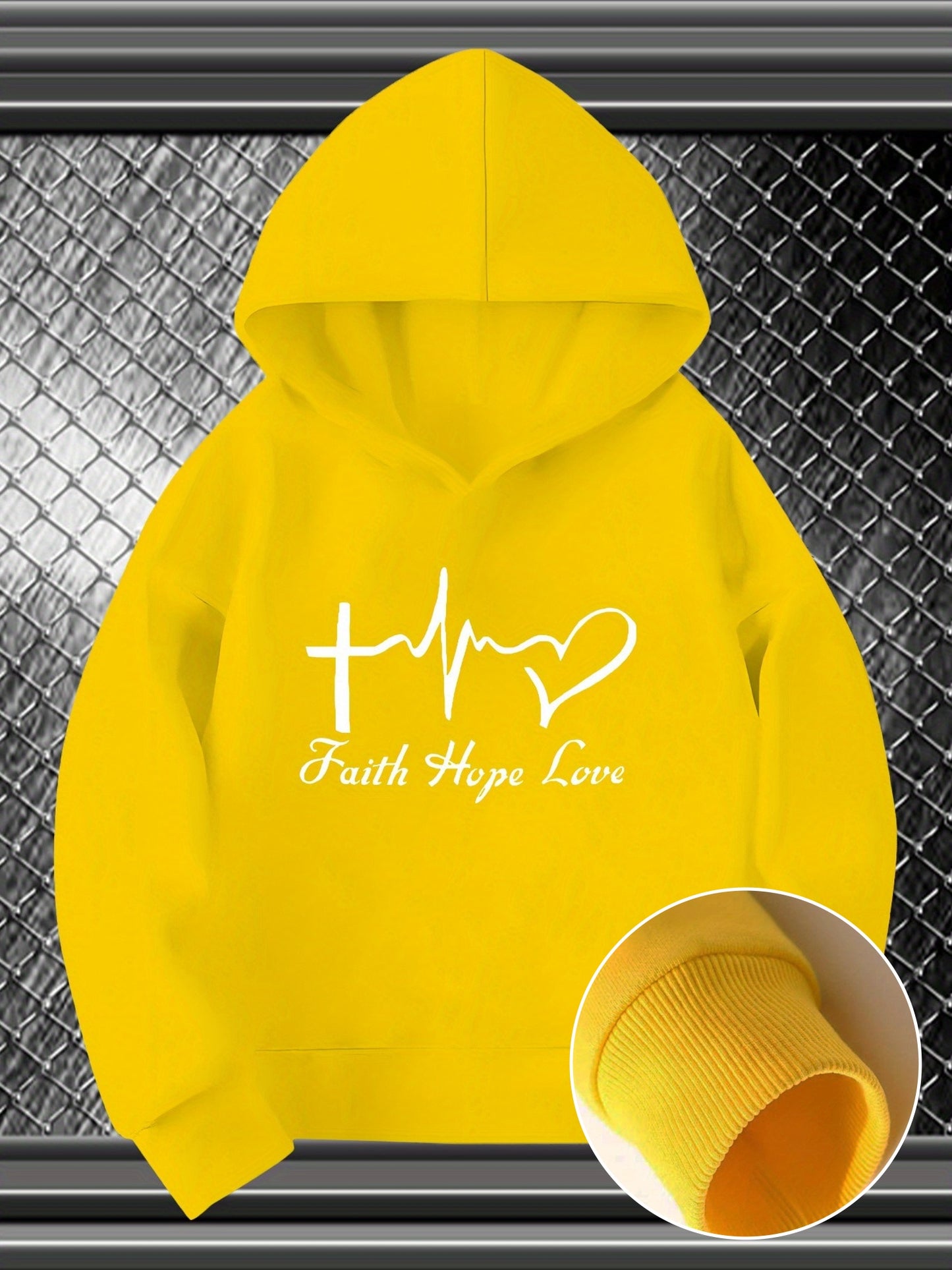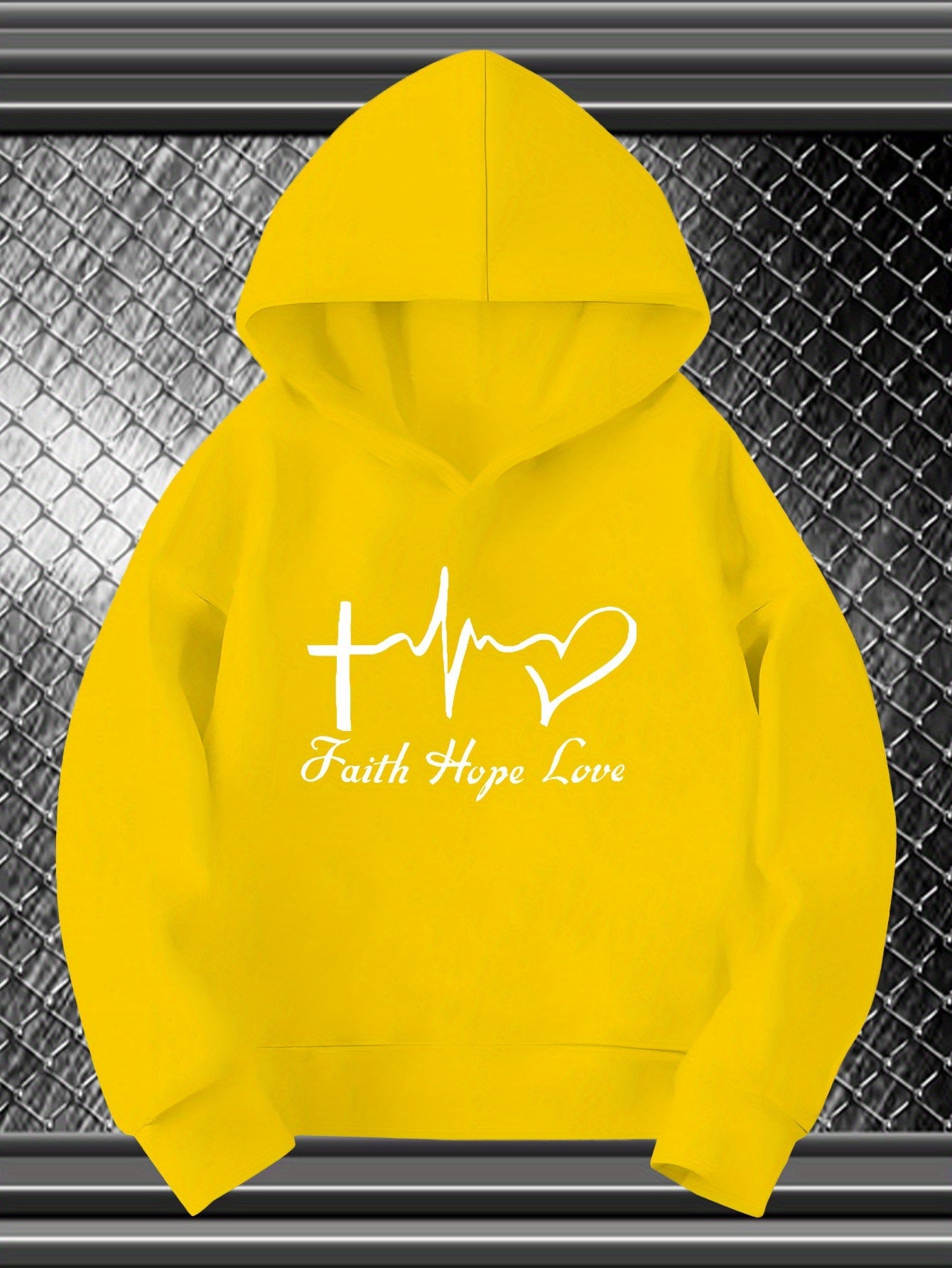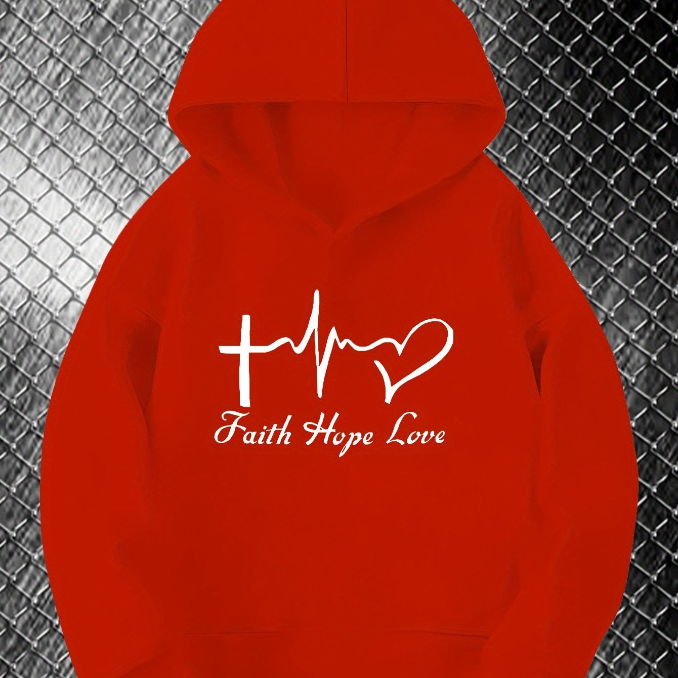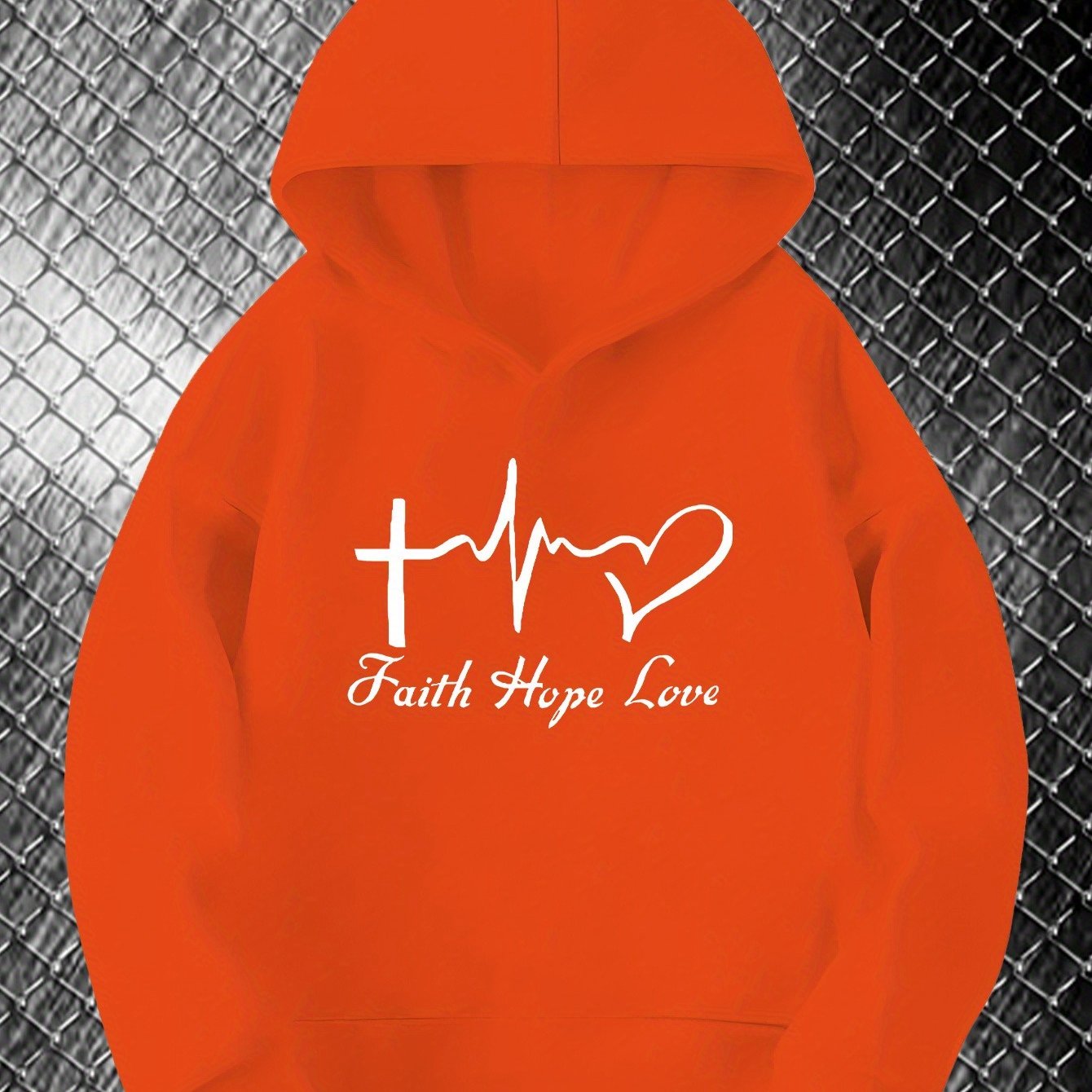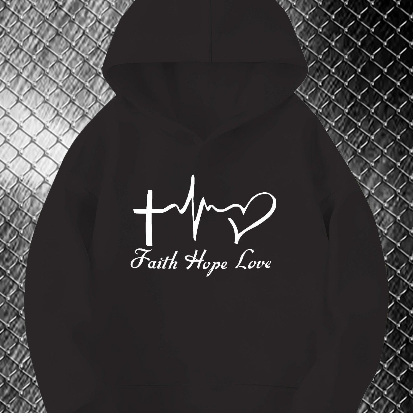 Polyester Knit Casual Fall/Winter Faith Hope Graphic Hoodie - Minimalist Alphabet Design Hooded Sweatshirt for Men and Women
