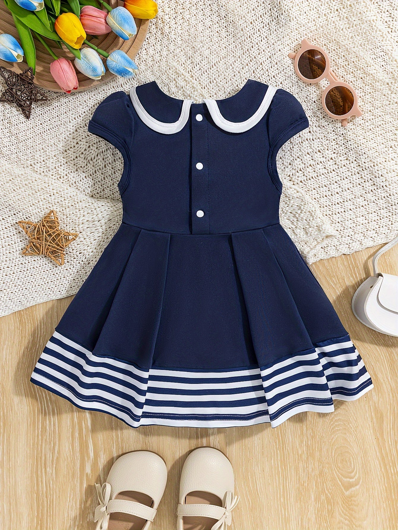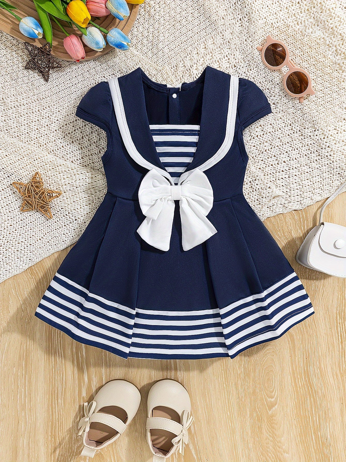 Preppy Bowknot Pleated Dress for Girls, Baby Summer/Spring Outfit, Infant Toddler Clothing Gift
