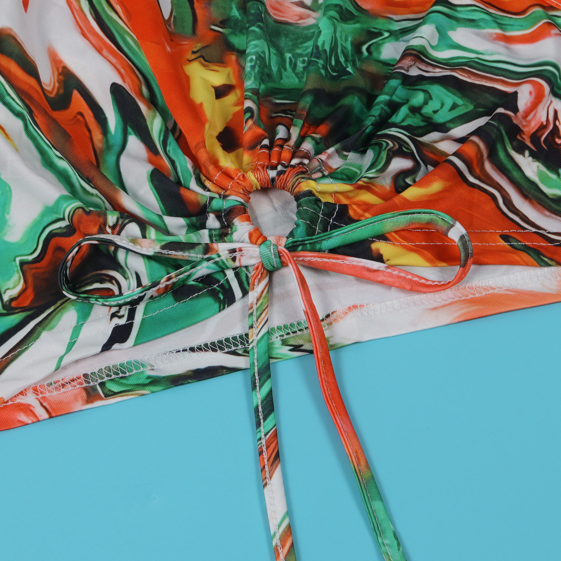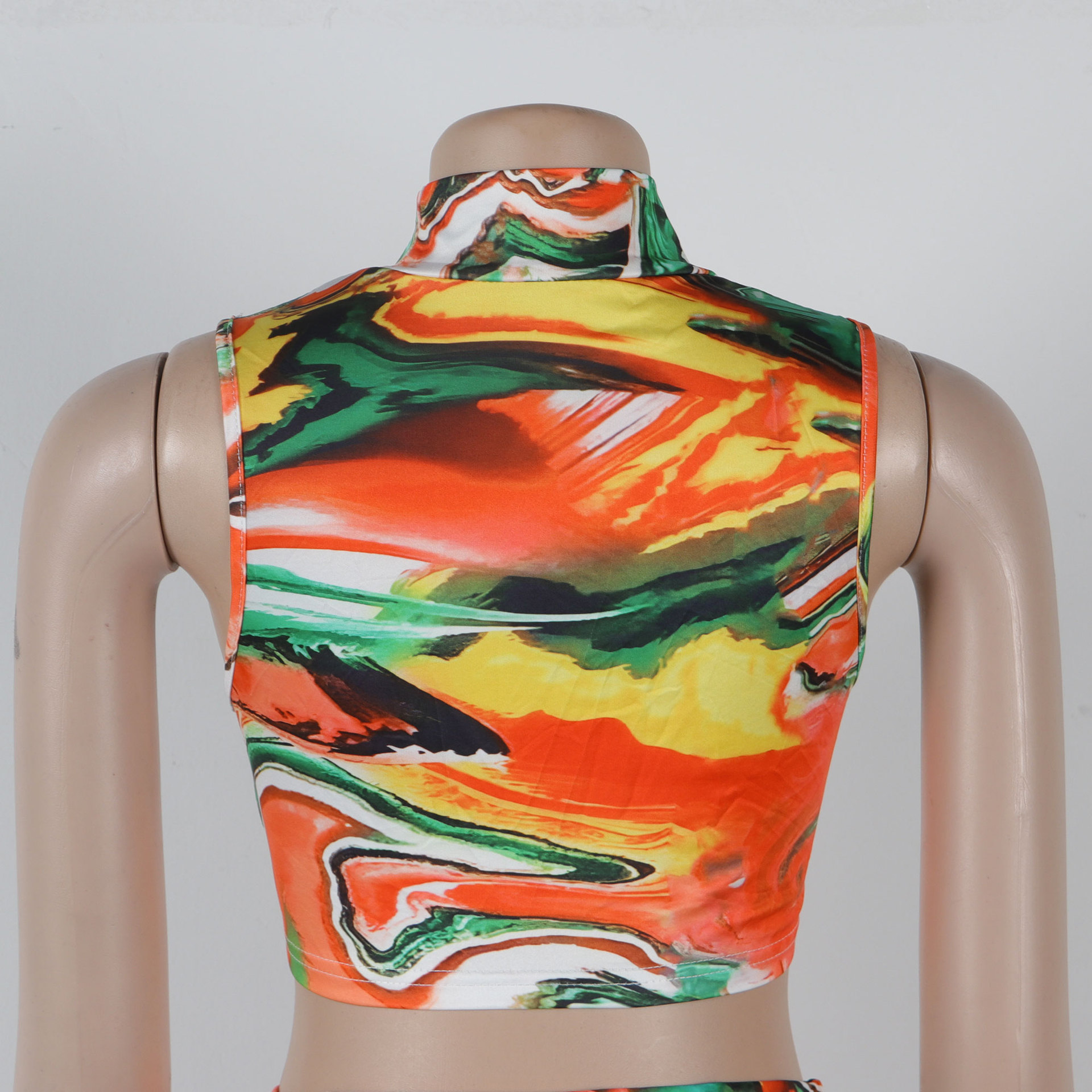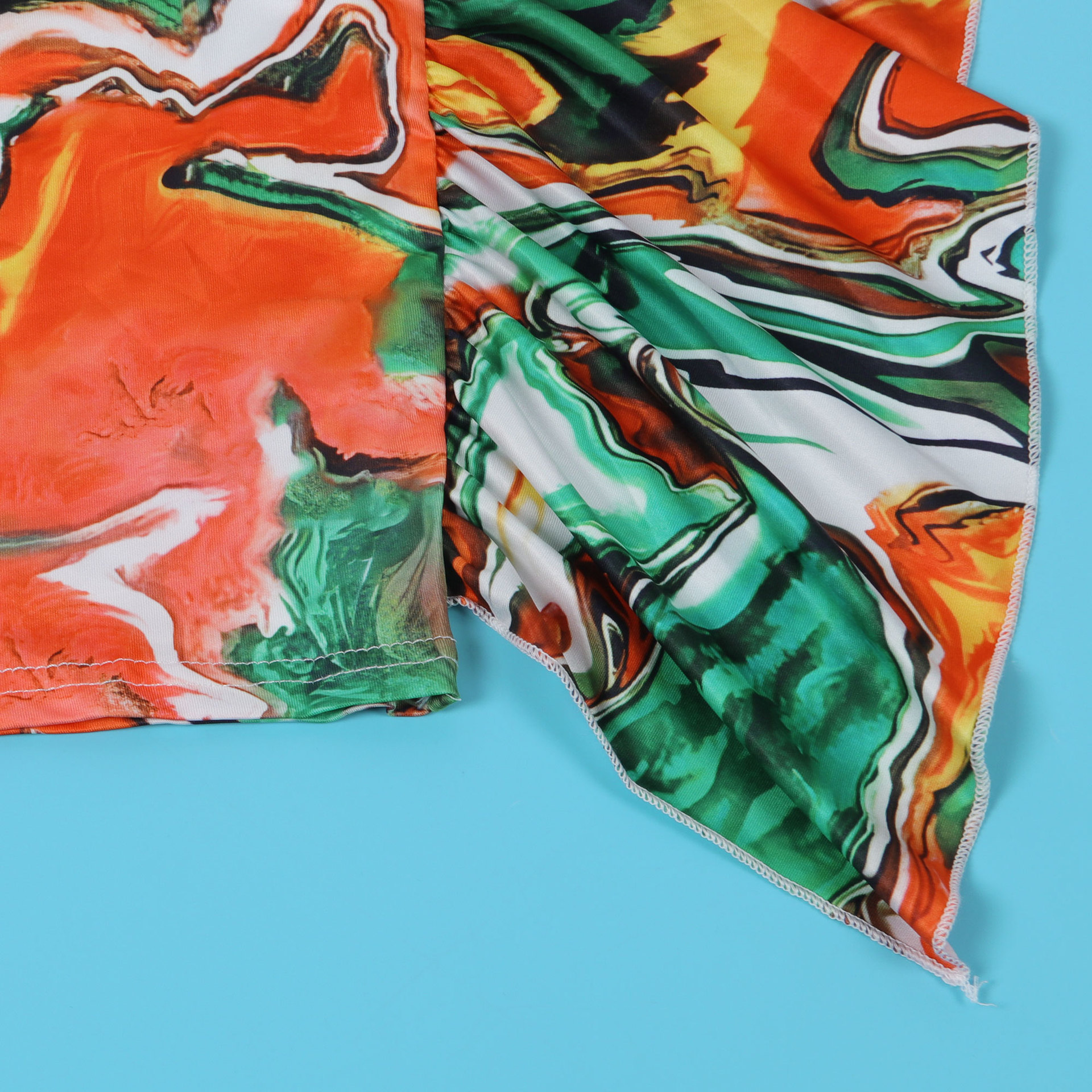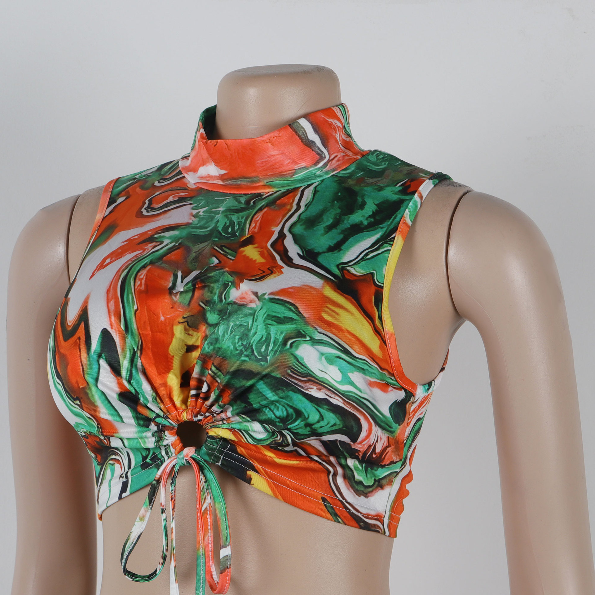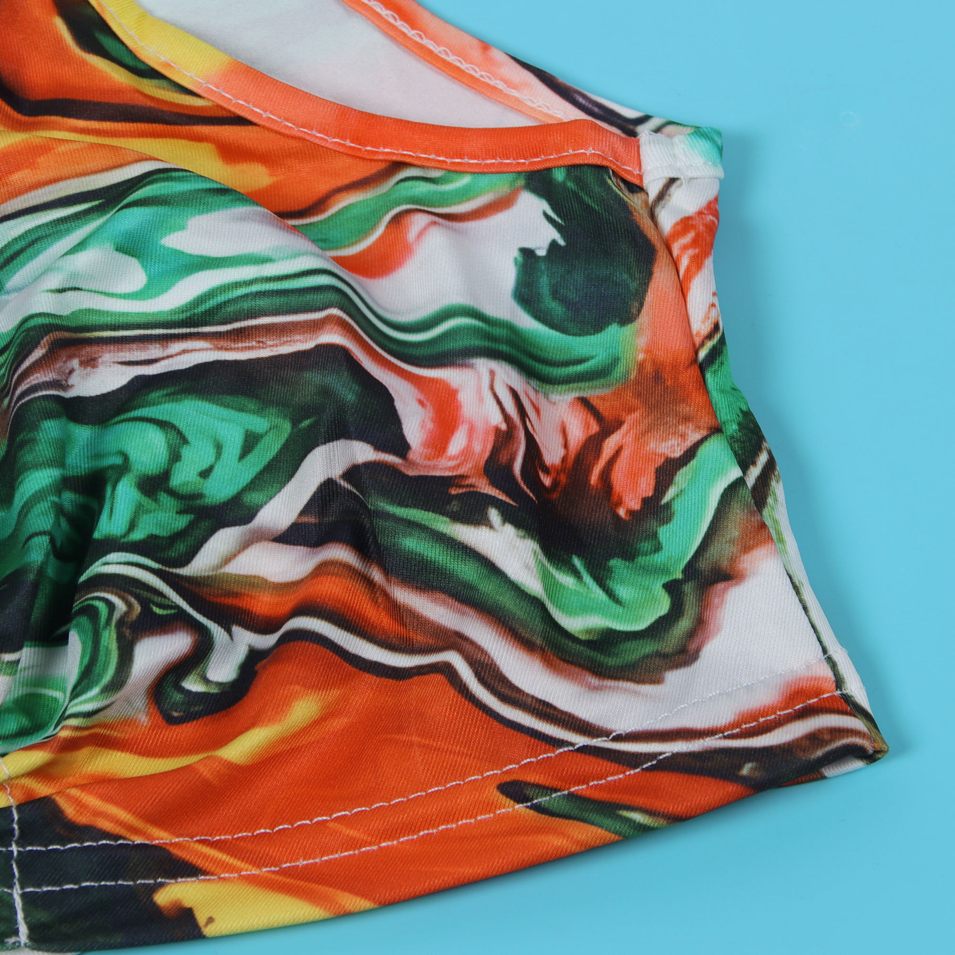 Printed Sleeveless Pullover Lace Midi Dress Two Piece Set