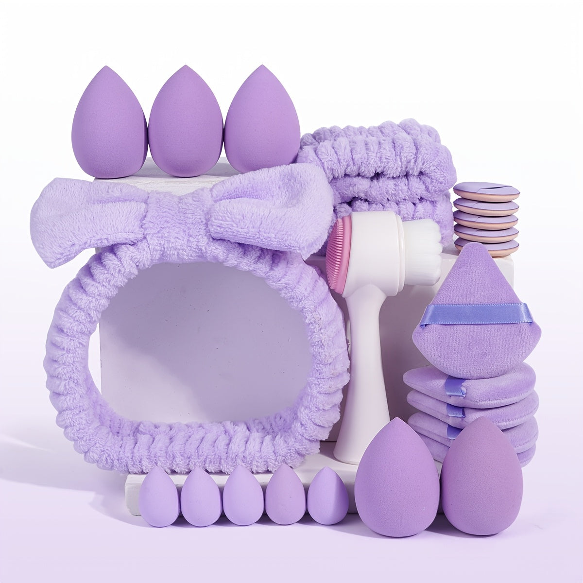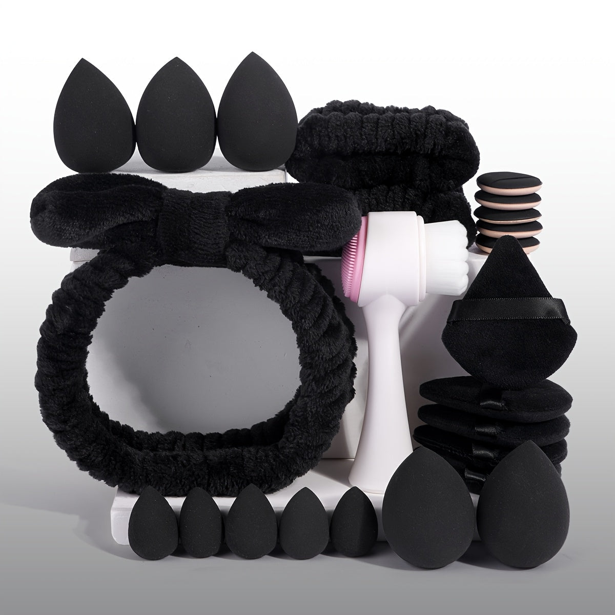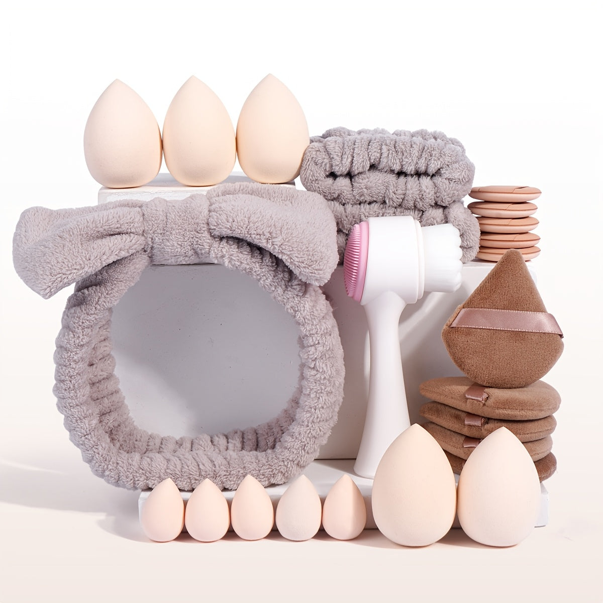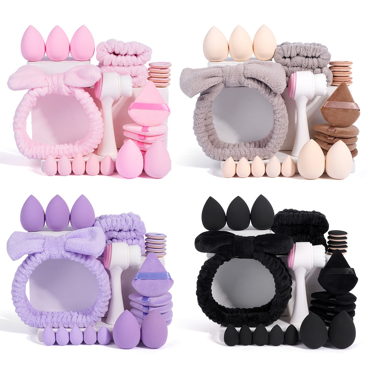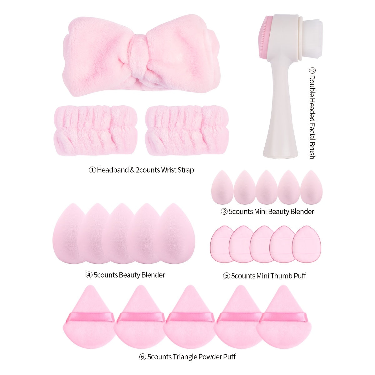 [Professional Makeup Tools] MAANGE 24pcs Professional Facial Cleaning Makeup Tools Kit, 20pcs Sponge Puff Set, Headband, Wrist Strap, Facial Cleansing Brush, Travel Easy Carrying Set, Christmas Gift Set, New Year Gift Set, Valentine's Day Gift