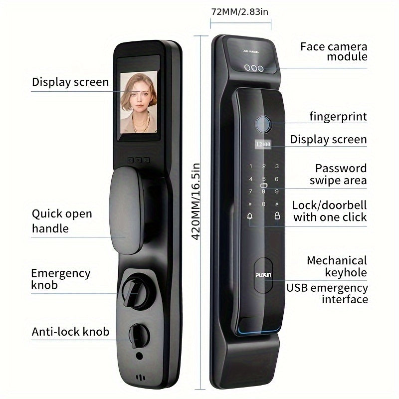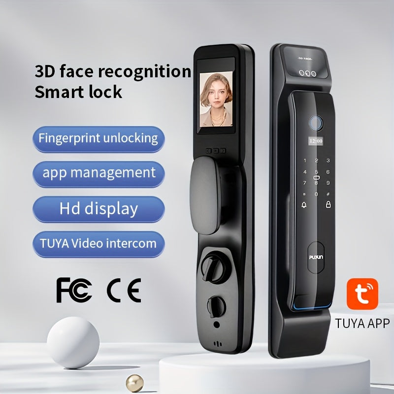 Puxin DF65 3D Face & Fingerprint Smart Lock - Wi-Fi Enabled, Battery/USB Powered, HD Display, Aluminum Alloy Door Lock for Home Security