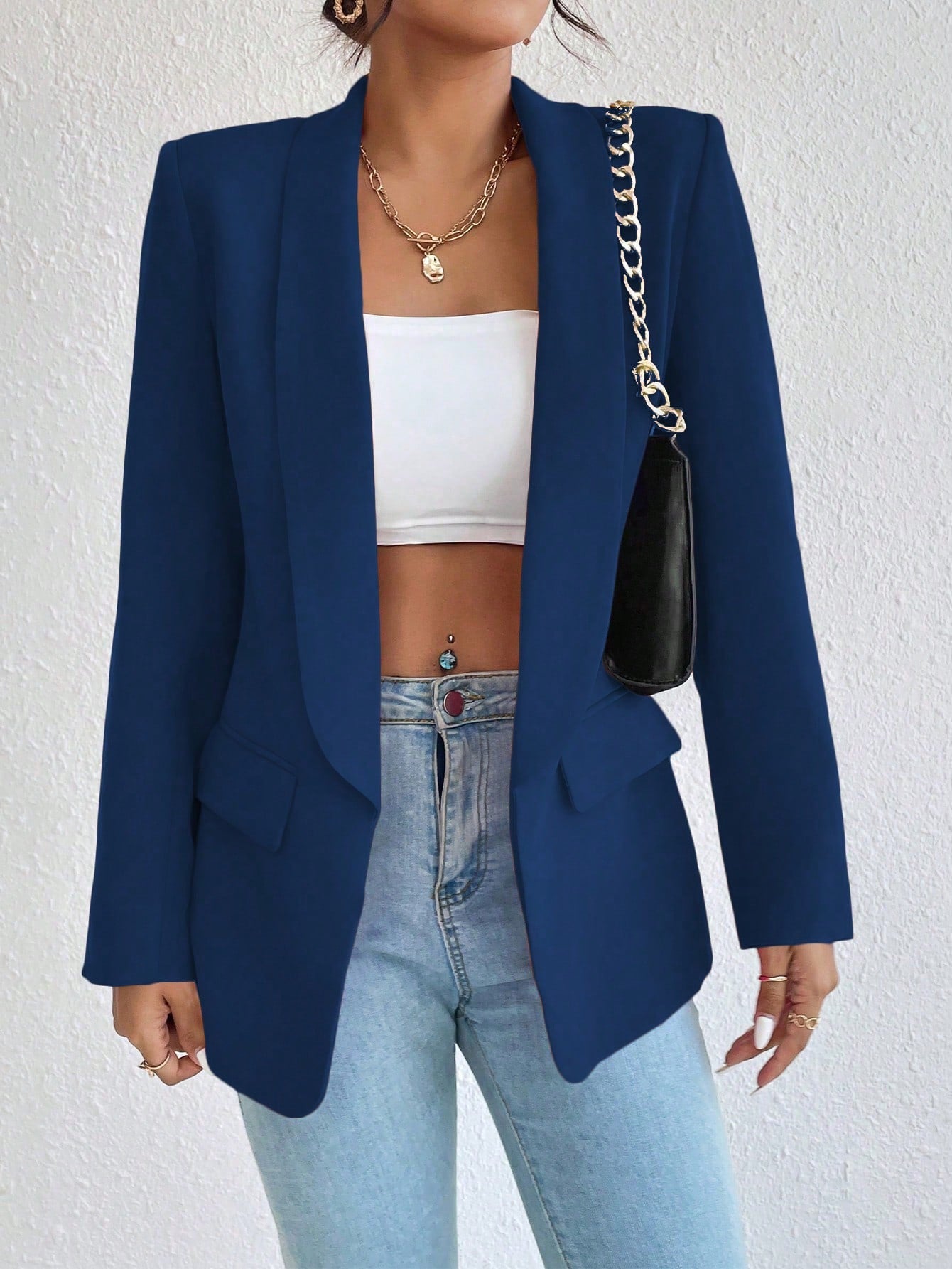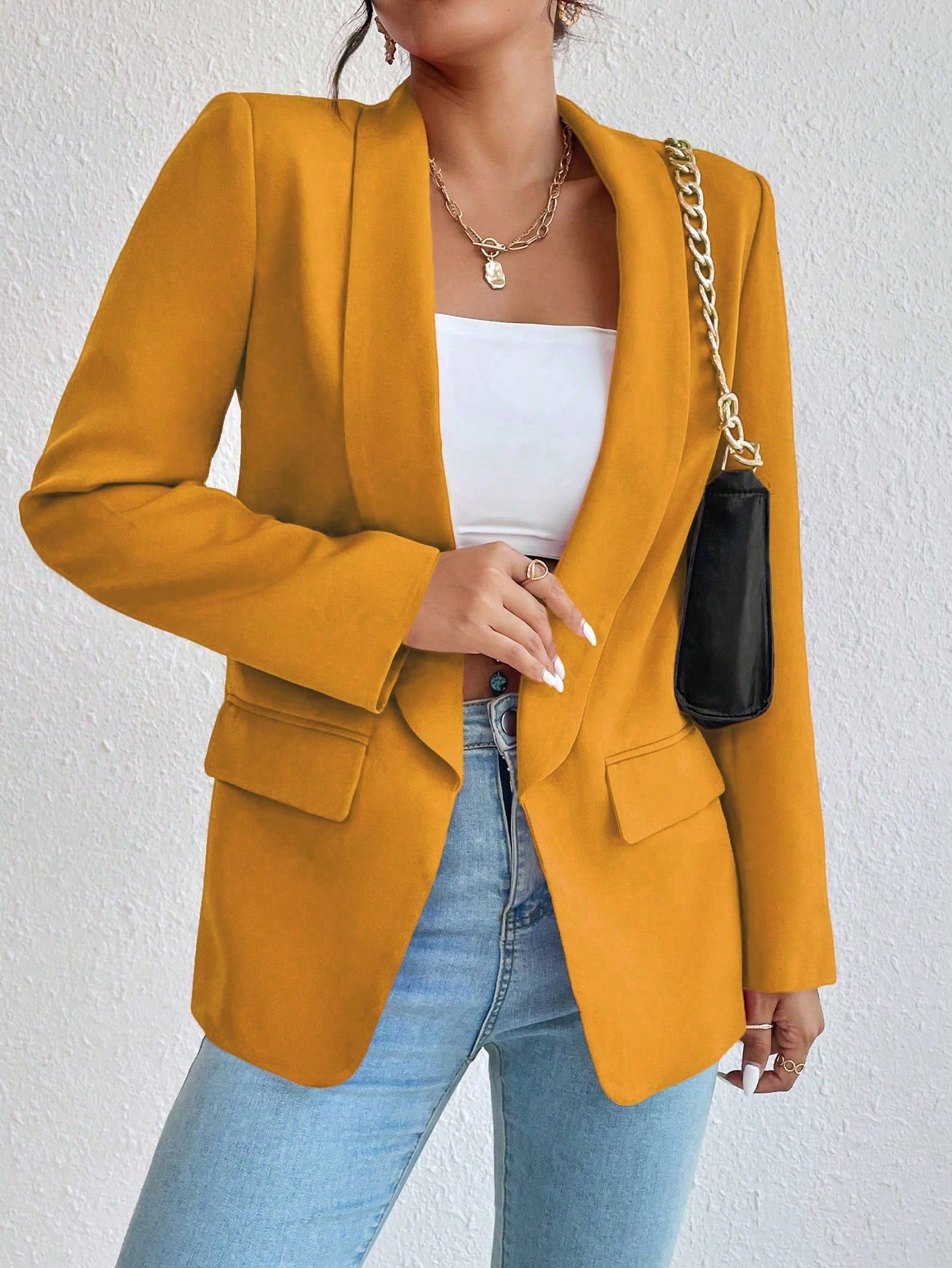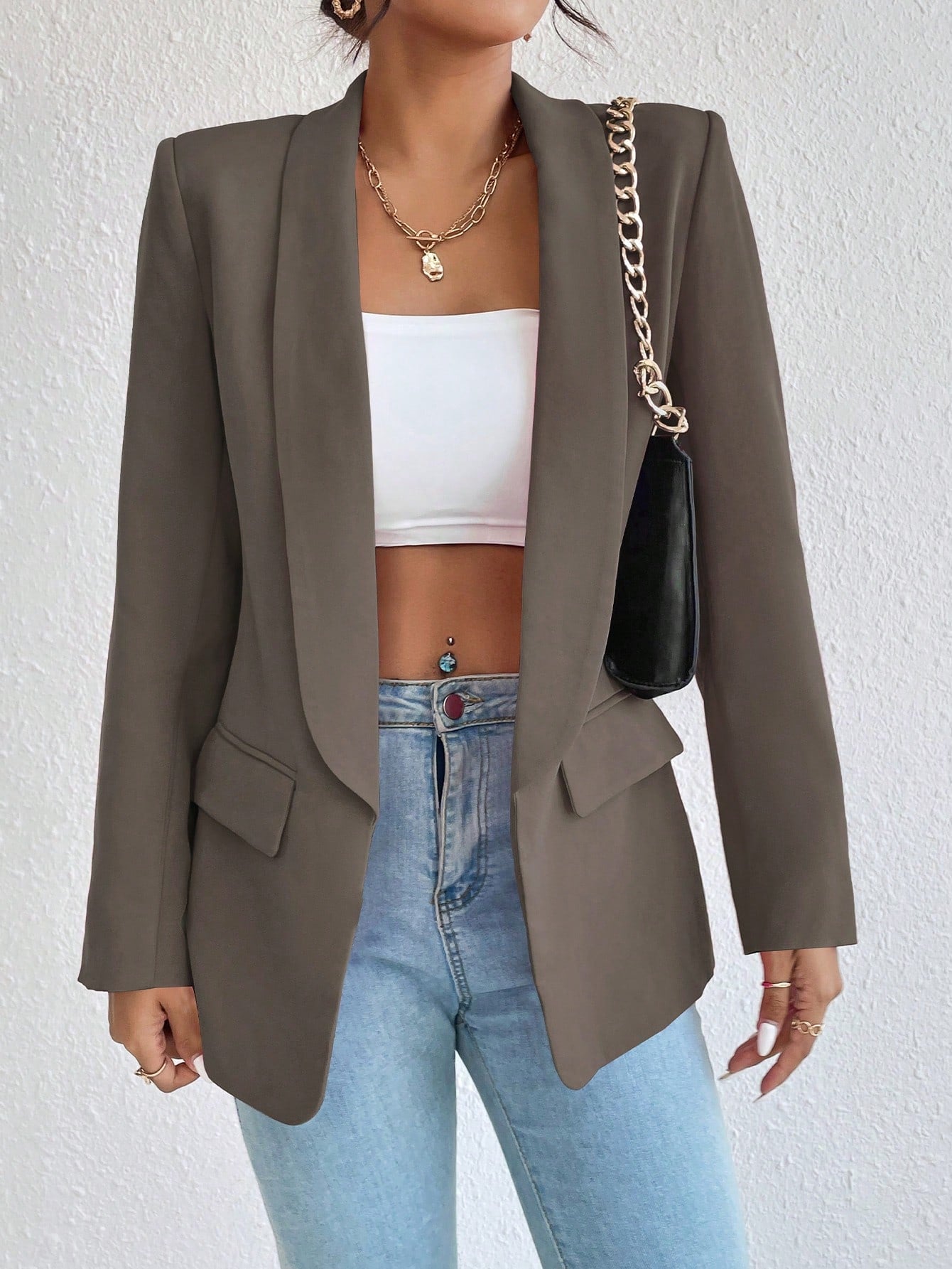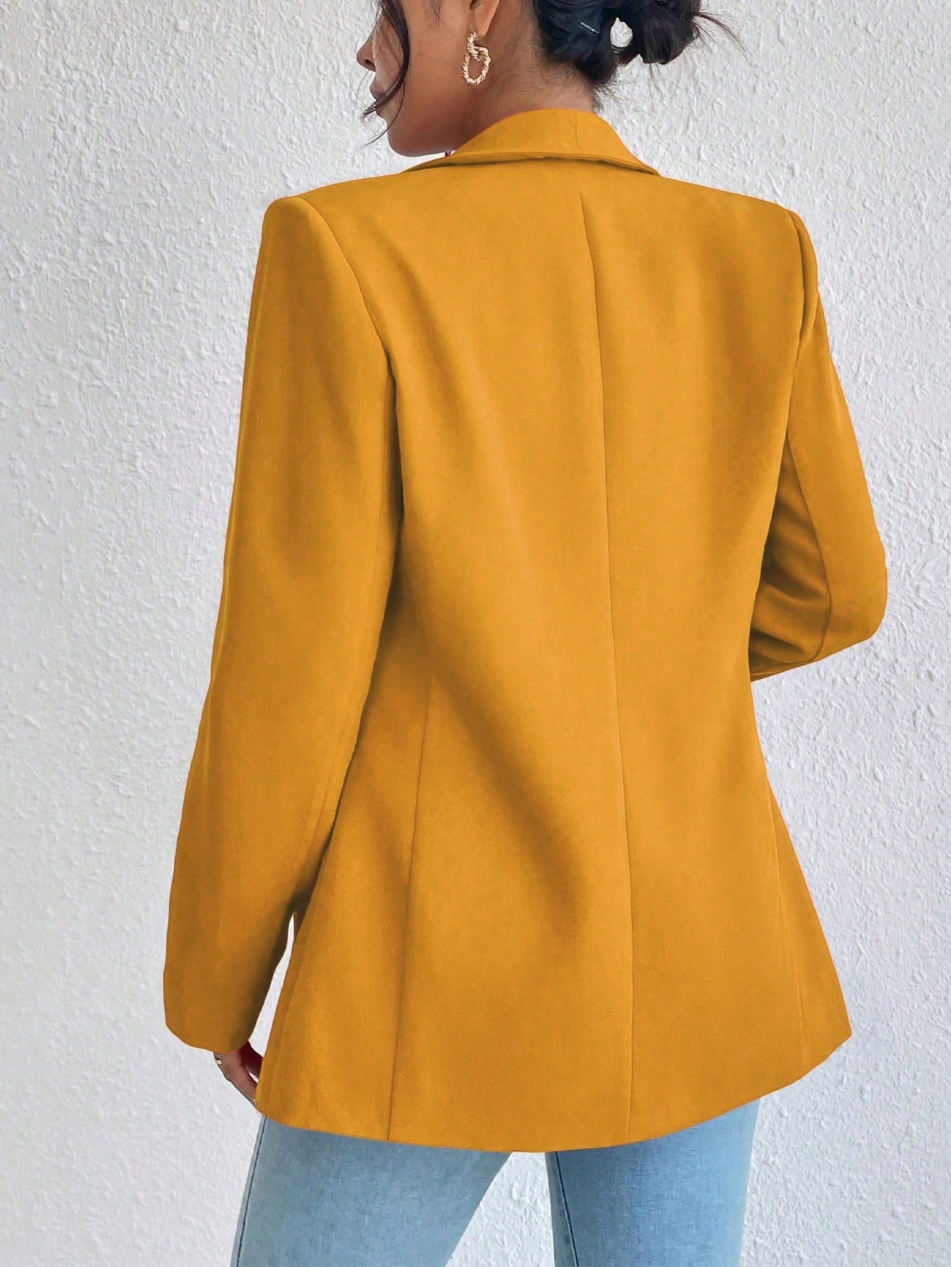 Raffinéa 1pc Women Simple Style Crew Neck Long Sleeve Mock Pocket Blazer Jacket