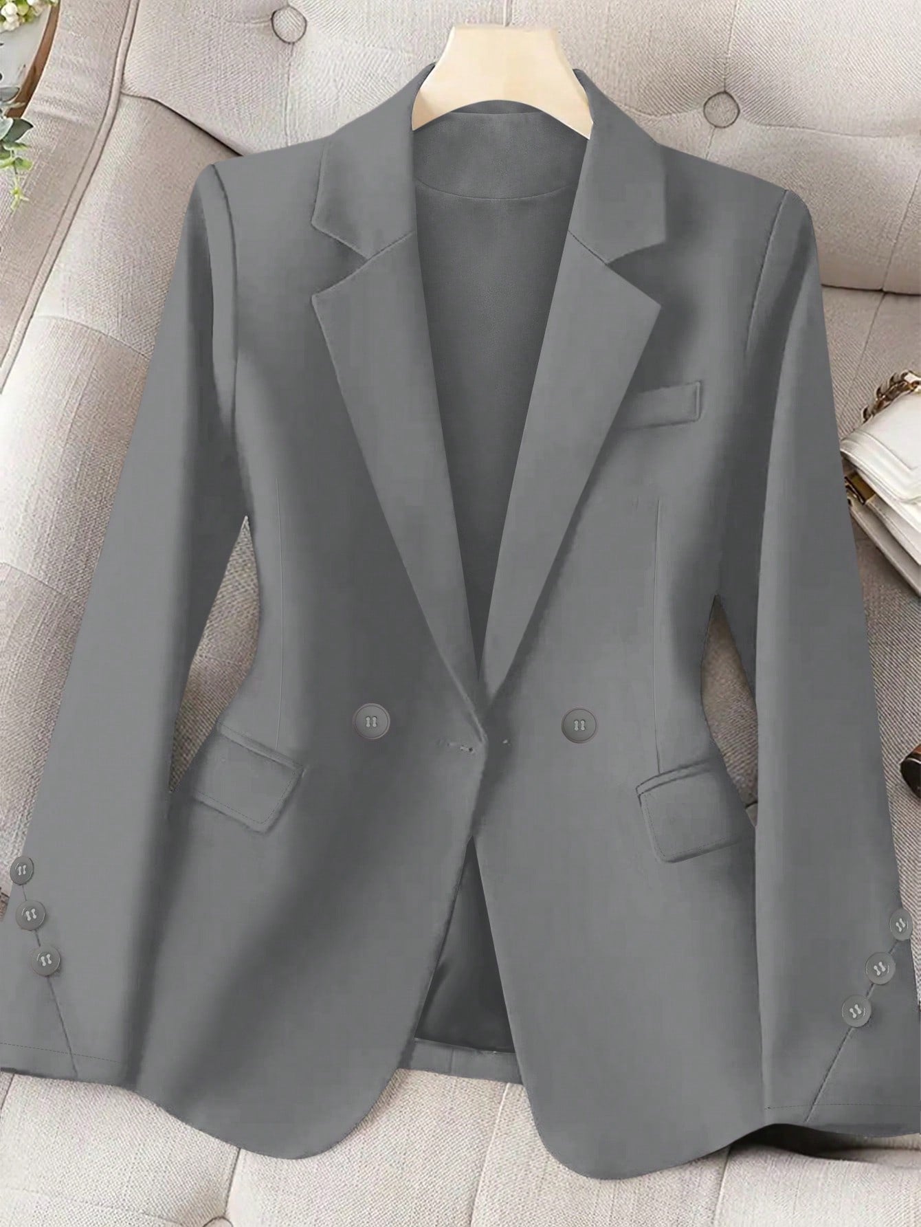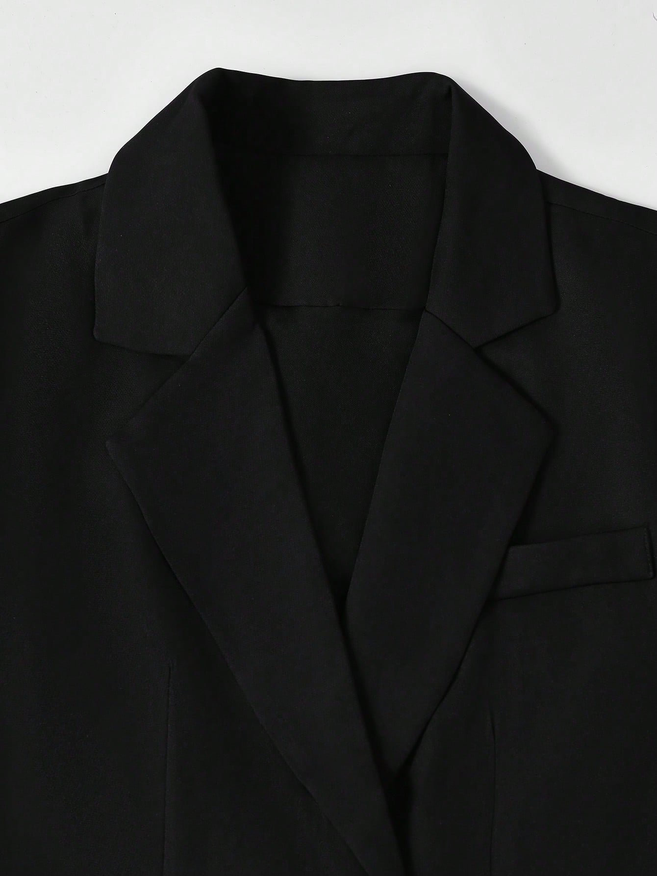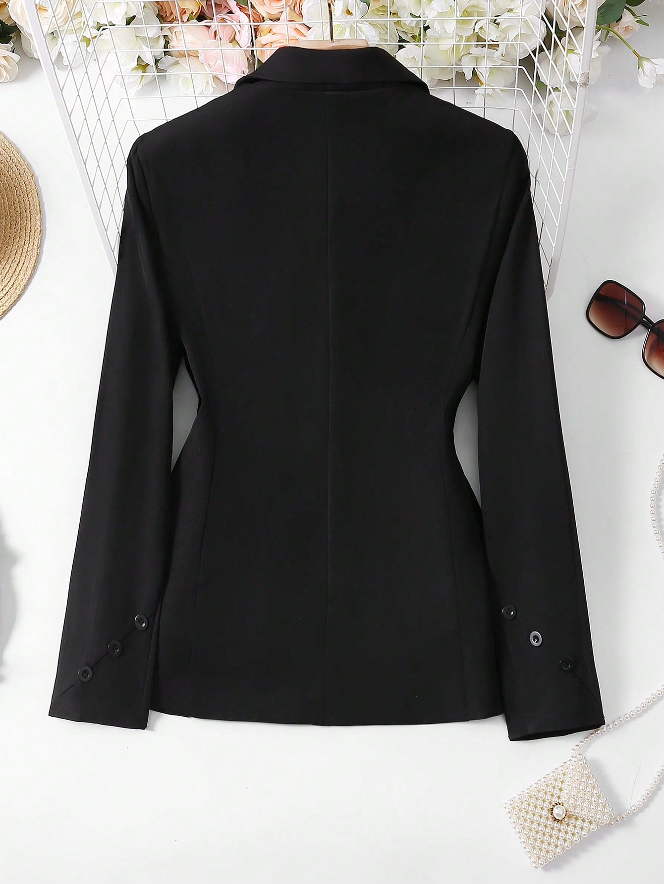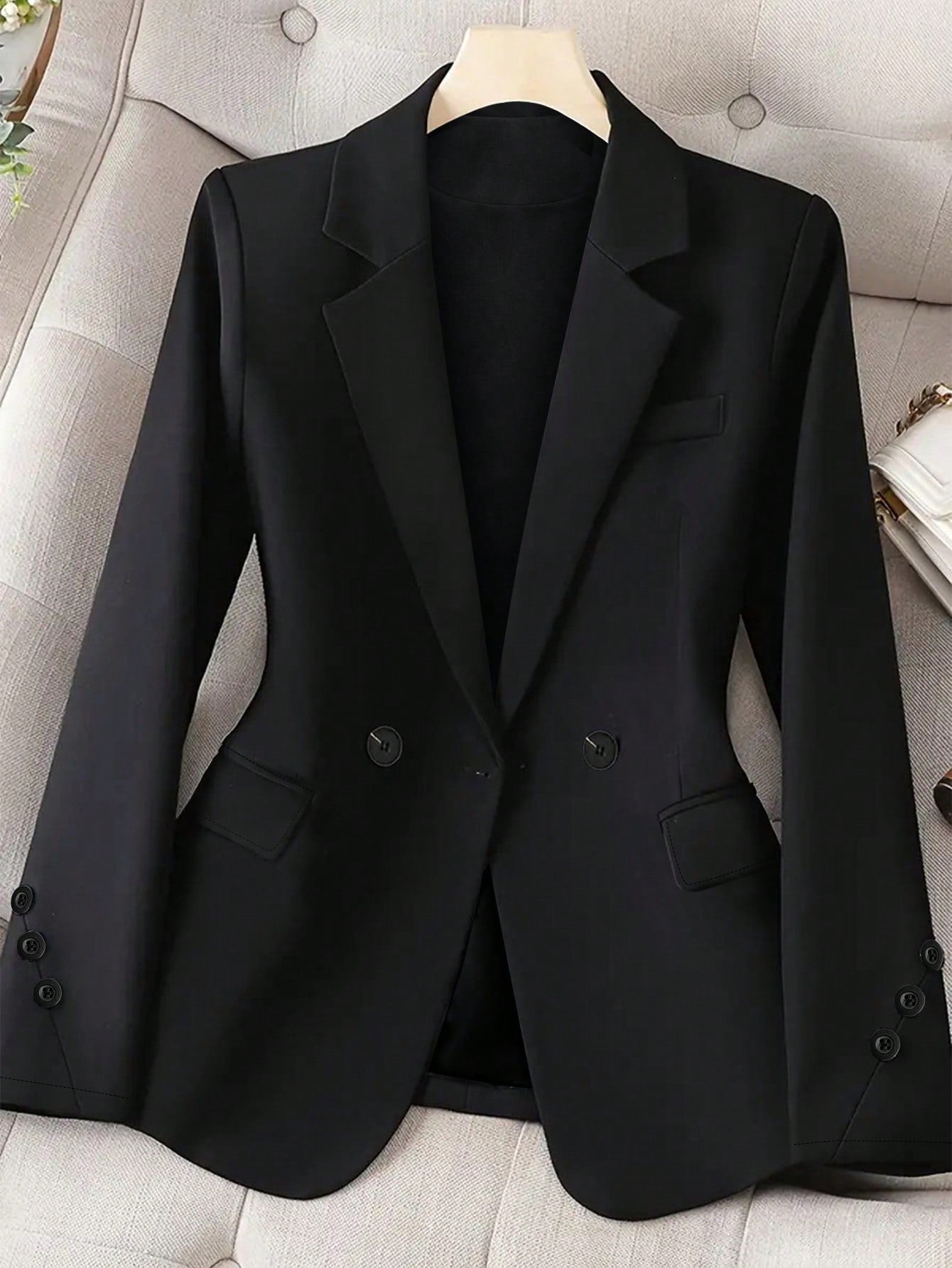 Raffinéa Solid Color Lapel Collar Belted Double-Breasted Blazer Jacket
