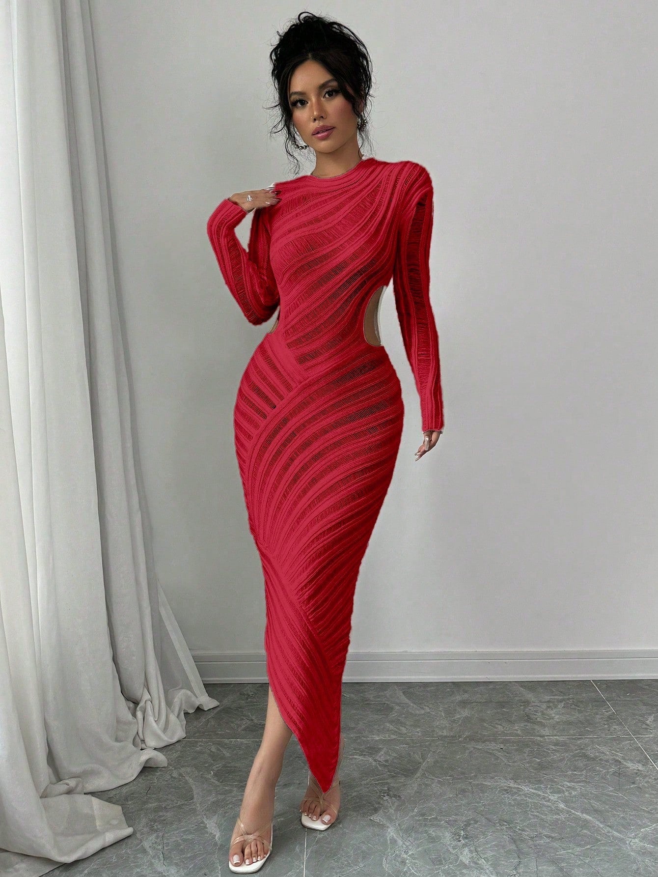 Raffinéa Women Solid Crew Neck Long Sleeve Slim Fit Yellow Sweater Dress