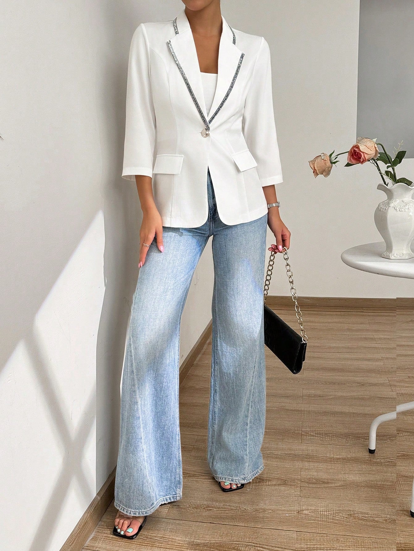 Raffinéa Women's Slim Fit Solid Color Jacket With Lapel Collar