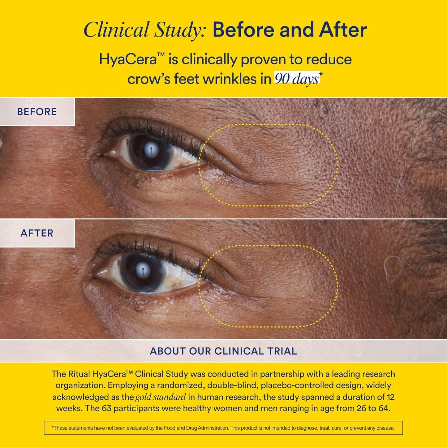 Ritual HyaCera Skin Supplement for Wrinkle Support, with Hyabest® and Ceratiq® for Skin Hydration Support, Hyaluronic Acid, Glycolipids, Ceramides, Gluten Free, Non GMO, Vanilla Essence, 30 Day Supply
