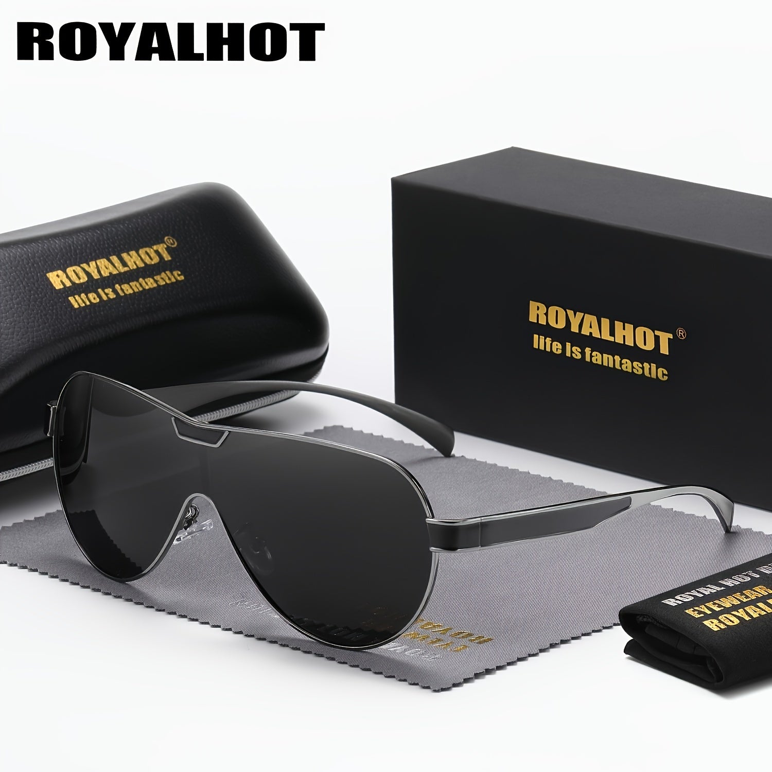 RoyalHot Polarized Rimless Fashion Glasses - Stylish Alloy Frame, Black ABS Lenses, UV Protection, Perfect for Driving, Hiking & Everyday Use, Includes Protective Case